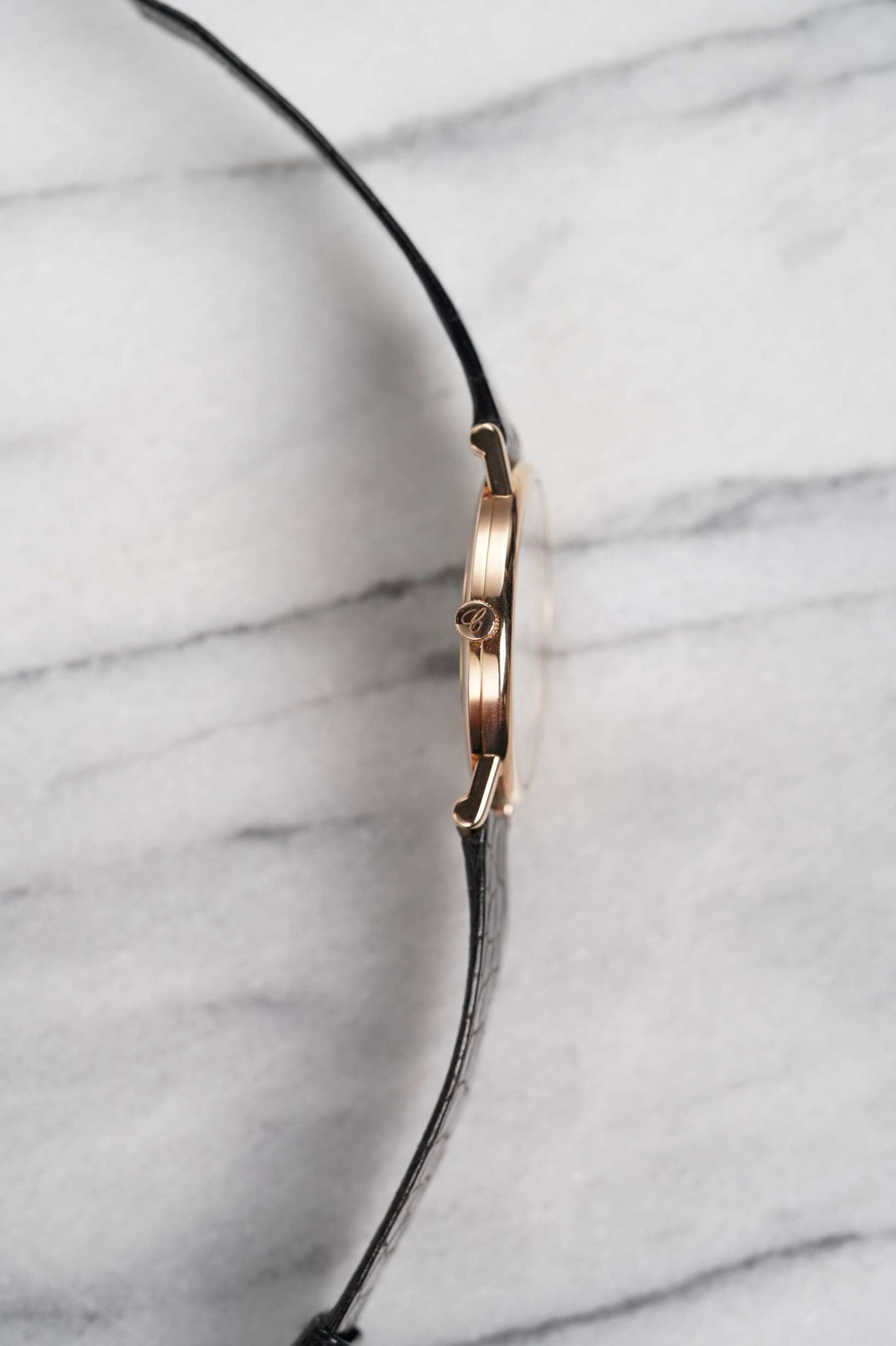 Here's a vintage Chopard Casino in 18K rose gold with a factory mother of pearl dial manual wind from the 1990s. Limited edition issued 728/1000. Keeps great time and is fully functional. Measurements include a 35mm case and 18mm lug width. It's on its original leather strap and signed gold buckle. Time only. Matching rose gold hands and arabic numerals. Gold case and caseback. All parts are original including the crown, dial, movement, and caseback. Both the dial and case are in great cosmetic, untouched condition.