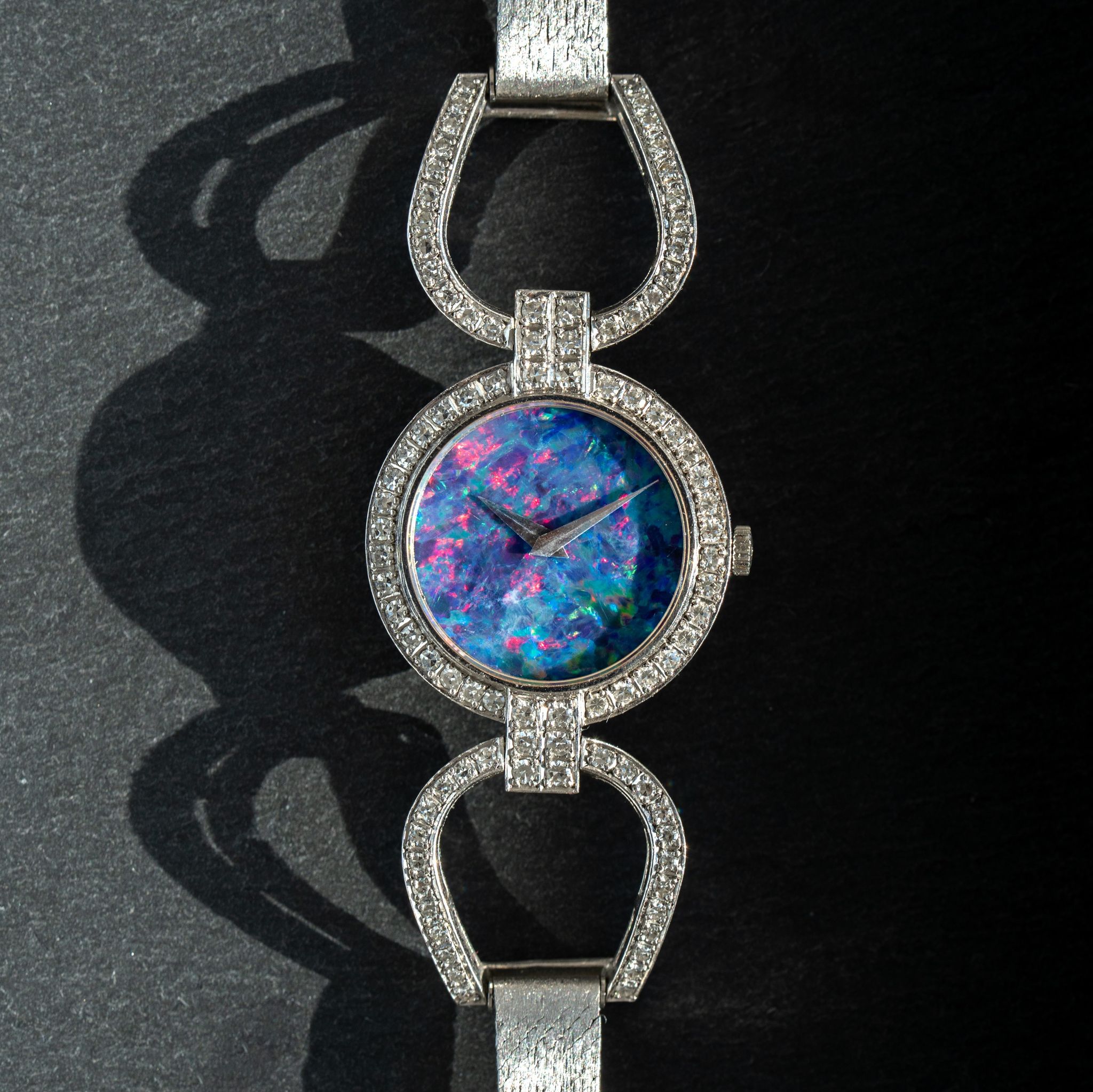 *condition: very good case with only very light signs of wear and no damage to the *spider lugs or caseback.. custom made whitegold bracelet without lots of wear as well. The opal dial has no damage or cracks