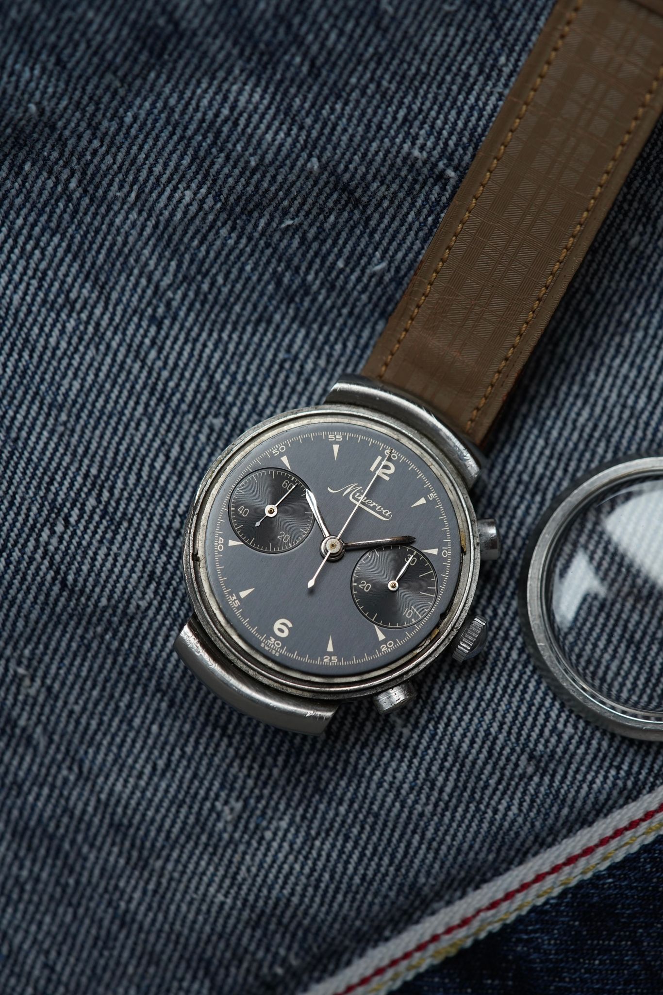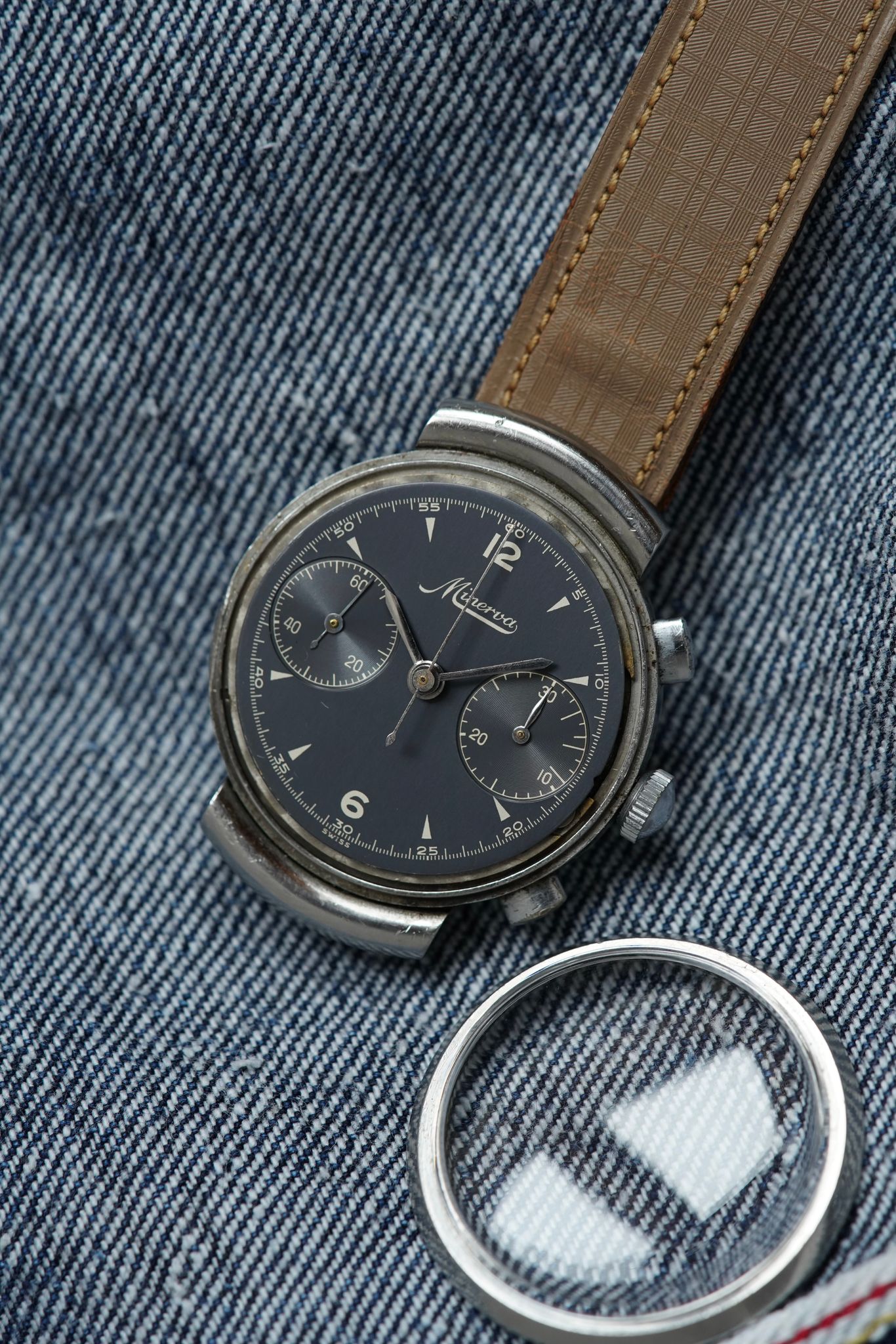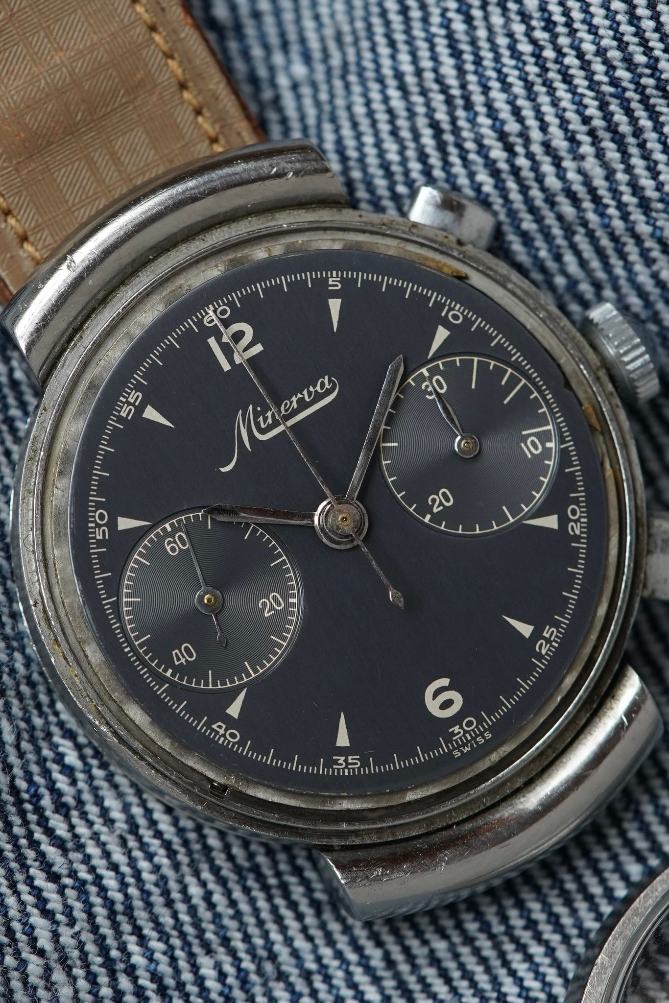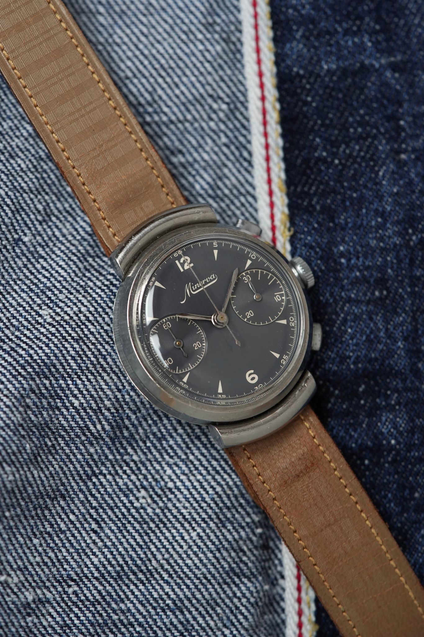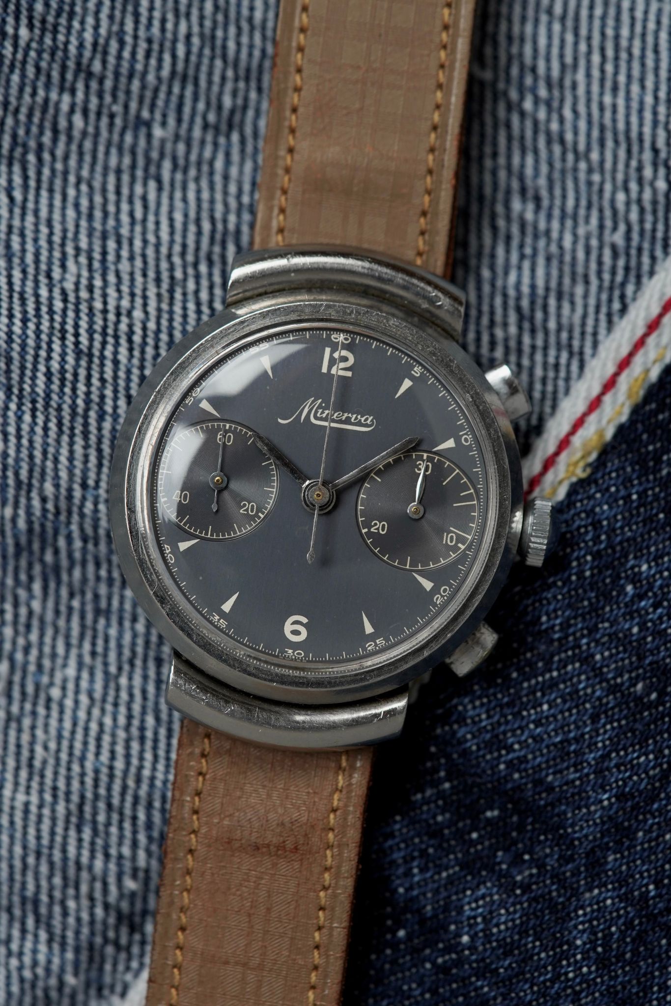 On for the design books: an incredible stainless steel Minerva with in-house column wheel chronograph caliber and the most gorgeous of grey dials.
