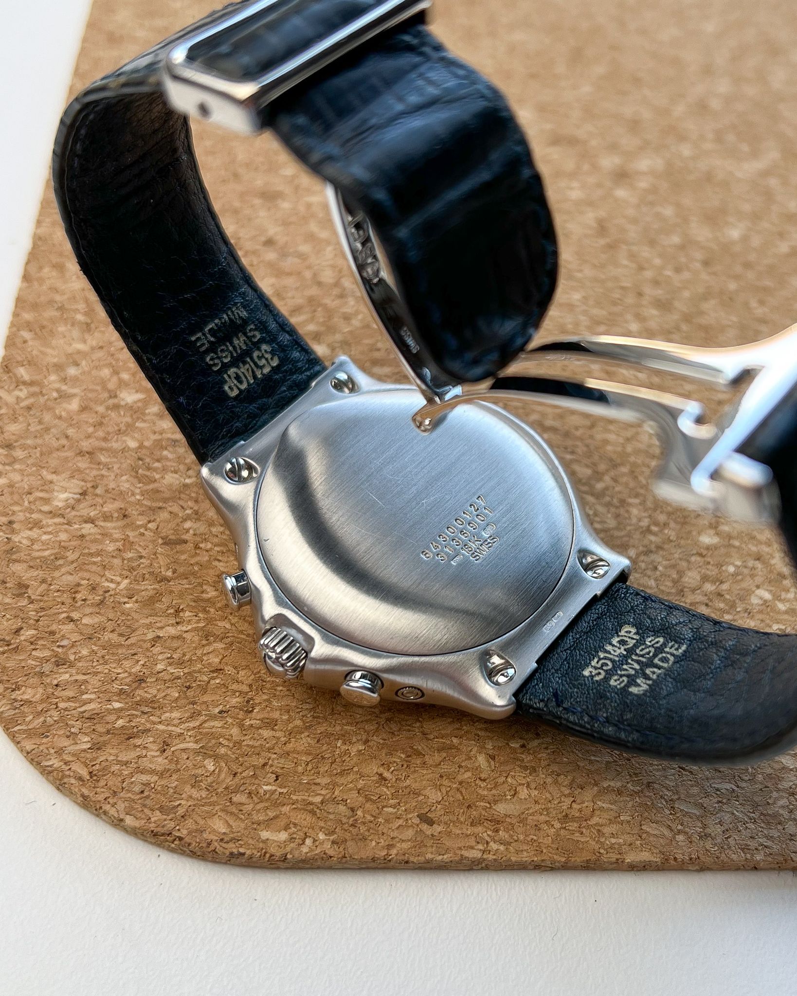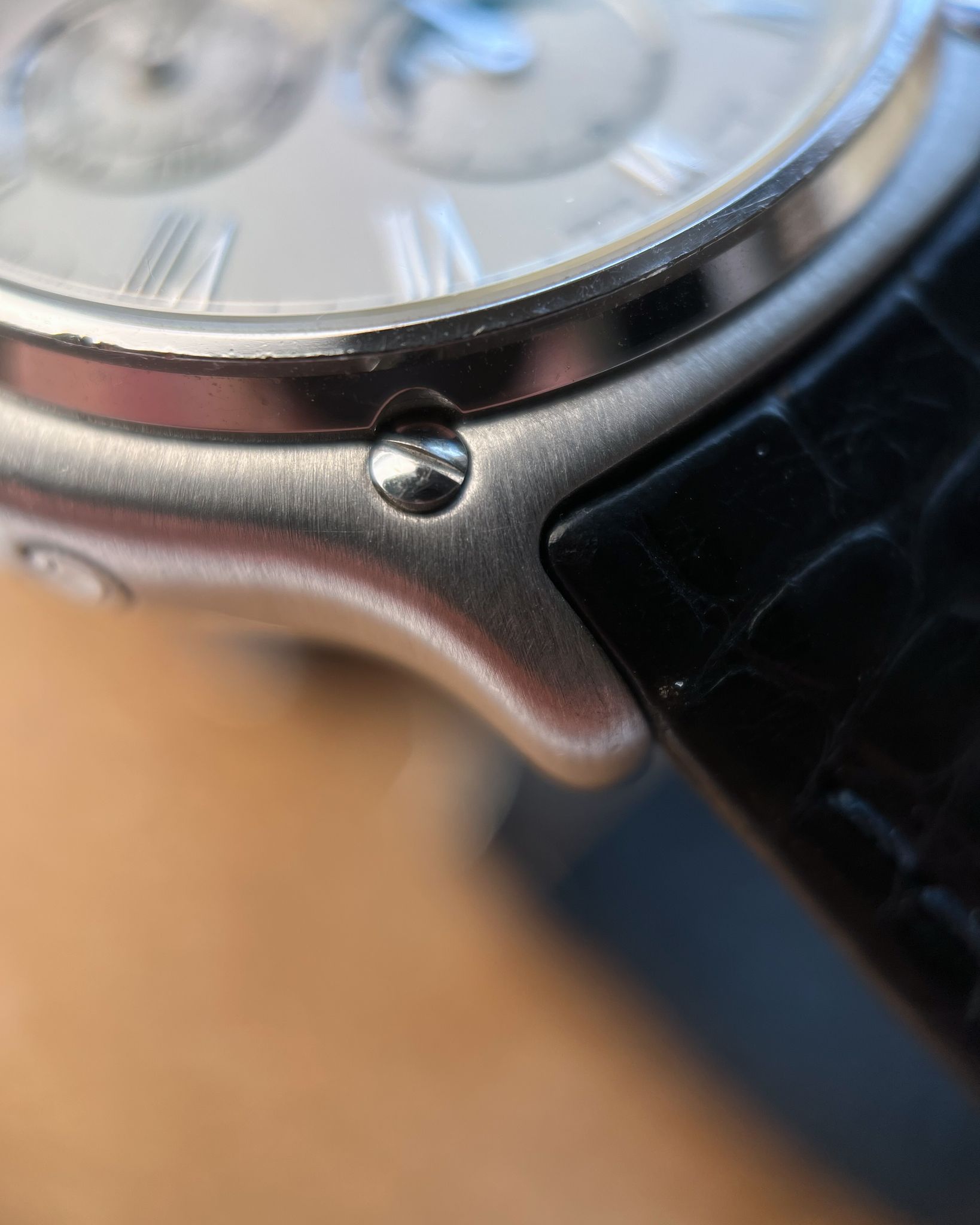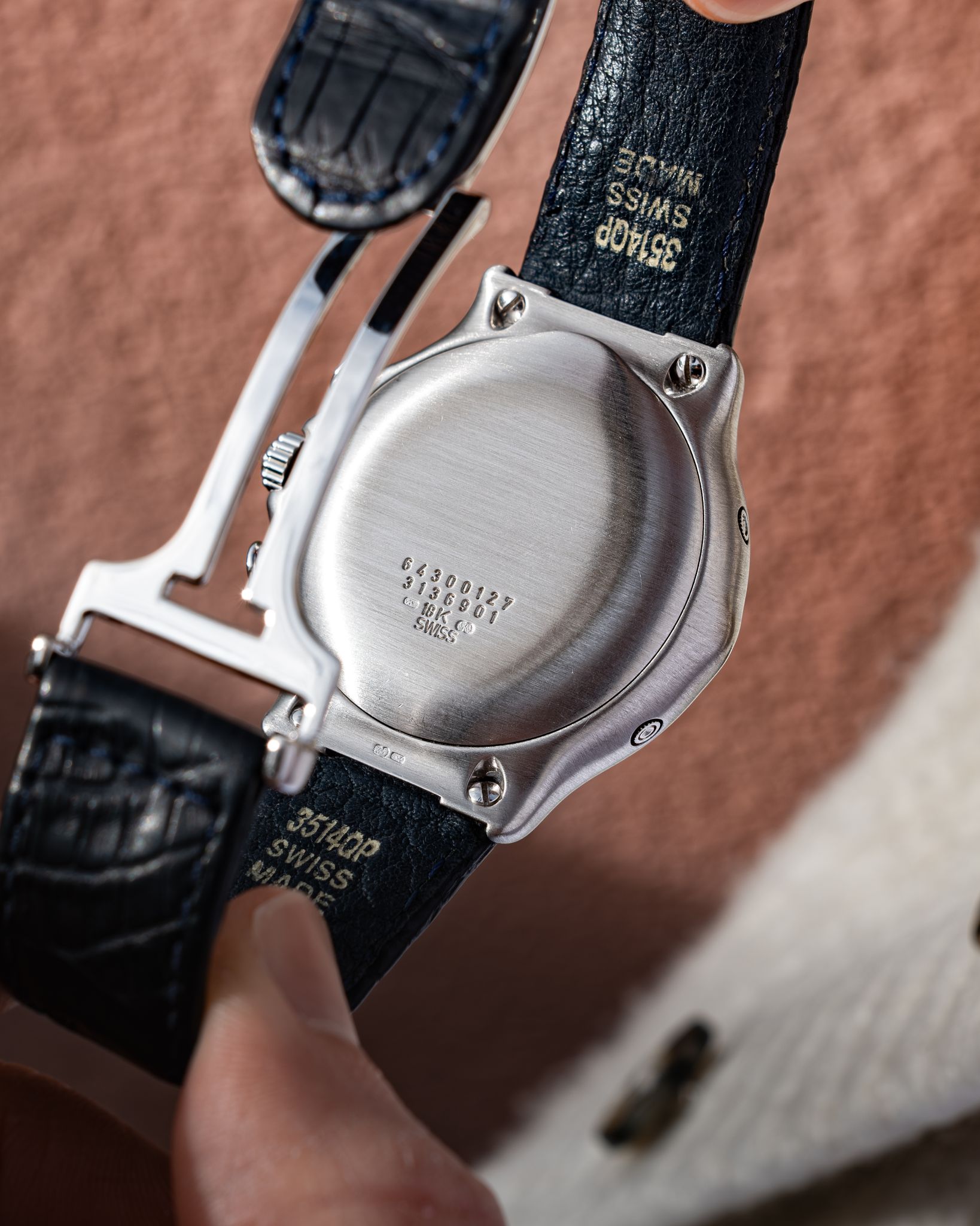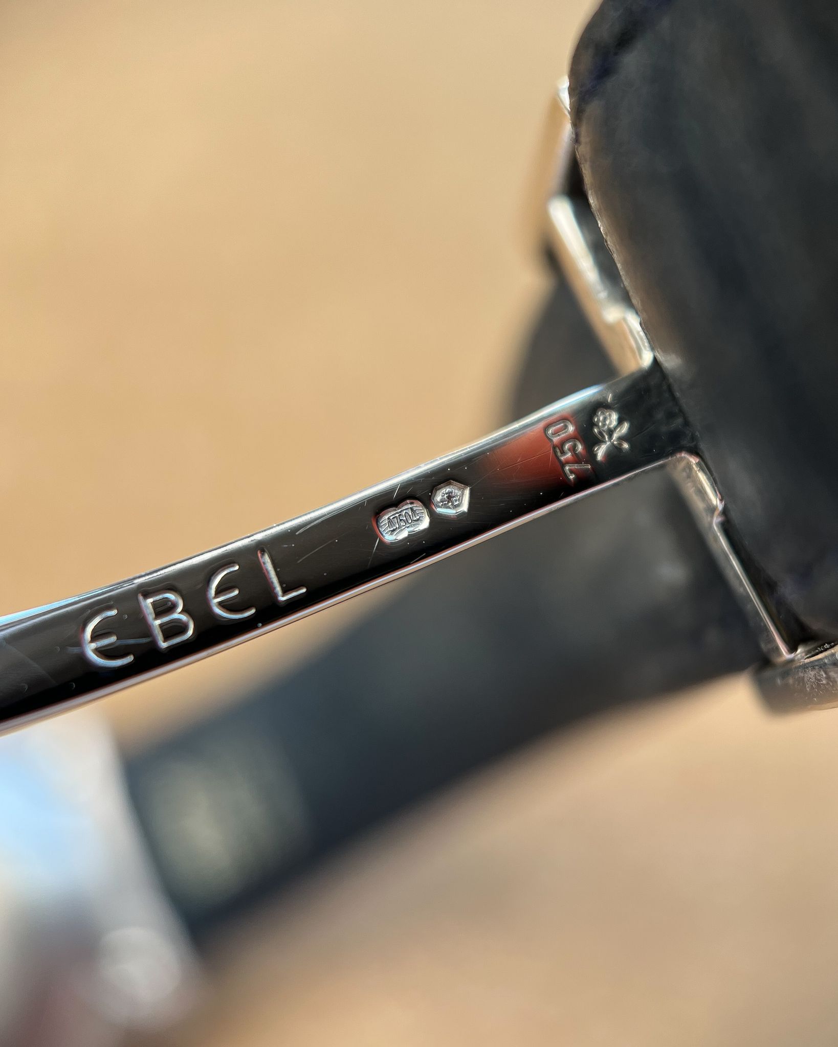 Case shows very little wear and retains the original finish, the engravings/hallmarks on the case back are crisp and deep. The original white gold deployant clasp is present, fitted to an original Ebel strap. Overall a rare example from an interesting period of Ebel, a mega movement and value offering compared to similar complications/metals from other brands.