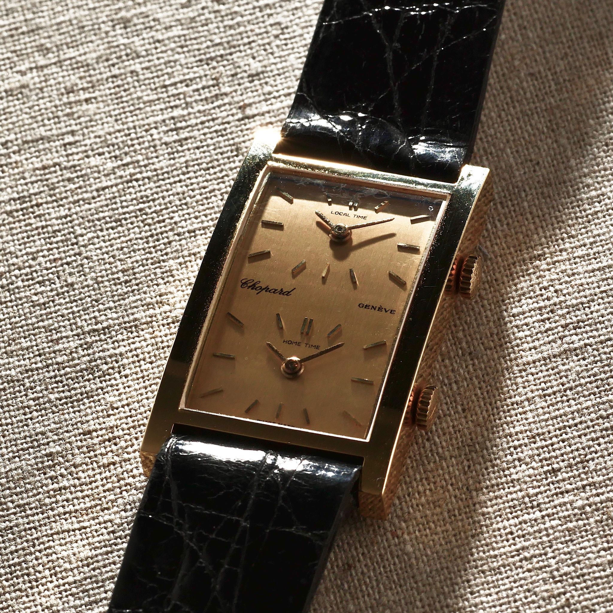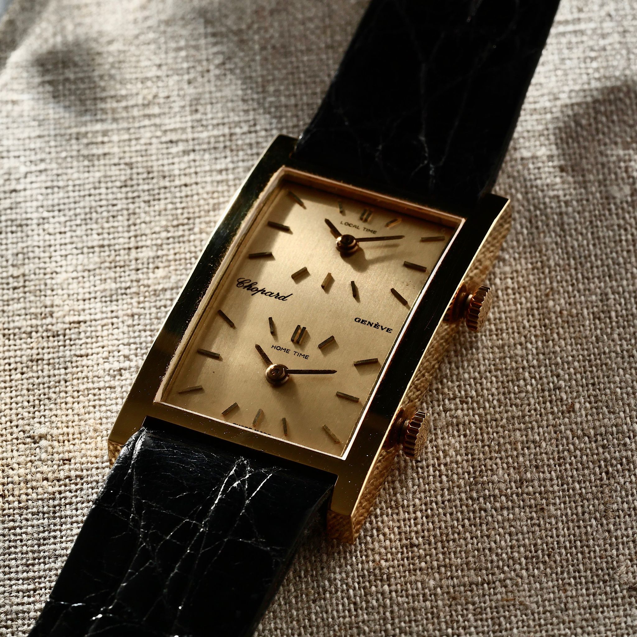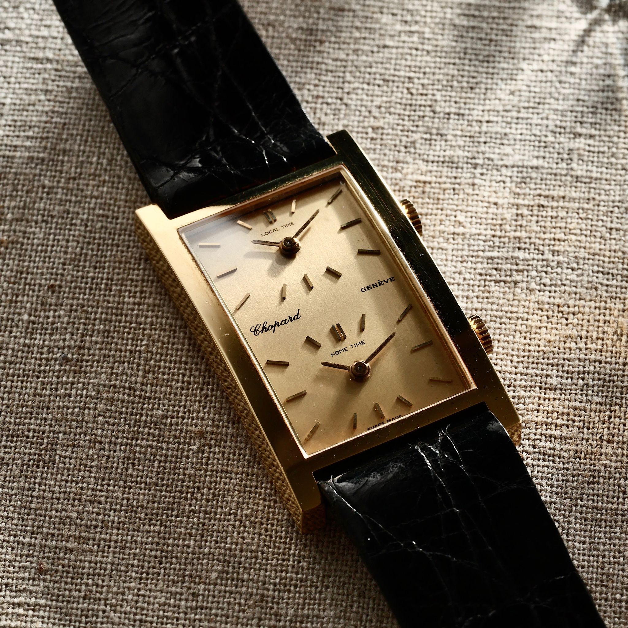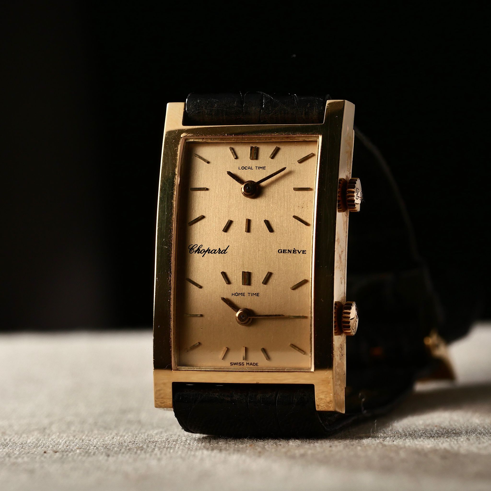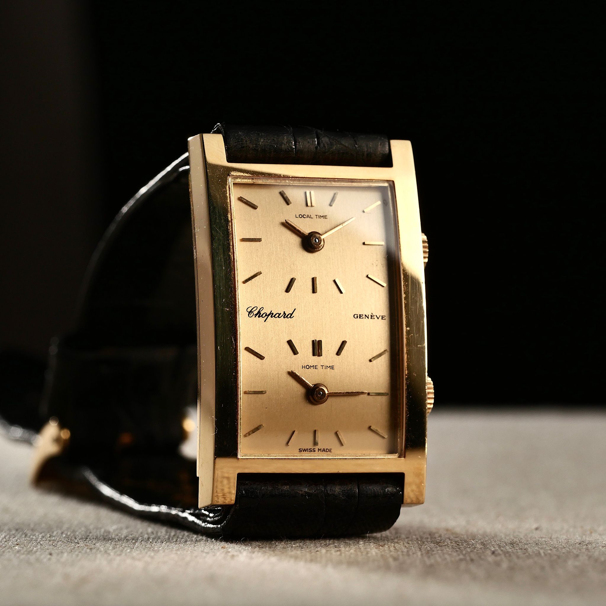 In the dark corners of horological history lie hidden masterpieces of exceptional quality and this Chopard Cintrée Dual Time from the 1980s is one of the best examples. While its slightly smaller sibling, the Ref 2030, was even retailed in Cartier's hallowed display cases, the larger 23mm x 37mm Ref 2034 remained much more elusive, manufactured in such limited numbers that finding one feels like unearthing a buried treasure.