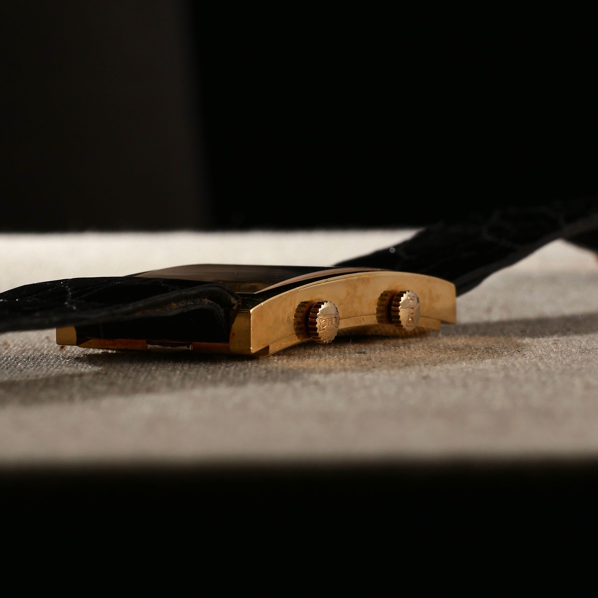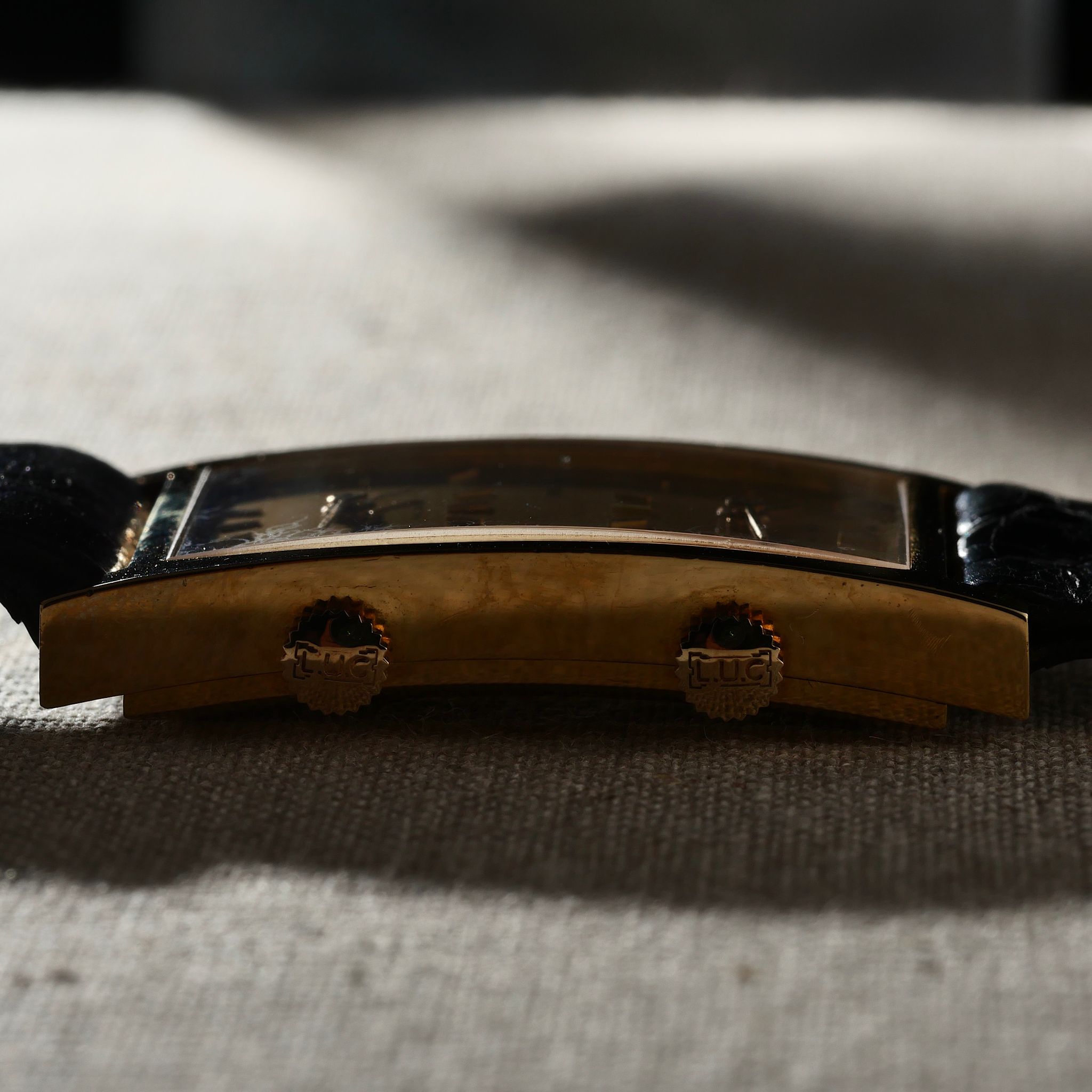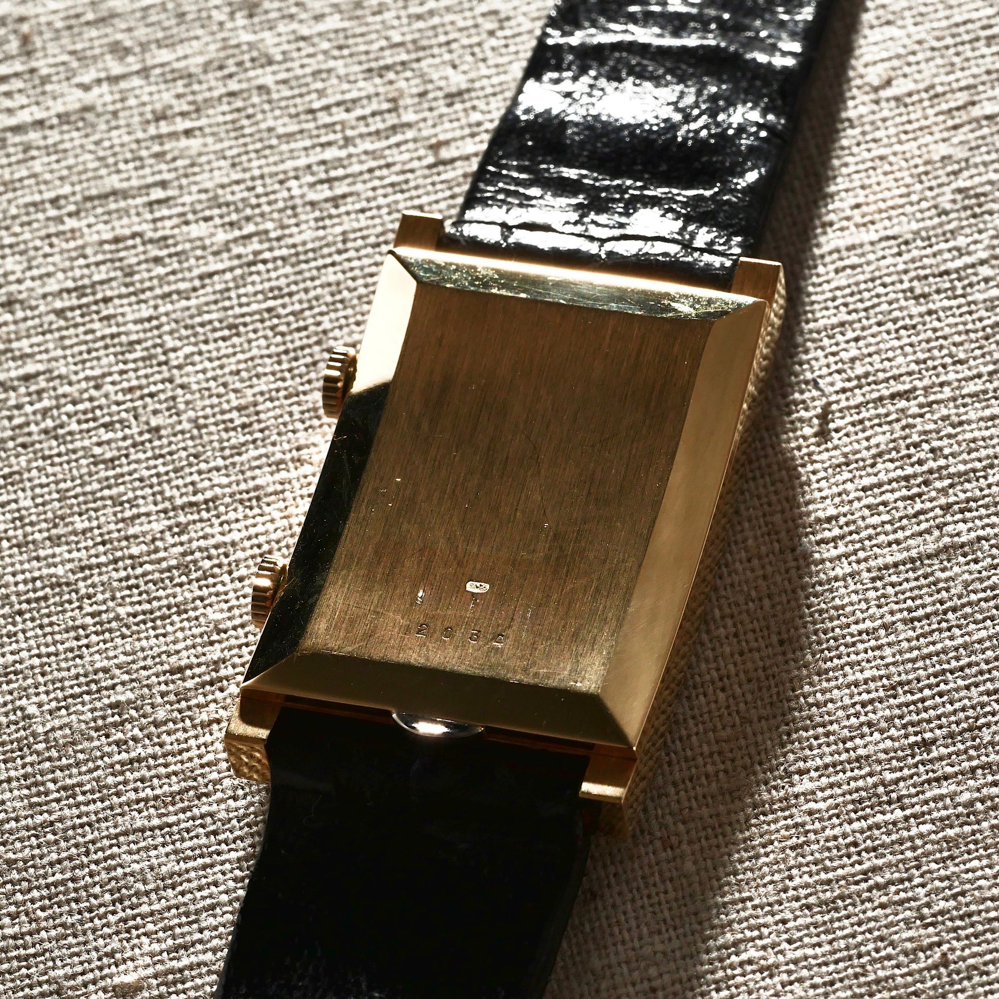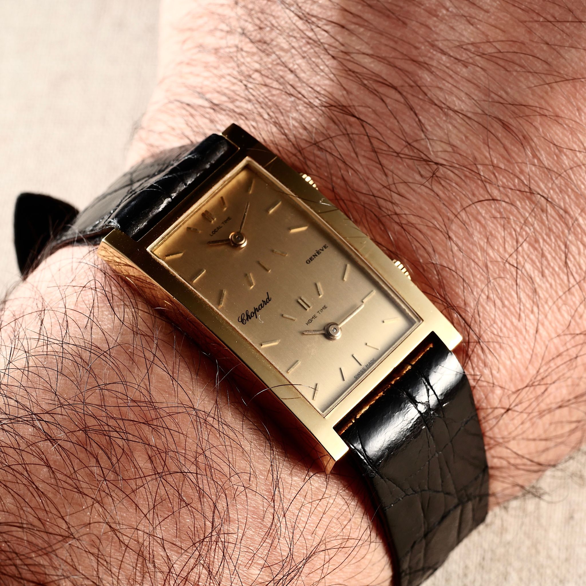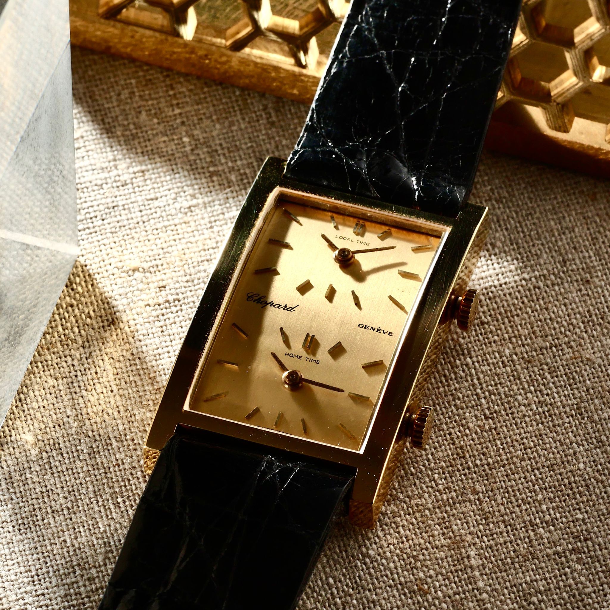 In the dark corners of horological history lie hidden masterpieces of exceptional quality and this Chopard Cintrée Dual Time from the 1980s is one of the best examples. While its slightly smaller sibling, the Ref 2030, was even retailed in Cartier's hallowed display cases, the larger 23mm x 37mm Ref 2034 remained much more elusive, manufactured in such limited numbers that finding one feels like unearthing a buried treasure.