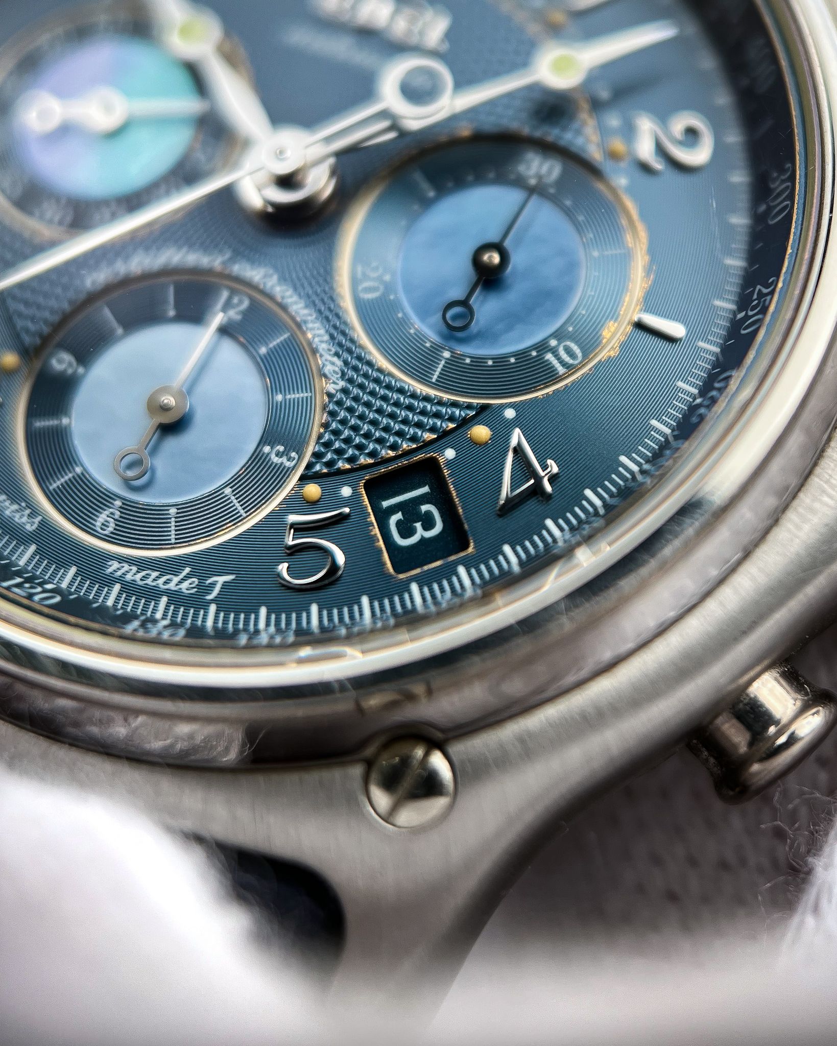 What I love — Excellent condition platinum case, all engravings crisp, case no. 00 of limited run 99 pieces (unknown if this watch, no. 00, was meant for public sale, gift or high value client etc). Intricate dial details including guilloche patterns and pearl sub dials, dial is aging gracefully with even patina developing not dissimilar to AP Oak Dials. This is THE pick of the Le Modulor line, no. 00 cherry on the top!