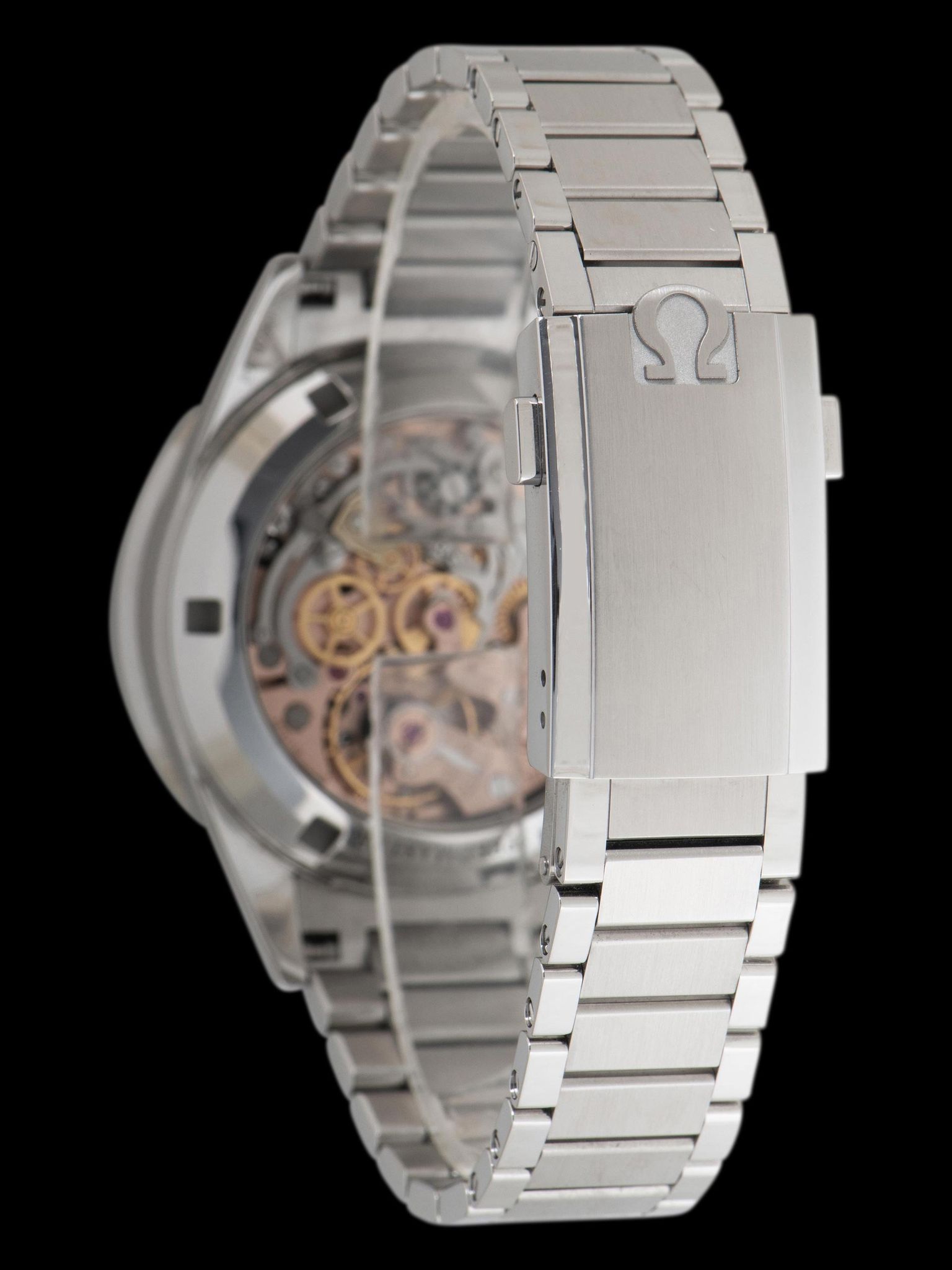 The unpolished straight-lug case exhibits almost no signs of previous use. The ceramic "dot over 90" bezel is in perfect condition with no damage or wear present. The sapphire crystal case back displays the beautiful ca. 321 chronograph movement and remains in perfect condition. The Omega flat-link style bracelet shows minimal signs of previous use with no stretch and will fit up to a 7 1/2-inch wrist. The watch comes with 3 more separate links in its set to make for a fully linked bracelet.