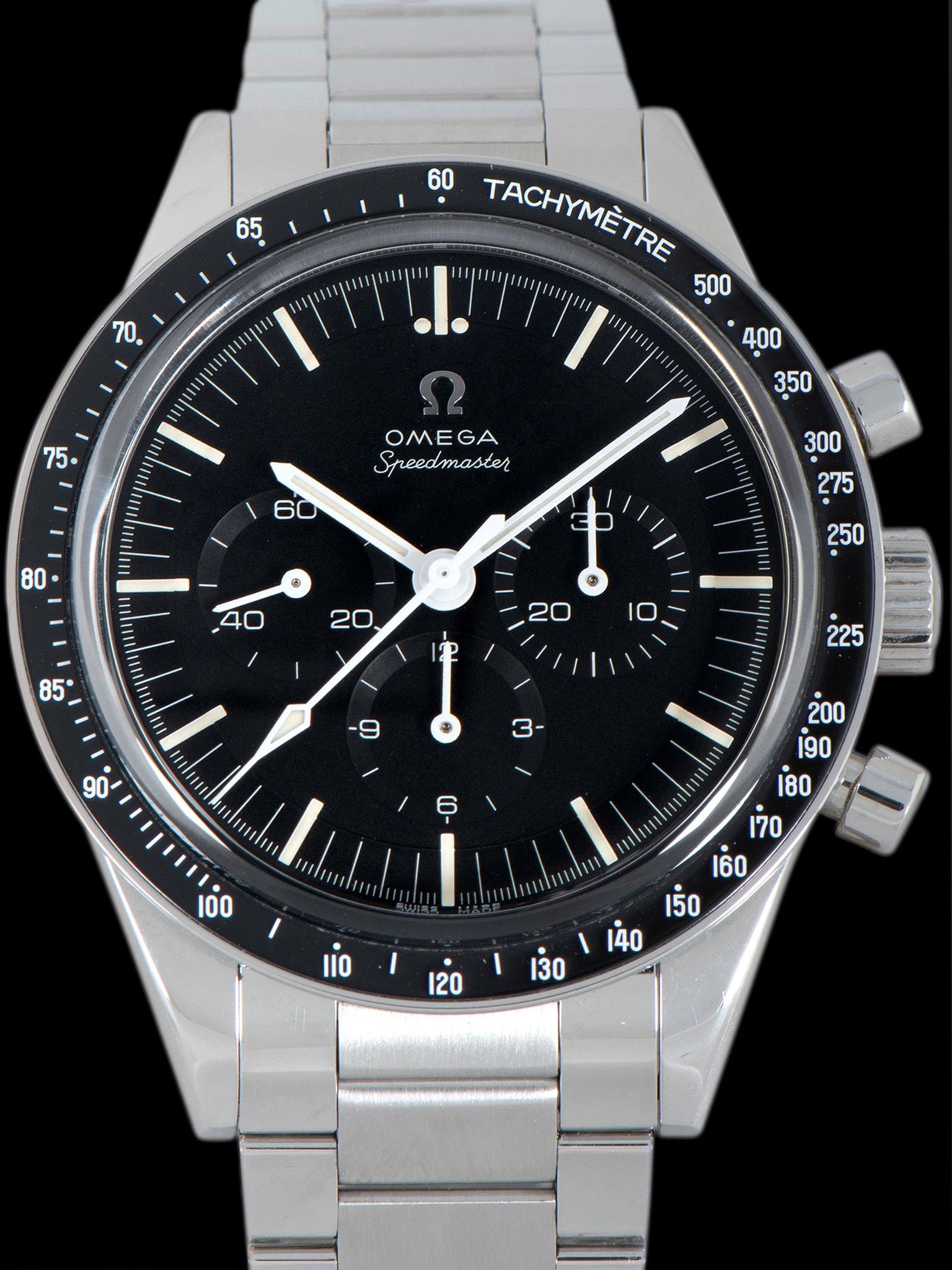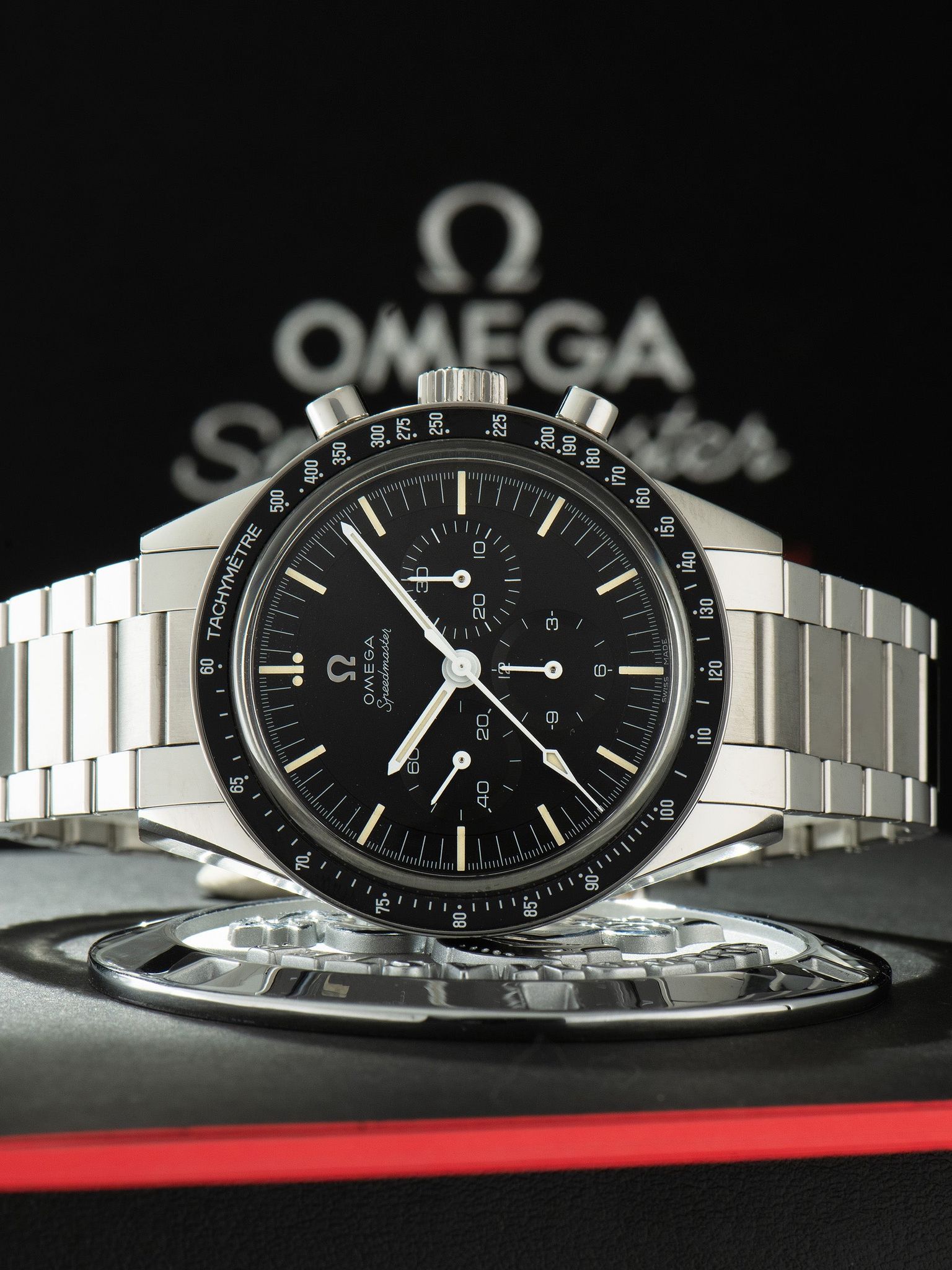 Very surprisingly, in 2020, Omega brought back the caliber 321 movement for the 50th anniversary of the Apollo 11 mission, encased in an updated, yet, faithful recreation of the "Pre-Professional" case with straight lugs and flat-link style bracelet. Though this highly praised re-issue is technically not a limited release, only a very small amount of cal. 321 movements are being manufactured each year by Omega, making allocations for this re-issue less common than the standard Speedmaster.