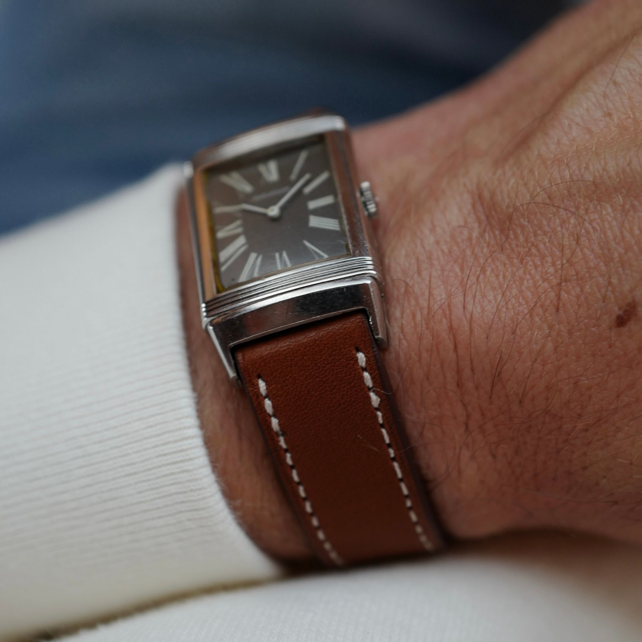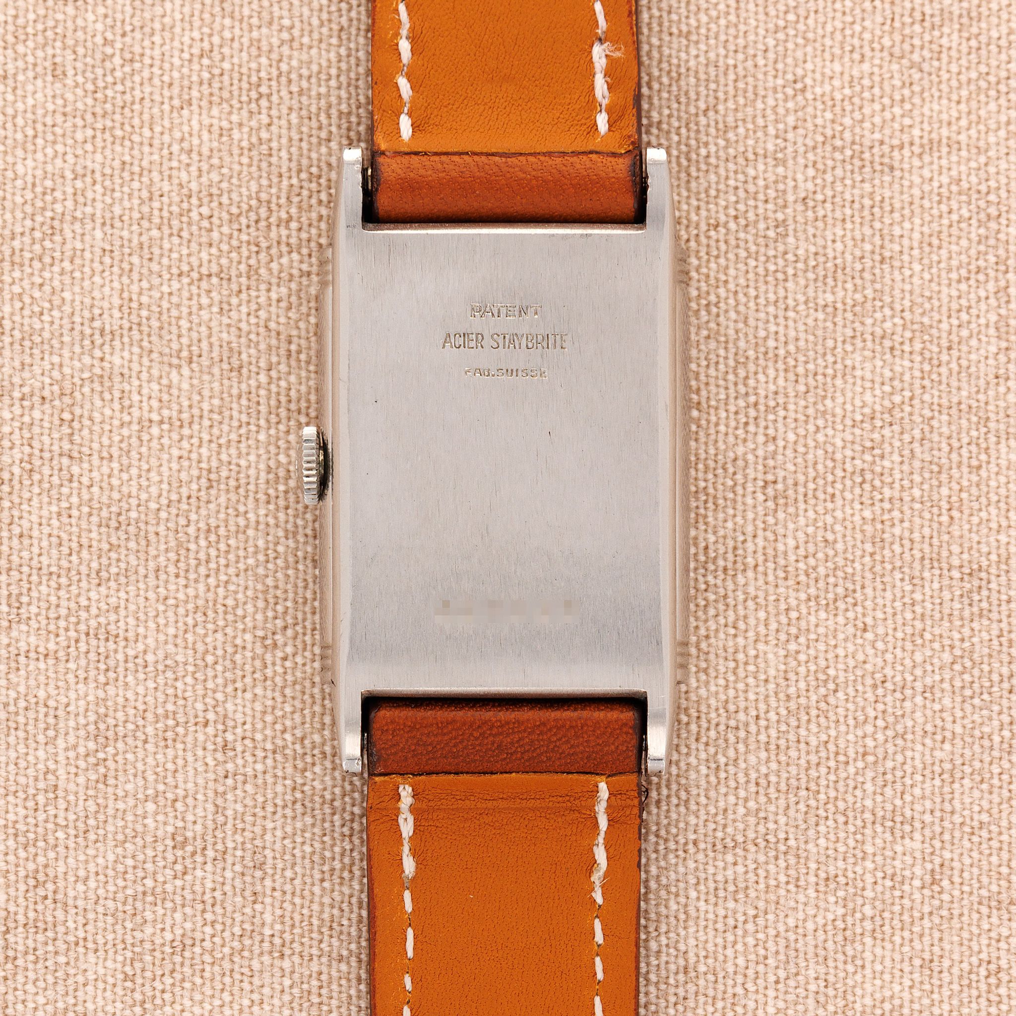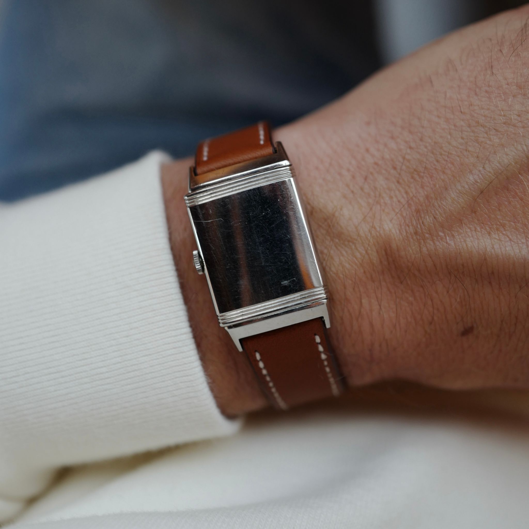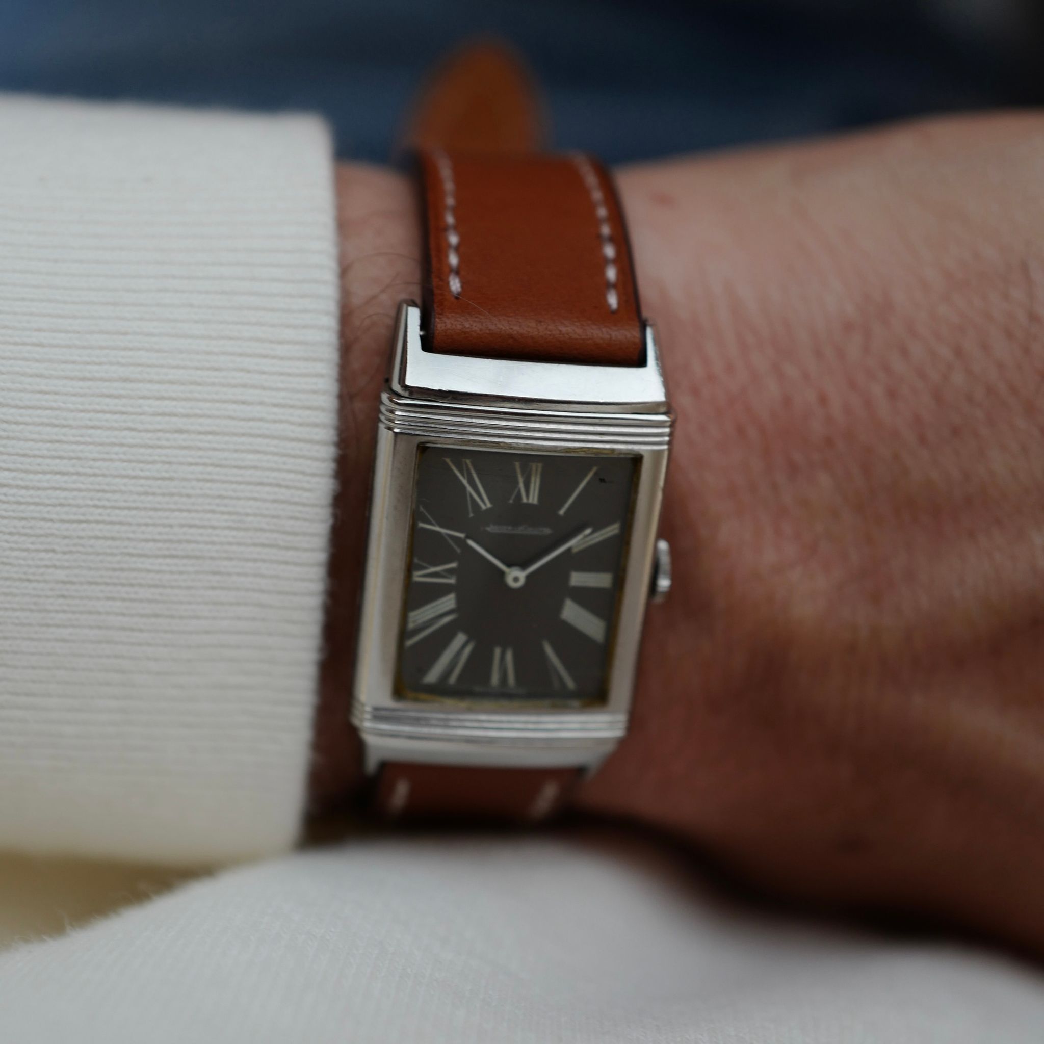 This is the rare and now famous Jaeger LeCoultre Corvo Reverso. The Reverso was introduced in 1931 as a design to protect the watch from the rigours of polo matches. In the 1940s, JLC stopped making the Reverso and the model was all but lost in horological history. Until the 1970s, when Italian retailer Giorgo Corvo discovered a stash of 200 Reverso cases at the JLC factory. Corvo convinced Jaeger, who was still resistant to bring the model back, to let him take a few watches to his service department to try and rebirth the classic. Corvo was successful and Jaeger LeCoultre agreed to produce 200 pieces using those old Reverso cases and Corvo sold all 200 in less than 3 months.