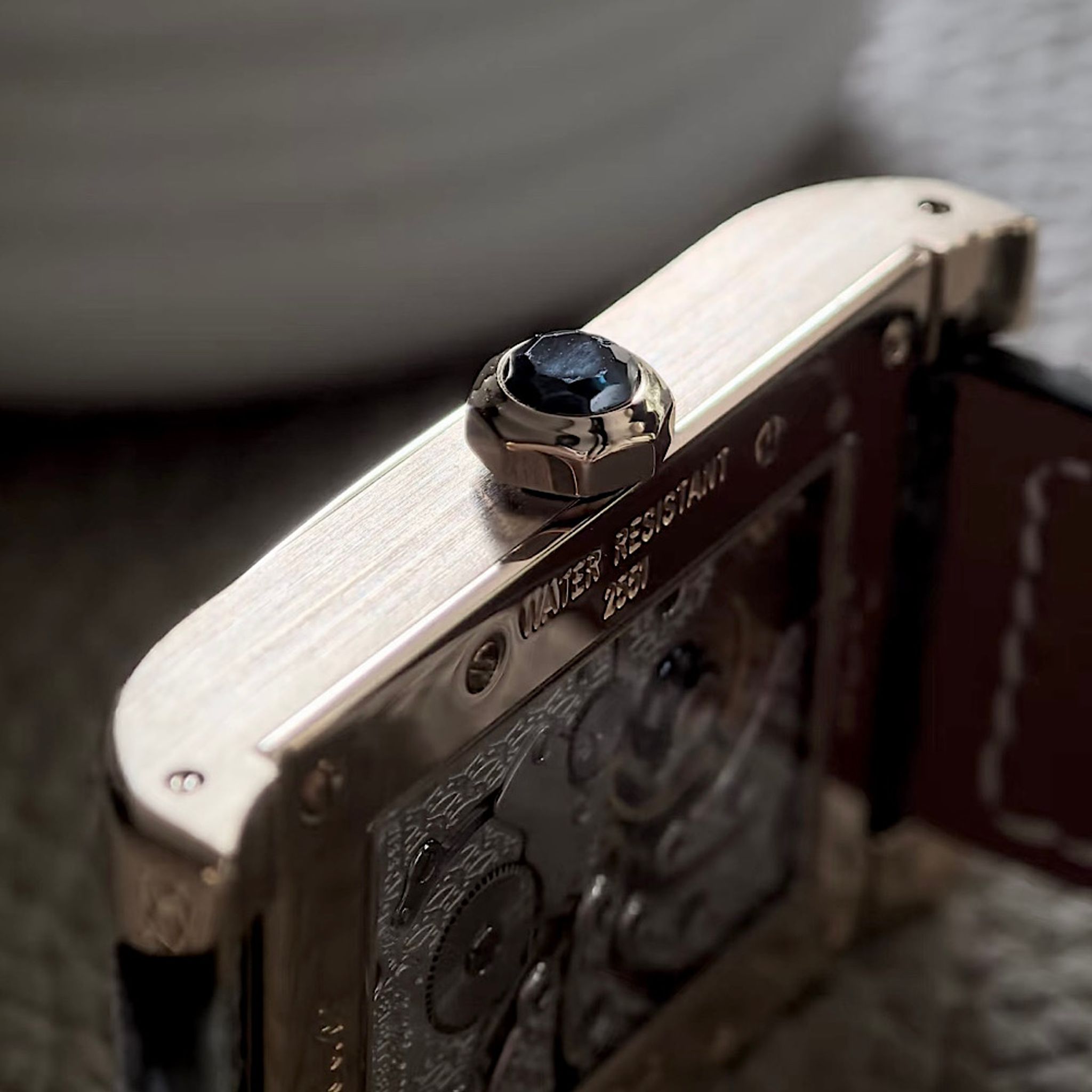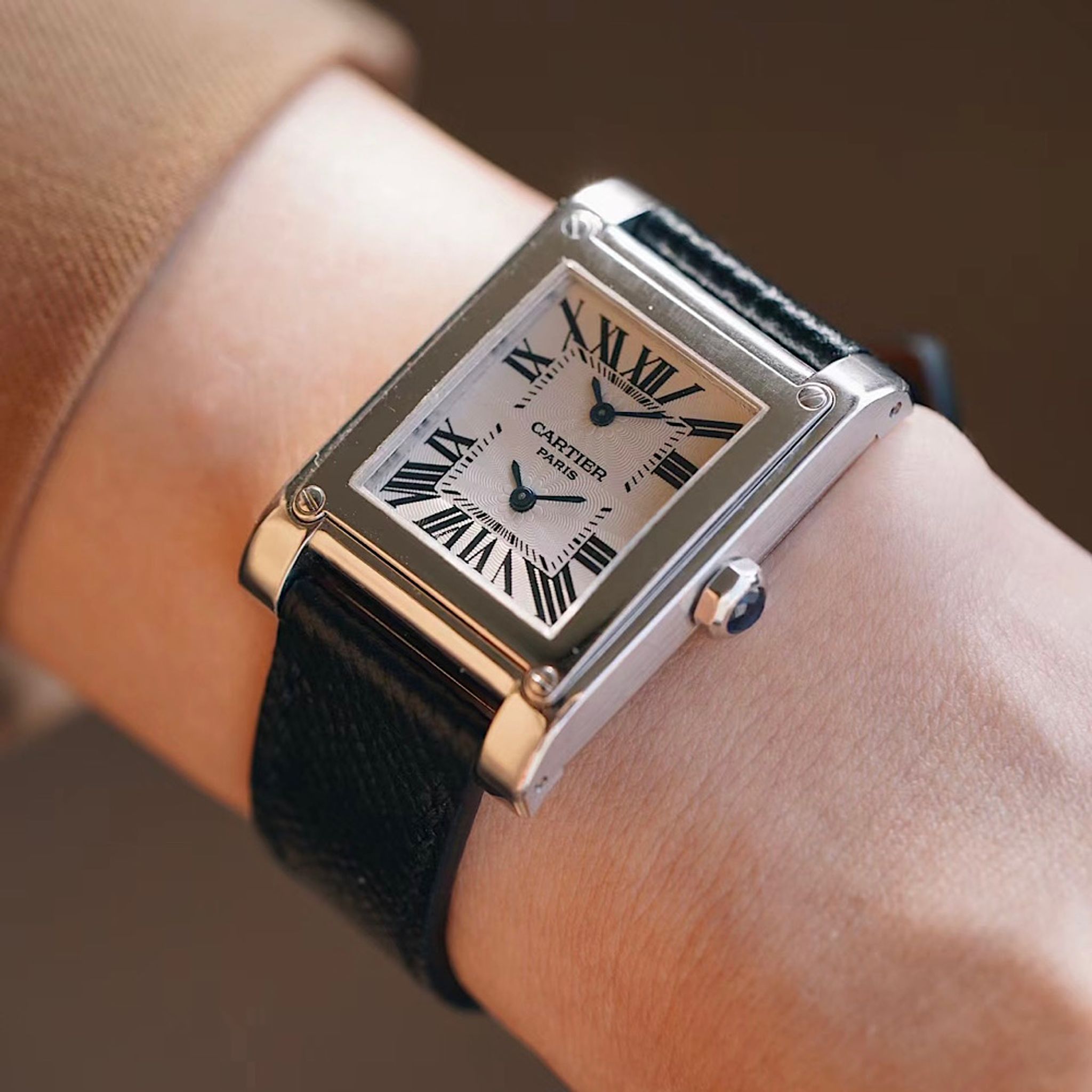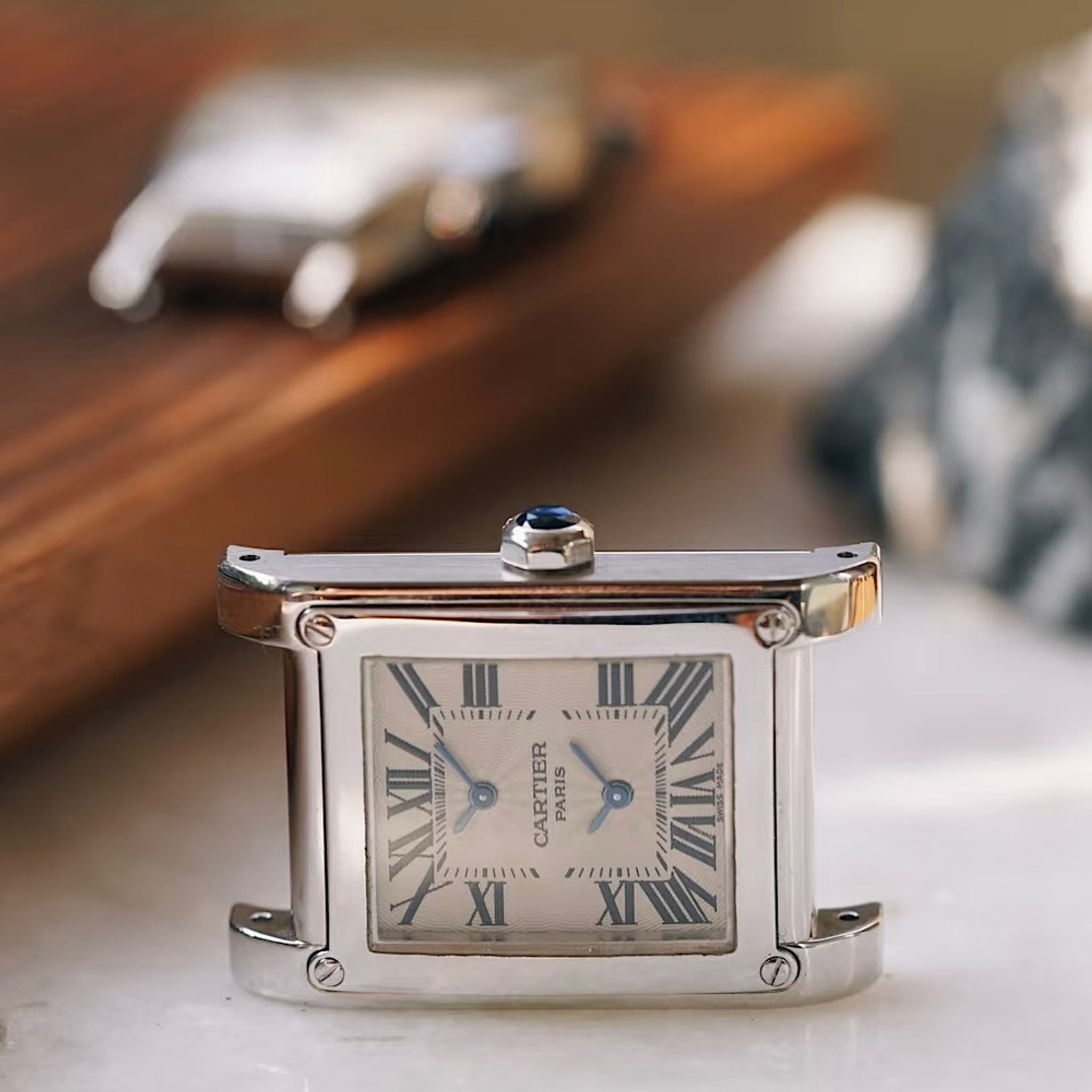 The Tank à Vis, unveiled as part of this collection, is inspired by the historic Tank Étanche of 1931 and retains the Tank lineage. The distinctive bezel, secured by visible screws at each corner, enhances water resistance and lends architectural presence to the design.