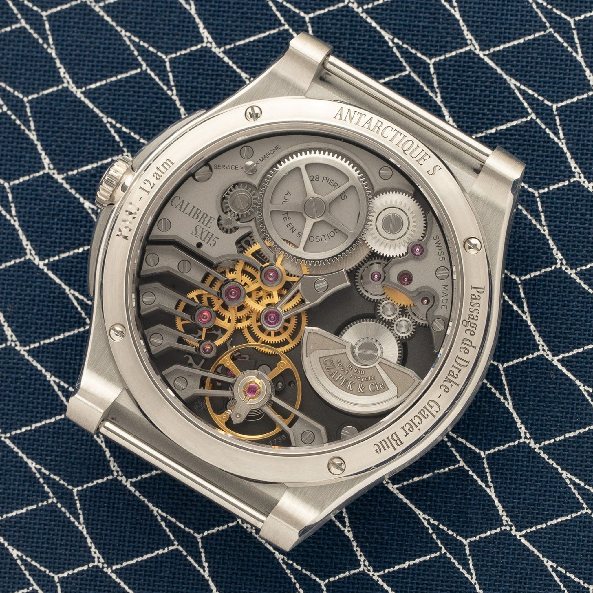 The Chapek Antactique S features a signature "Stairway to Eternity" dial - a stunning three dimensional motif that plays with light and shadow across the facade of the watch. The integrated bracelet features brushed and polished surfaces that are "C" shaped to stand for the brand's name. Both the steel bracelet and supplied rubber straps are easily and quickly interchangeable with the strap tool. Powering this piece is their SXH5.01, a magnificent display back caliber that features a platinum micro-rotor. It is the first in house movement developed by the brand and provides 60 hours of power reserve. This caliber is not only highly accurate but features brilliant design for more user visibility into its inner workings. This movement is much more advanced than the average high end sports watch. Perhaps most importantly, the Antarctique S updates the previous iterations case size from 40.5mm down to a more elegant 38.5mm, welcomed as a major improvement over the previous version.