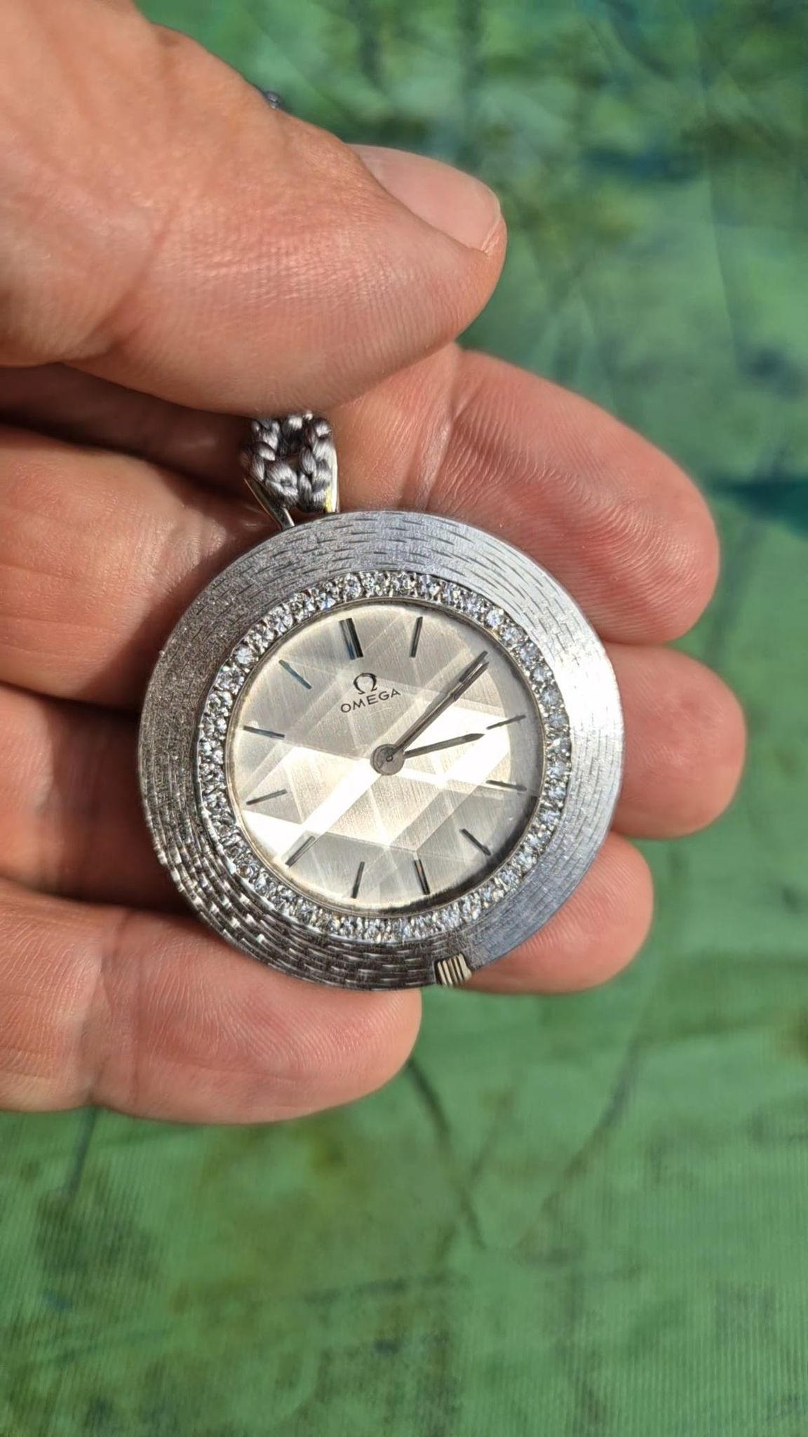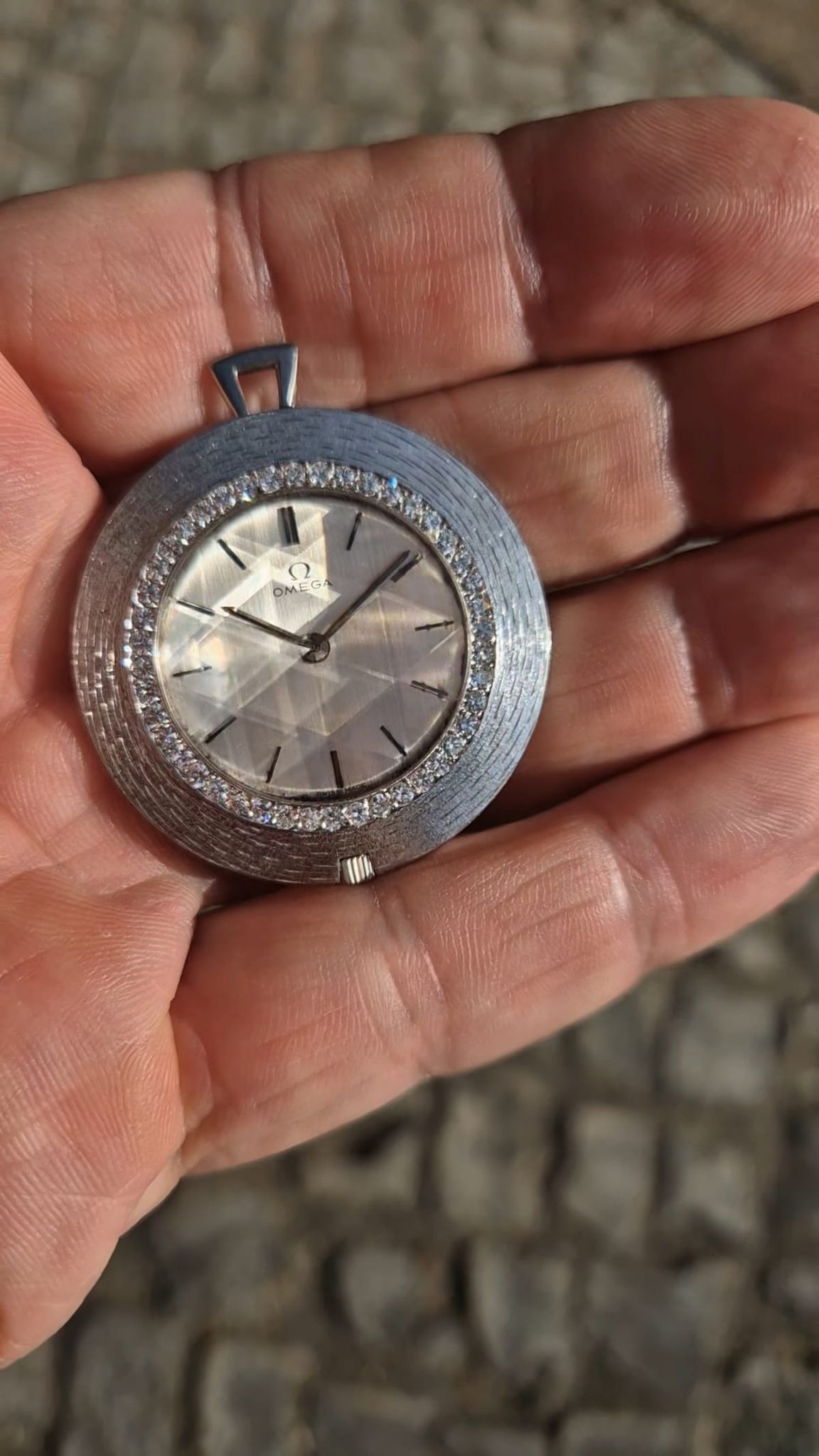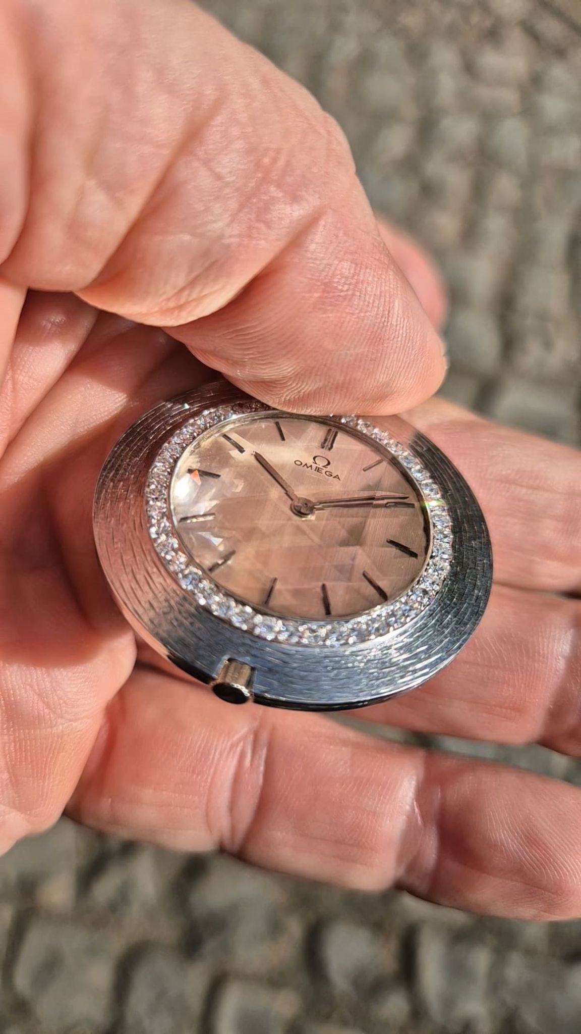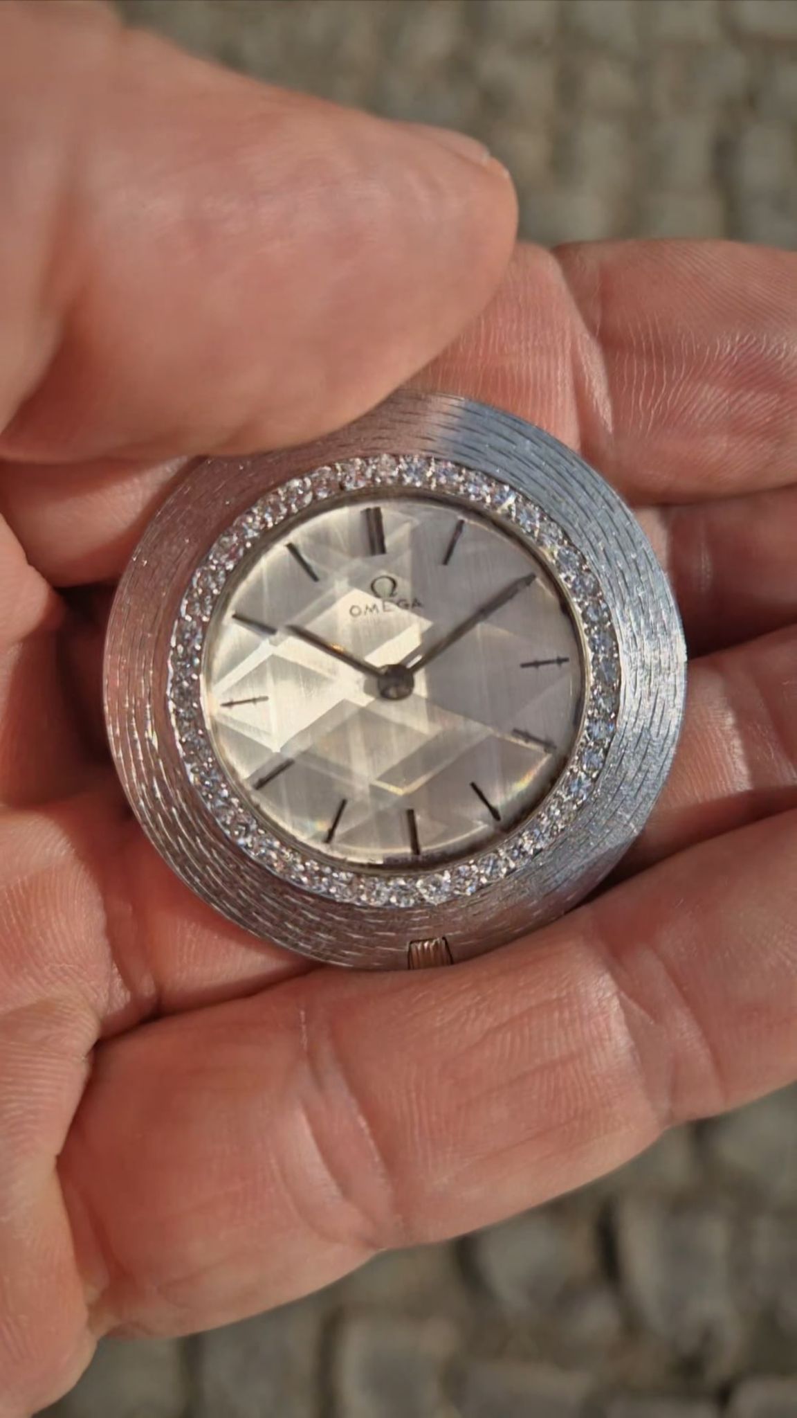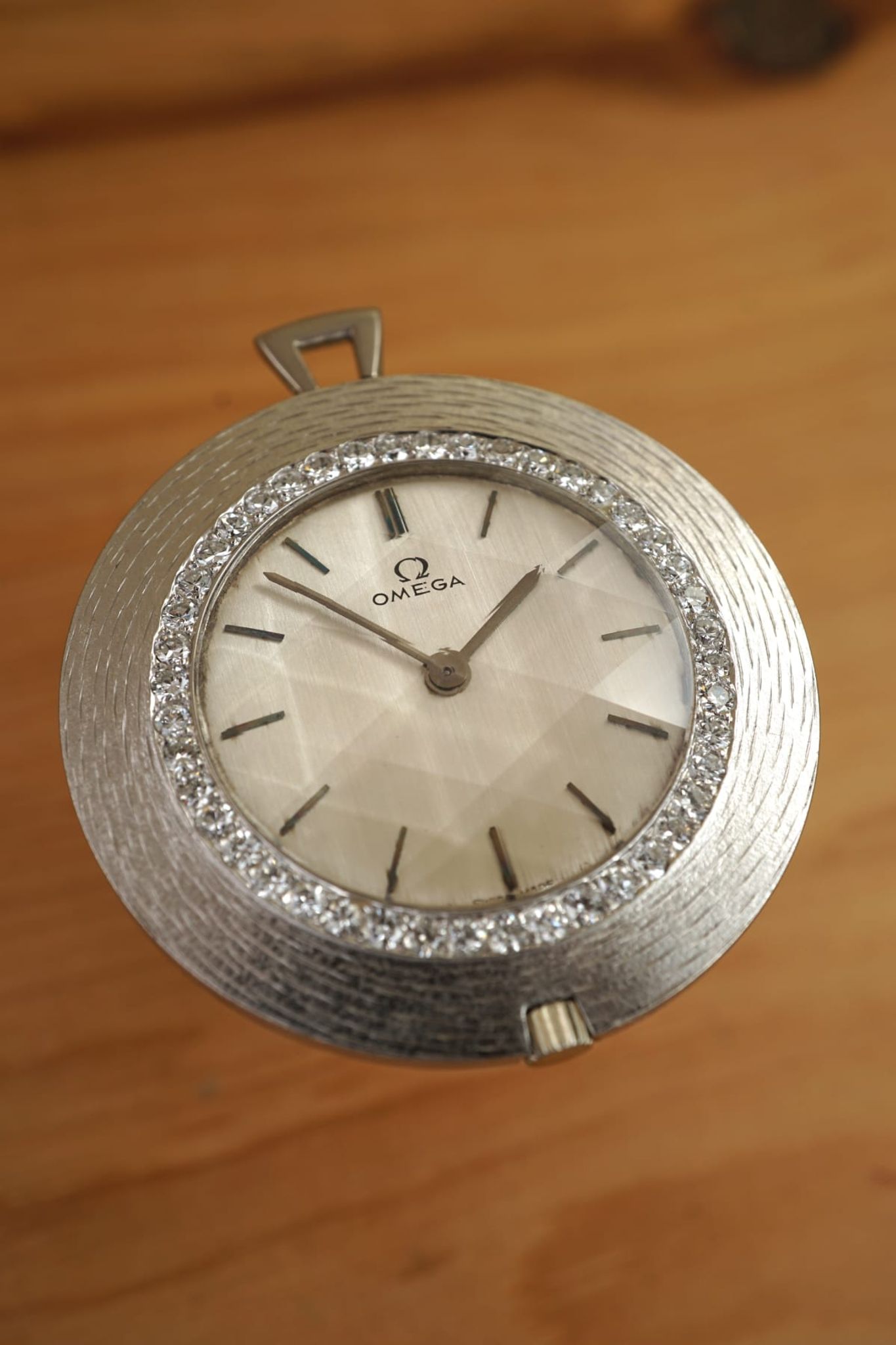 Omega - Damier: Faceted Crystal & Diamonds-Pocketwatch, Rare