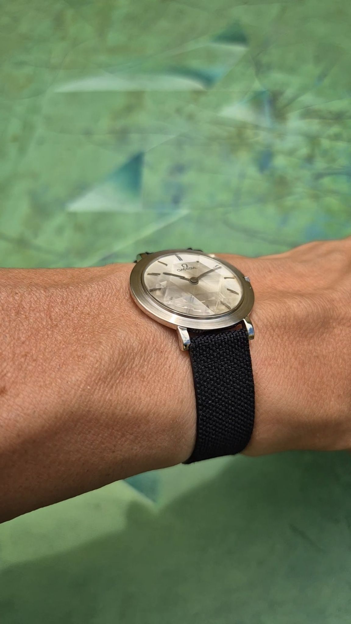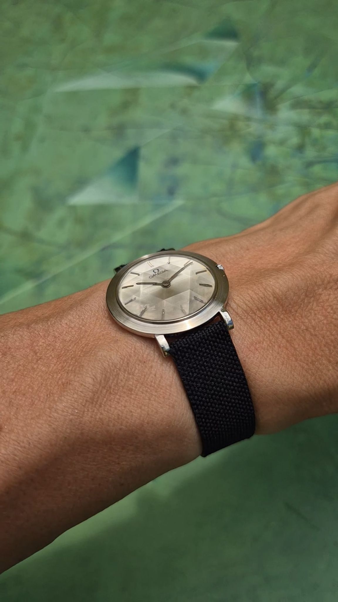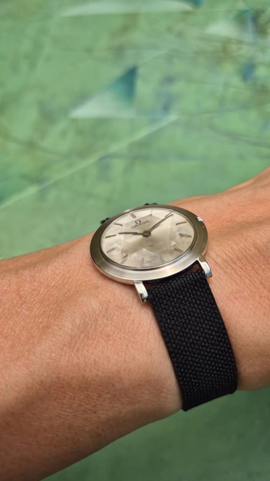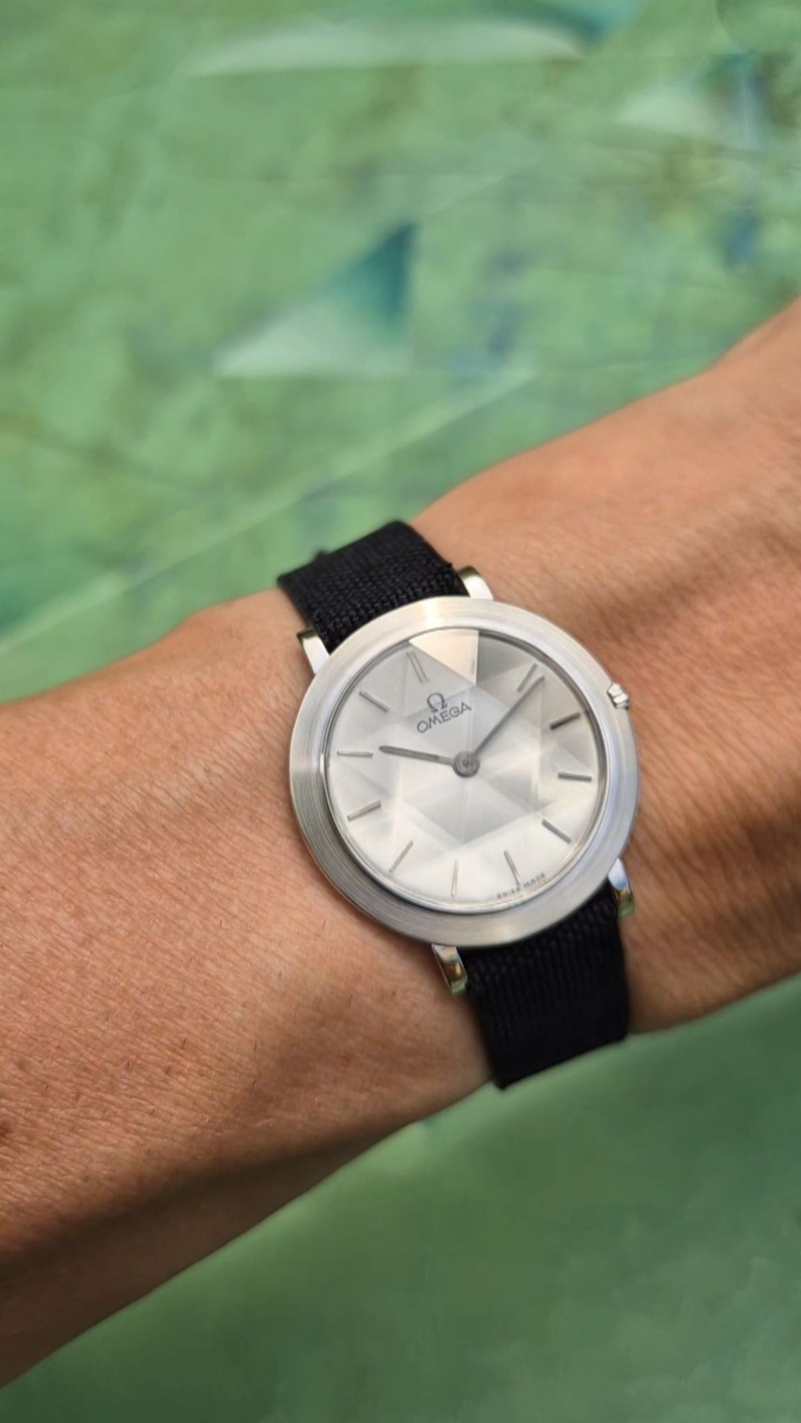 The original Damier was made by Omega for Marcus Neymann Jewelers in 1959 and from a >7ct diamond used as crystal. A piece unique and priced USD10'000 more than six decades ago. Yes, and in 1960 Omega proudly used sapphire-crystals for the very first time, achieving a close-to-a-diamond-hardness -- and they celebrated this innovative use with a replica of this piece unique. The Omega "Damier" -- not unique but back then and especially nowadays quite close to this. It is to my knowledge the first use of sapphire-crystal by Omega and it is diamond-like faceted and sparkles alike. Truly astonishing!