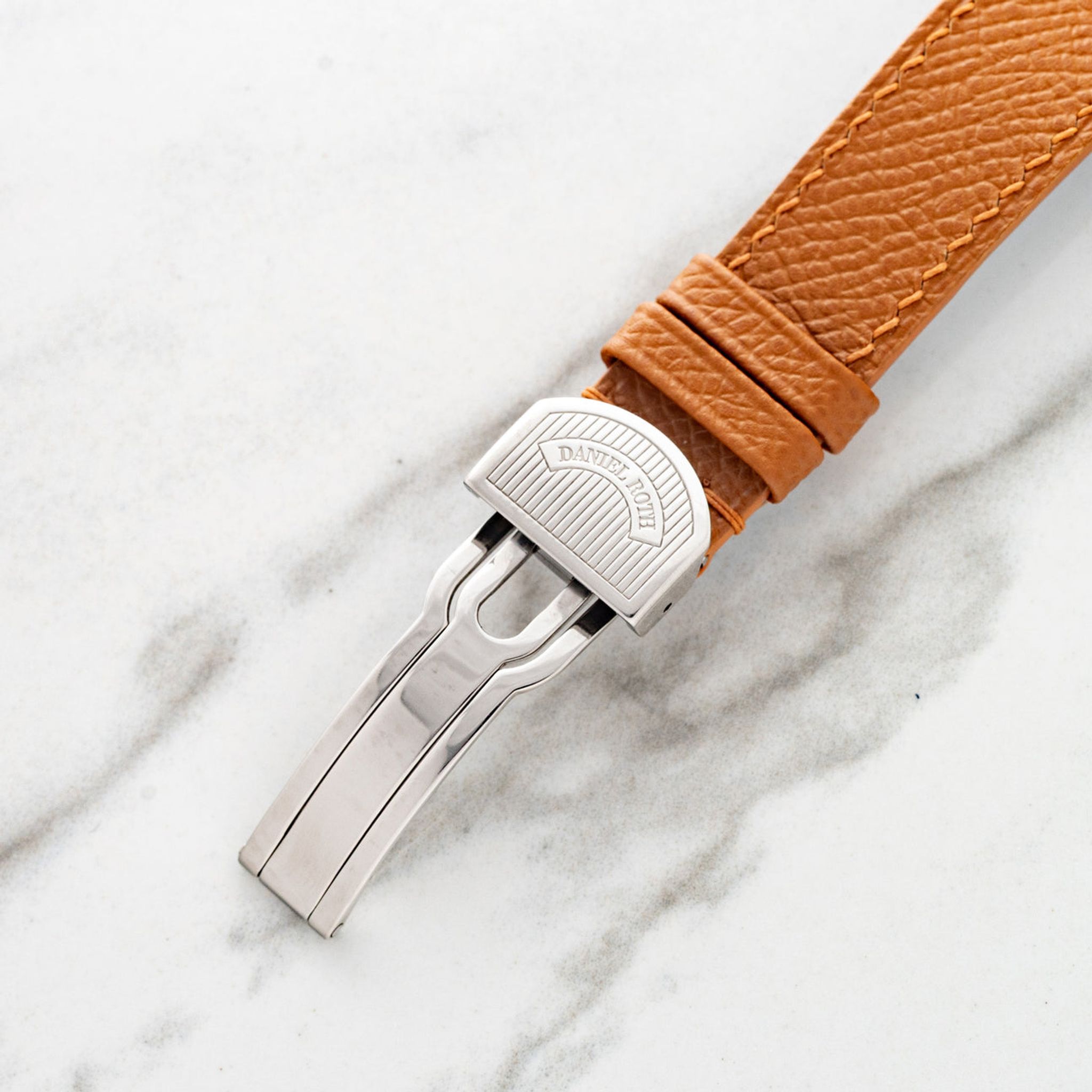 Bracelet: Correct DR signed deployant clasp and supple two piece grained leather strap. Accessories: NA