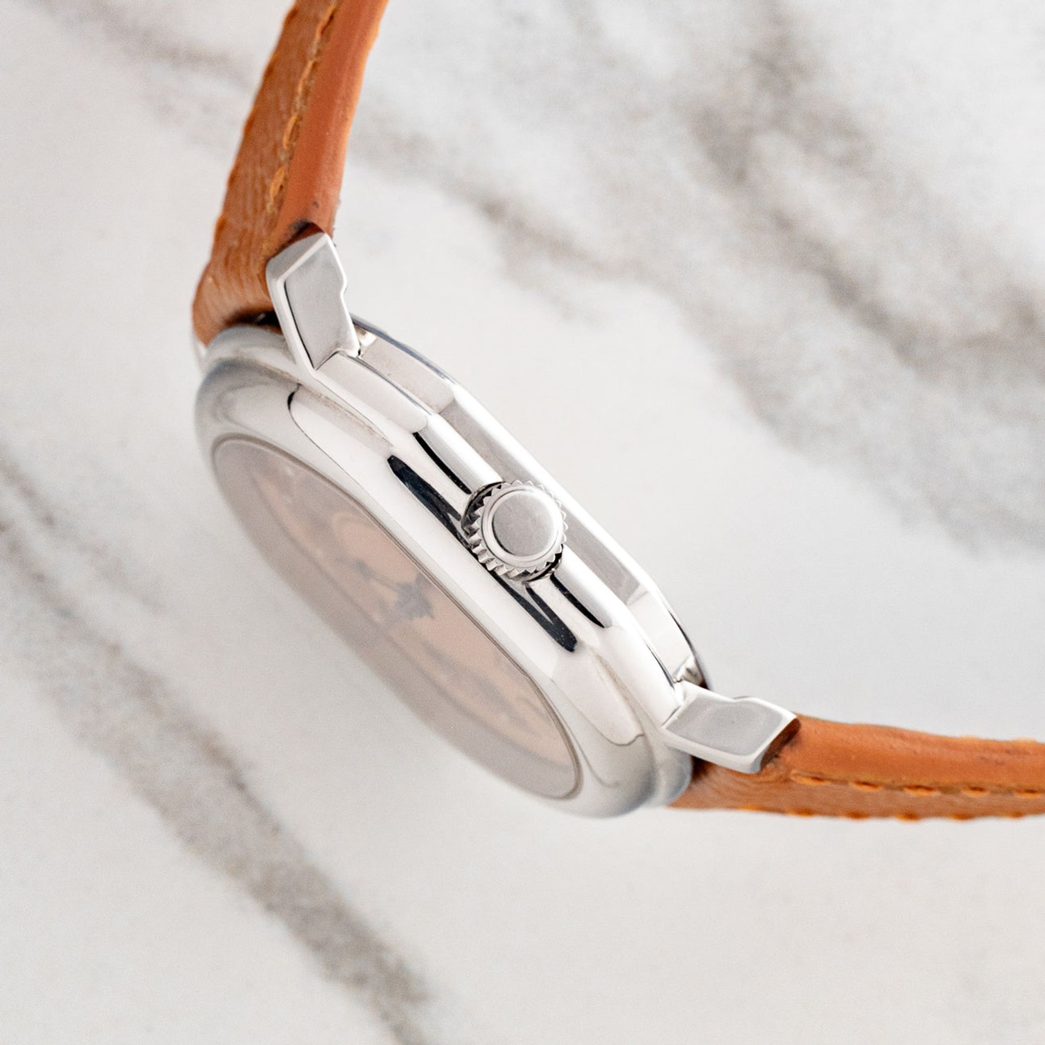 Has just come back from a complete overhaul from the high-grade service center WatchCheck. The movement is running well on our timegrapher and comes with our 1-year mechanical warranty.