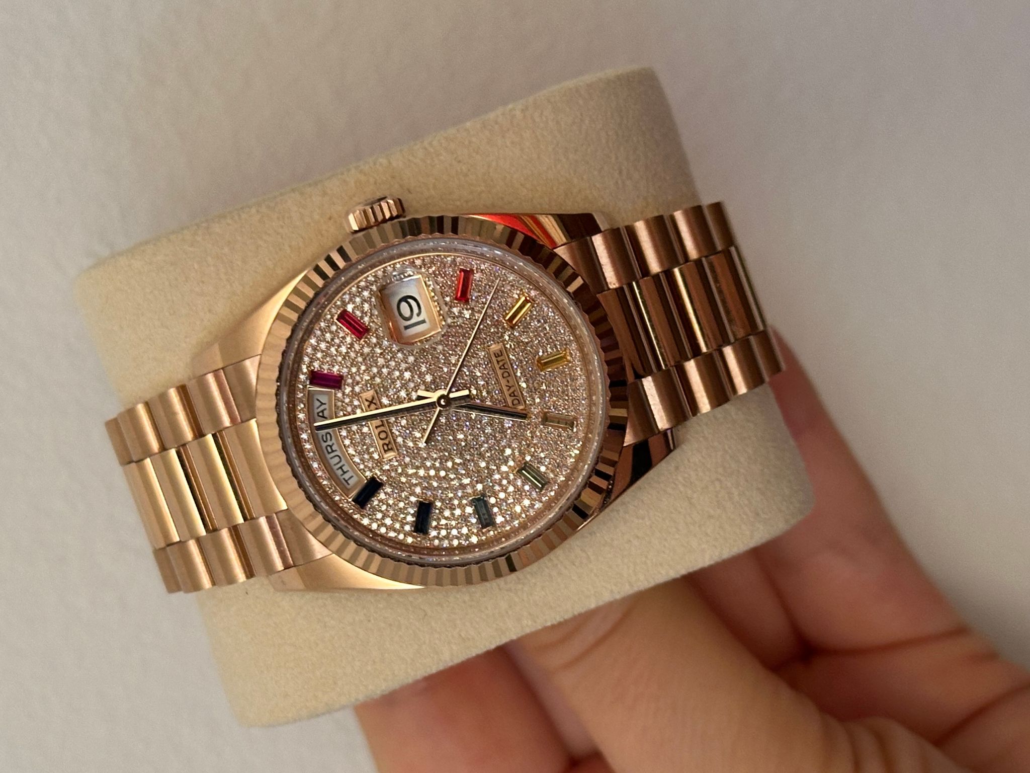 Rolex - Day-Date Factory Pave Diamond & Rainbow Dial
