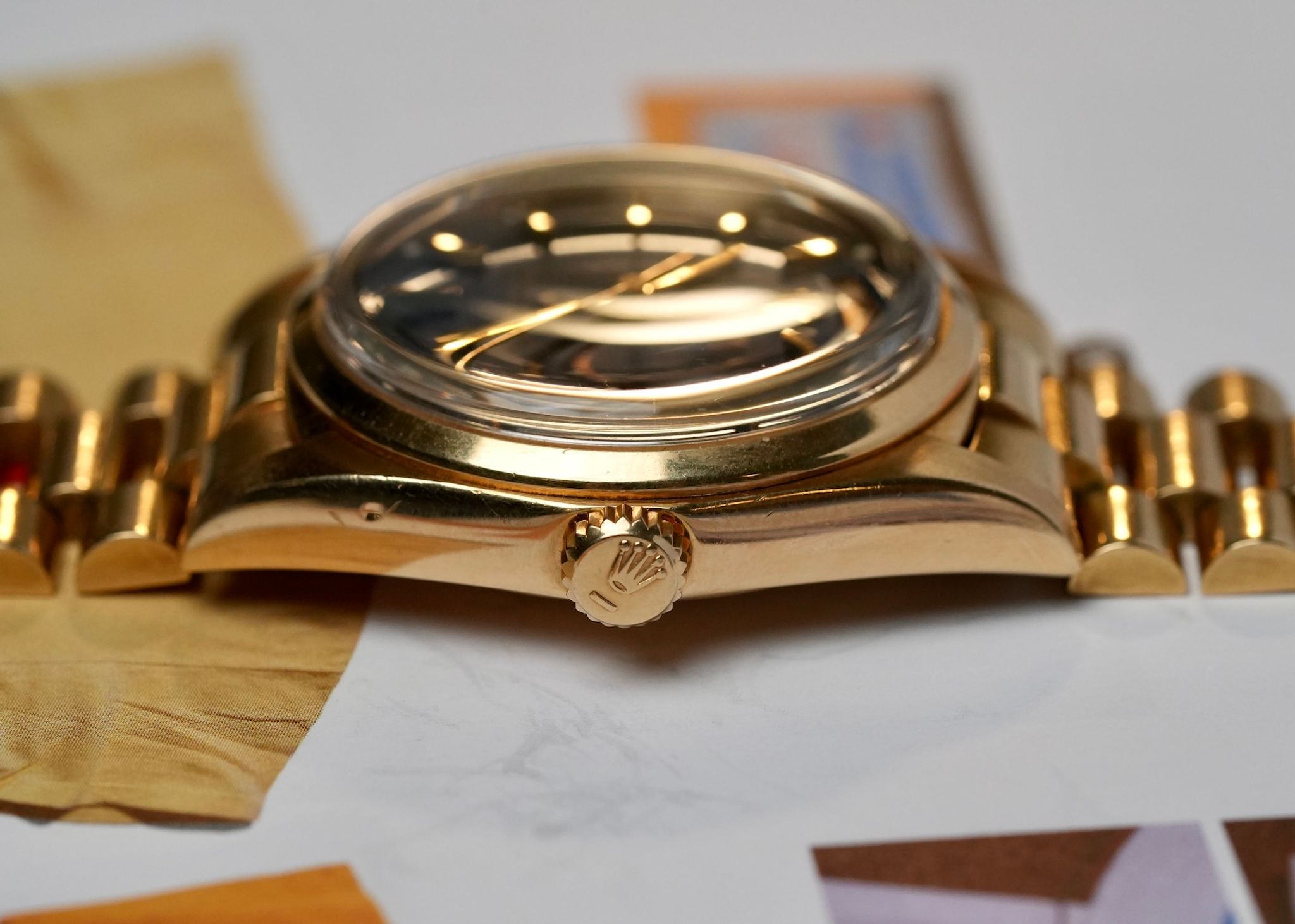 A Day-Date on president bracelet is truly classic. Luxurious yet robust, it can be recognized from across the room. What we have here is a variant for those who are infatuated by Day-Date DNA yet yearn to be a little different. This is a ref. 1802, not it’s more common brother the 1803. The 1802 sports a polished domed bezel vs. the 1803’s classic fluted bezel. It really just gives the watch an entirely different look. It’s also significantly rarer. Some folks have argued 10x rarer than your standard 1803.