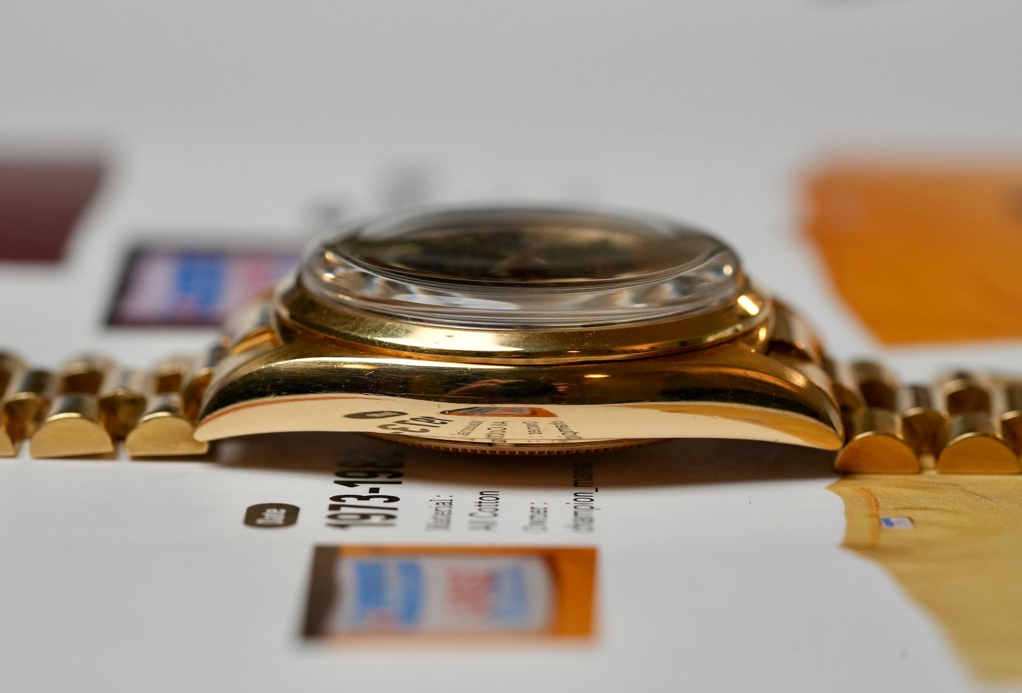 The 18k president bracelet is in solid shape for its age with moderate stretch. It has a 72 clasp code dating it to 1972. Overall the watch is in solid condition with lots of life left on the lugs. It’s been polished sparingly throughout its lifetime and has a great overall look. There is one larger ding by 5 o’clock on the side of the case . This example is a 2.7M serial dating to the end of 1971. It’s keeping great time and is ready to be enjoyed for years to come.