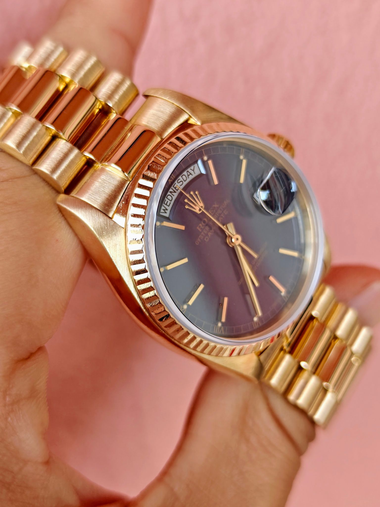 Here is one my absolute favourites... A good honest day-date with a simply stunning matte blue/purple dial. Matte dials transform these watches.