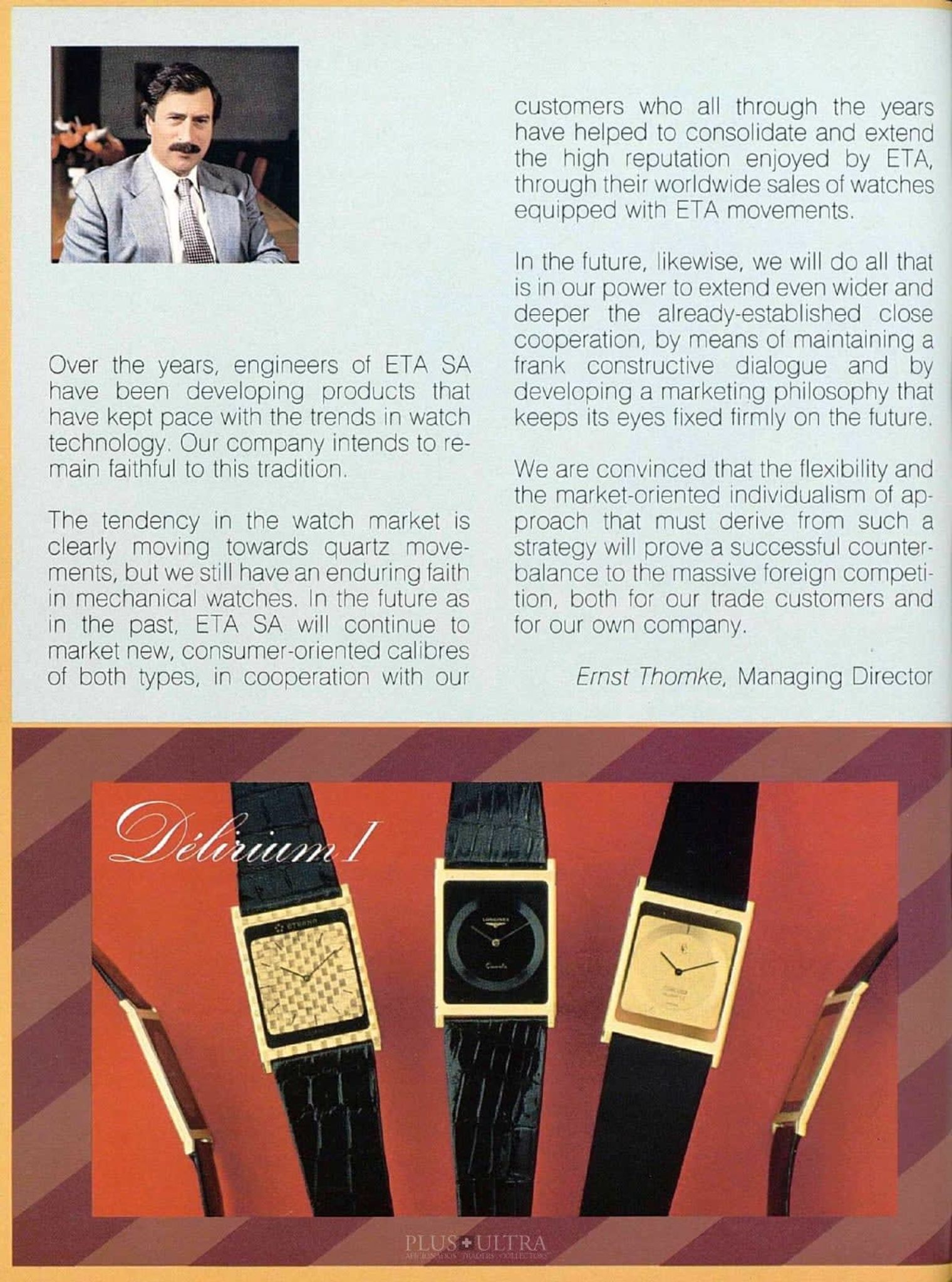 Its price was approx CHF20'000 or USD10'000 in 1979 -- and one can imagine that it was a true Yuppie Luxury item. Yes, an automatic-wound Rolex Submariner was priced slightly below USD1'000 at this time and so just approx 10% of this avantgarde-watch: modern, thin, made of gold and always precise and sharp on time -- automatic for the Punks, quartz for the Yuppies. We are happy to have an unworn and of course fully-working example in our offering.