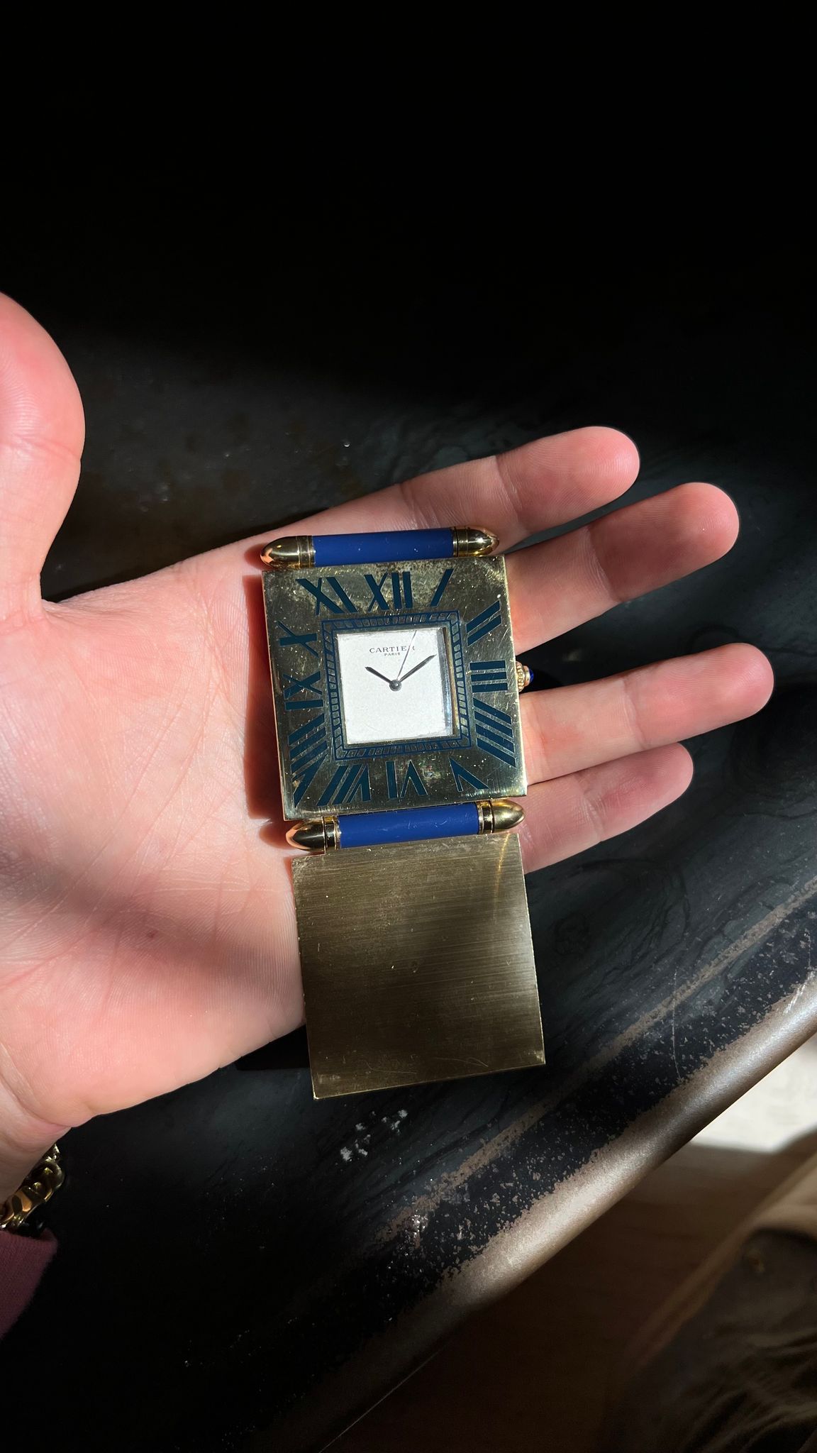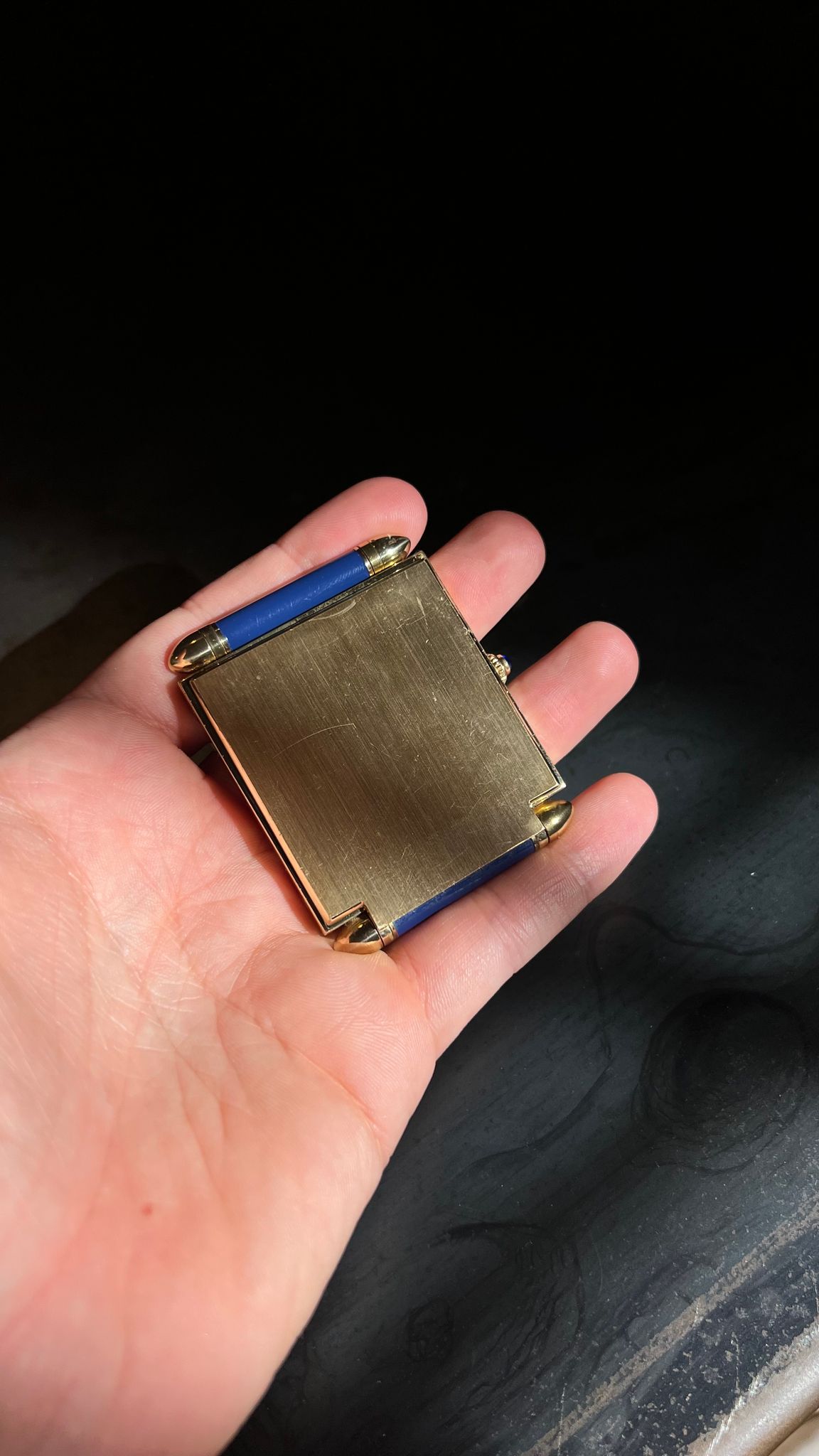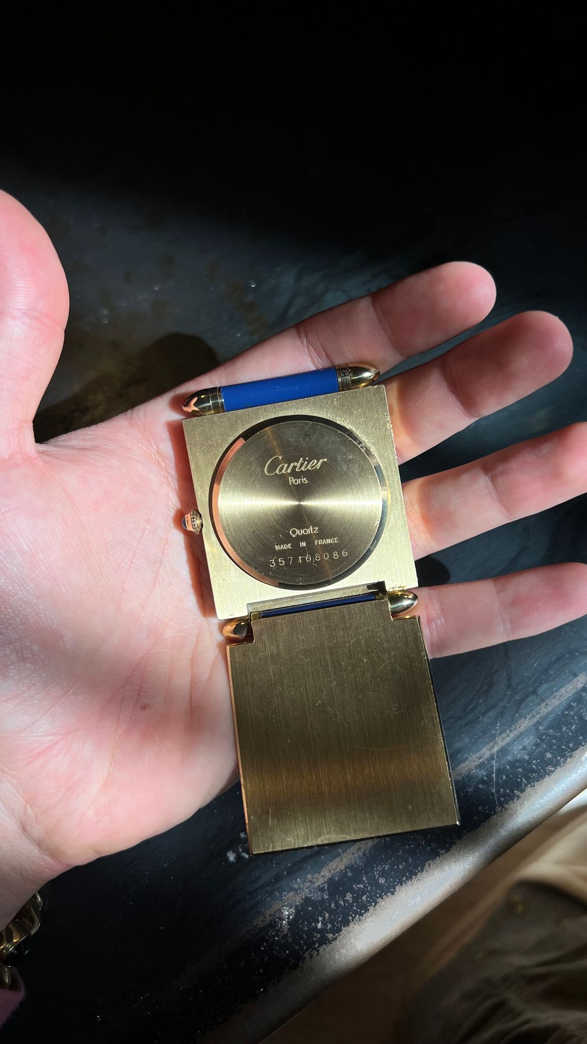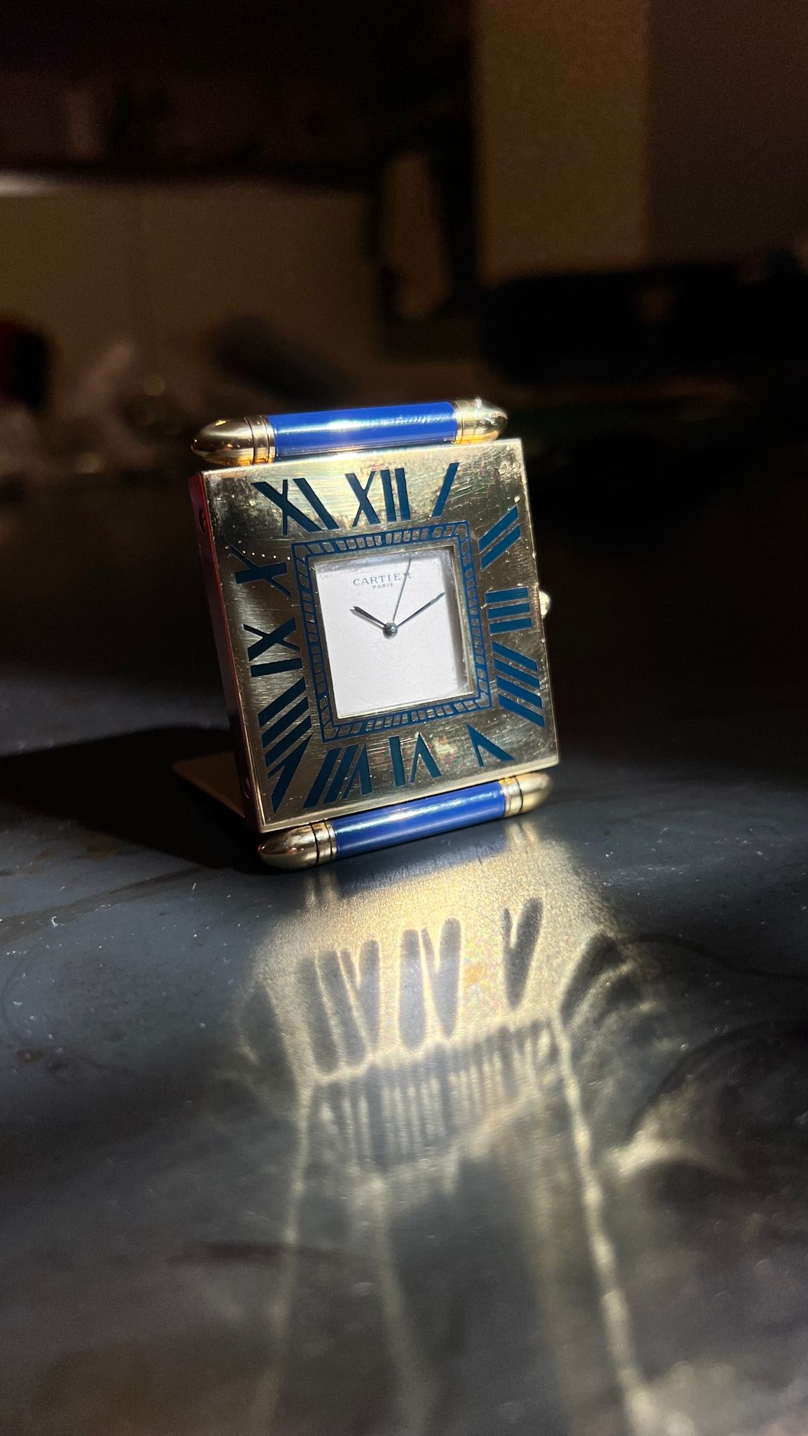 Cartier Desk Clock with blue enamel bezel