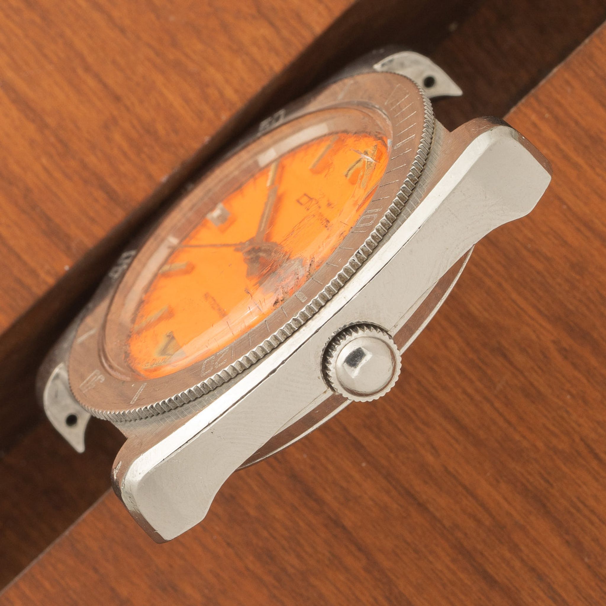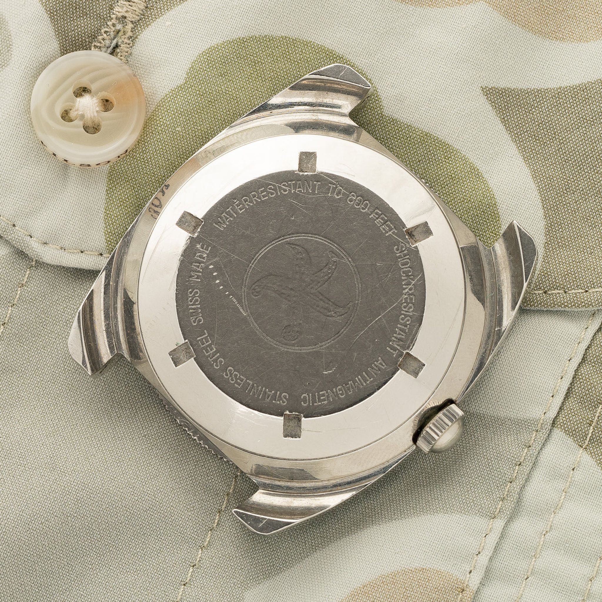 Case: Signs of use consistent with age. Very sharp chamfers and markings on caseback are still distinct. Unsigned crown.