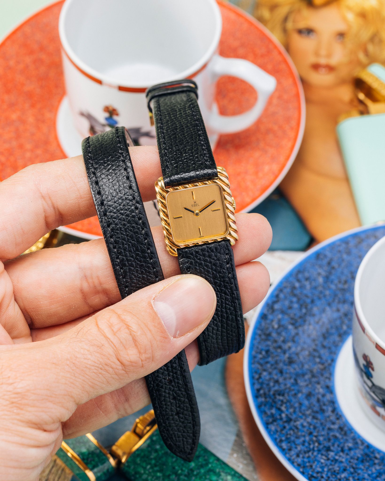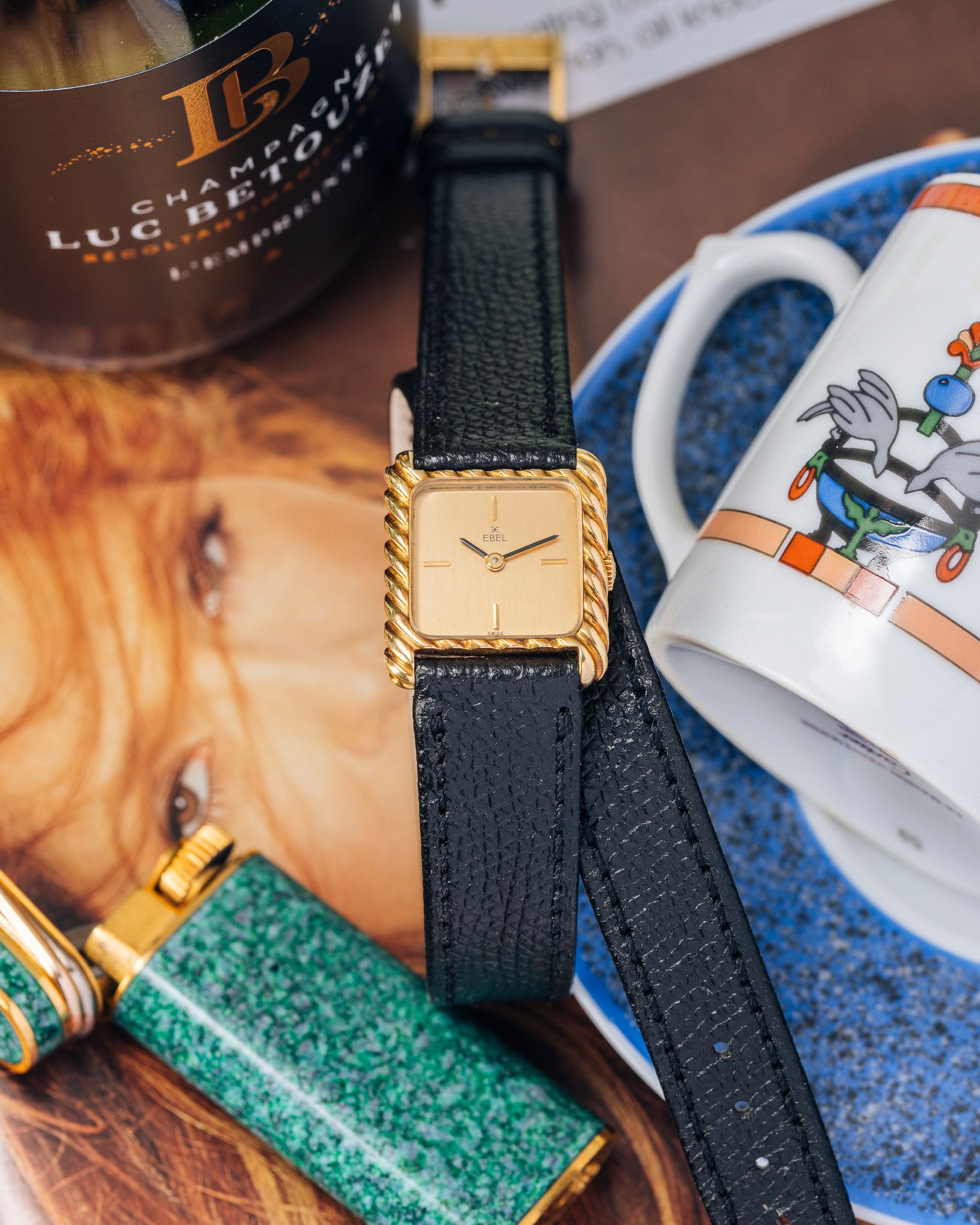 🍬🍬🍬Beautiful Ebel tank with a funky Candy case in 18kt yellow gold with its original buckle, and a hand wound mechanical movement.
