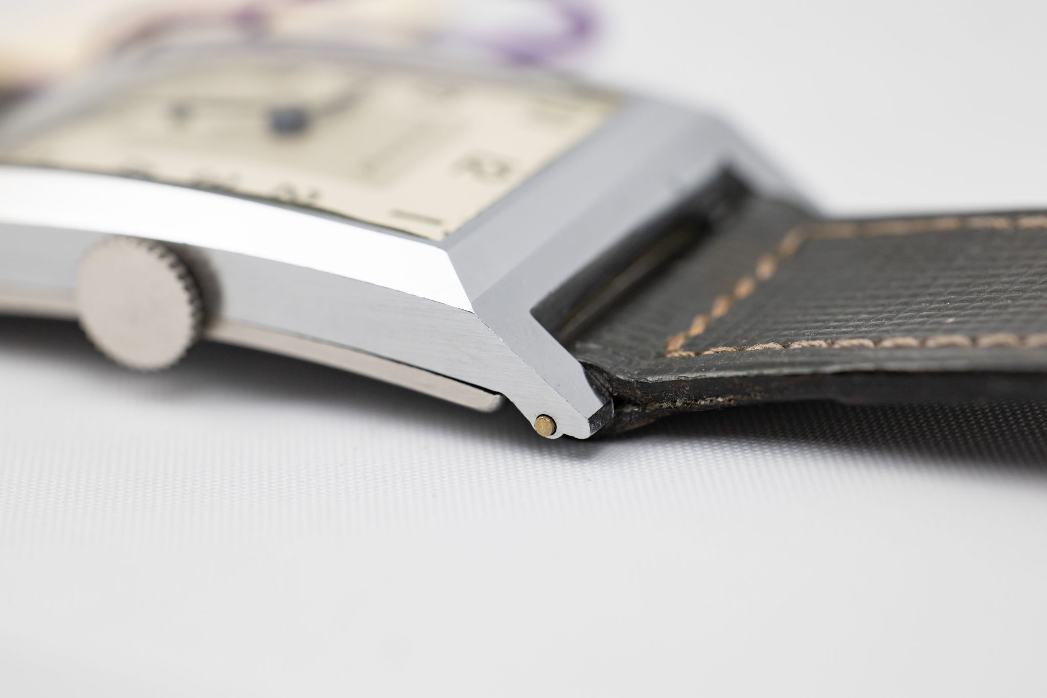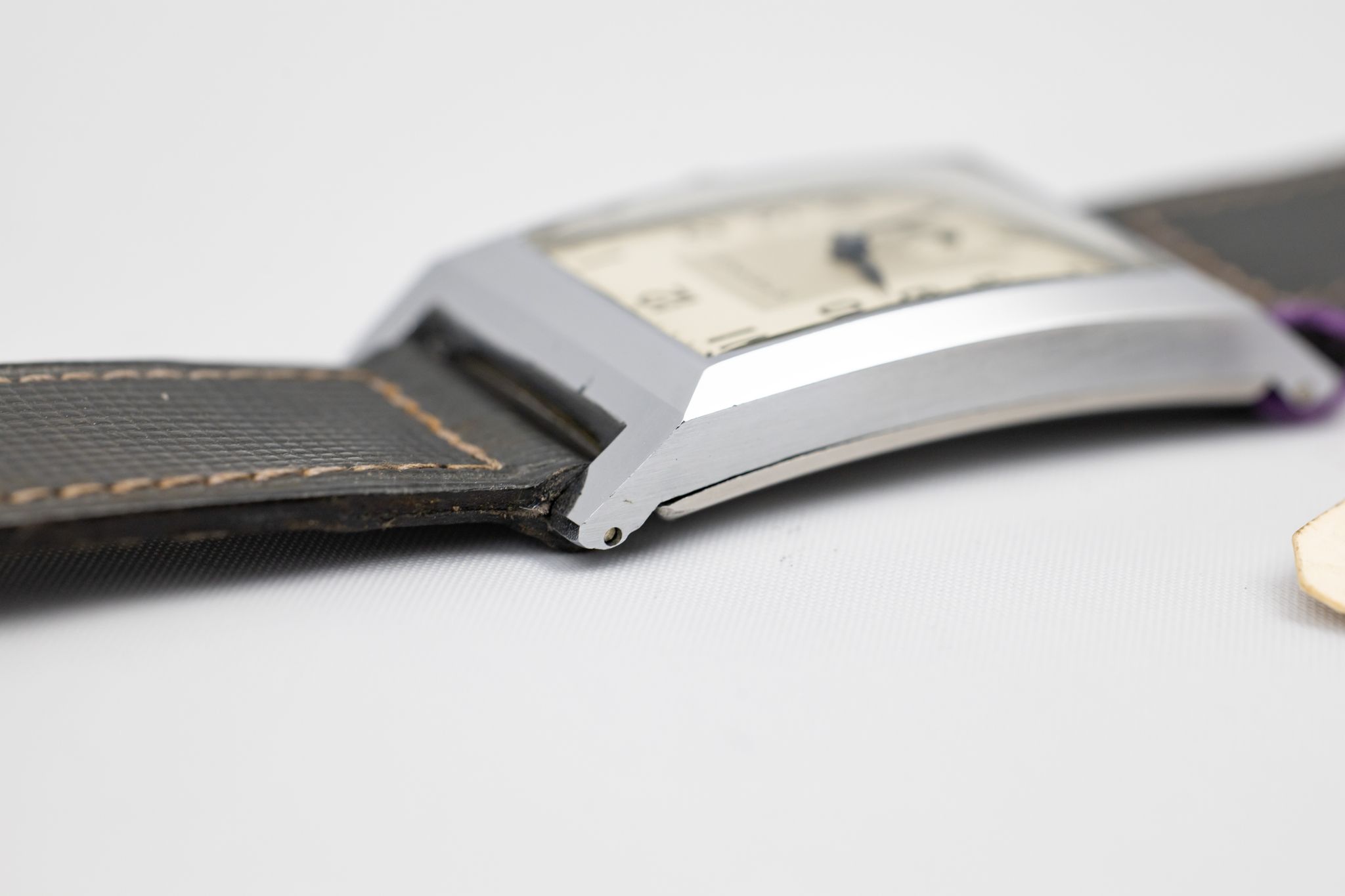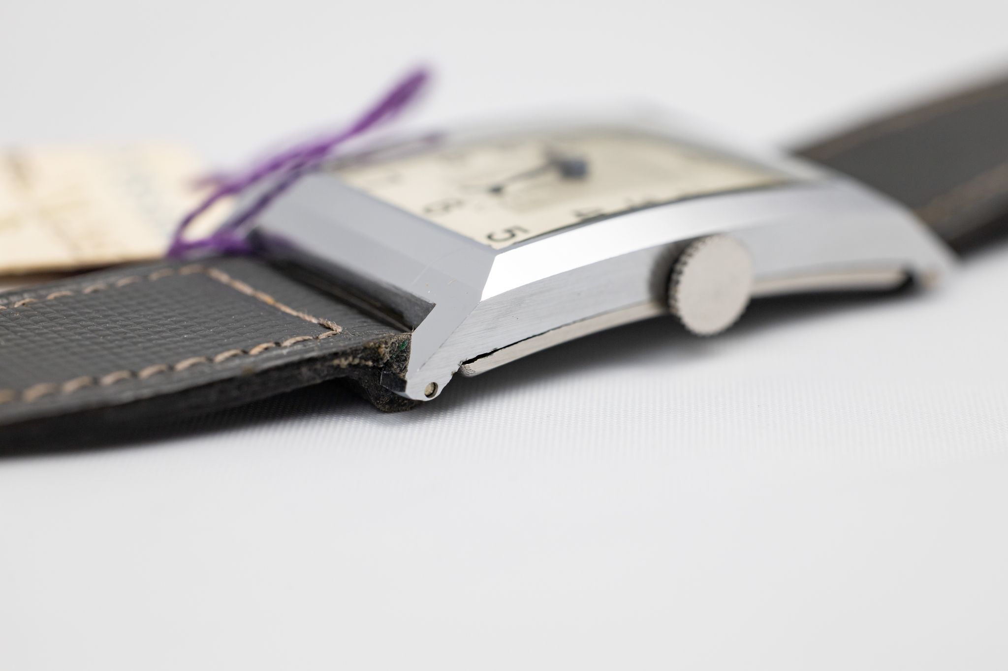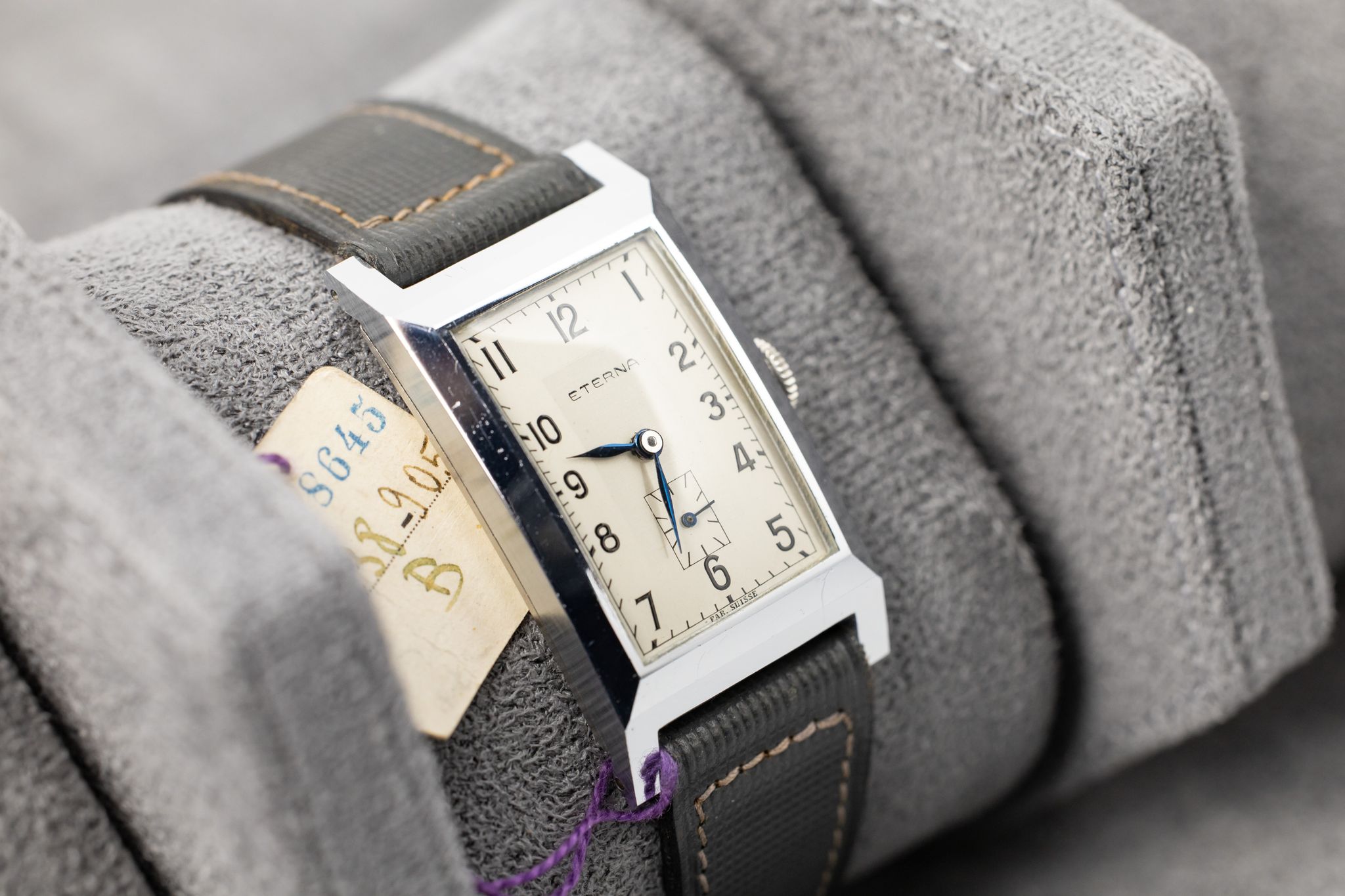 Offered for sale is a New Old Stock Eterna Tank in stainless steel, showcasing the iconic Art Deco design of the 1930s.