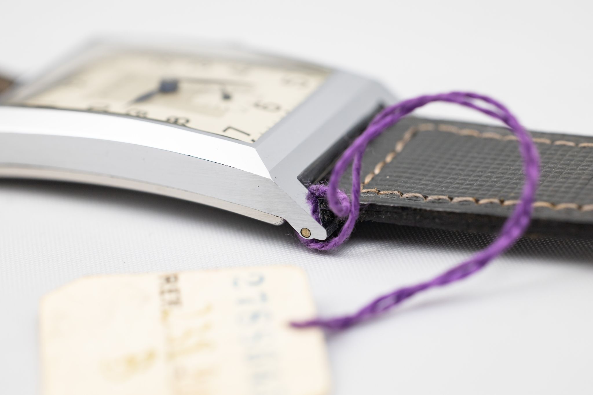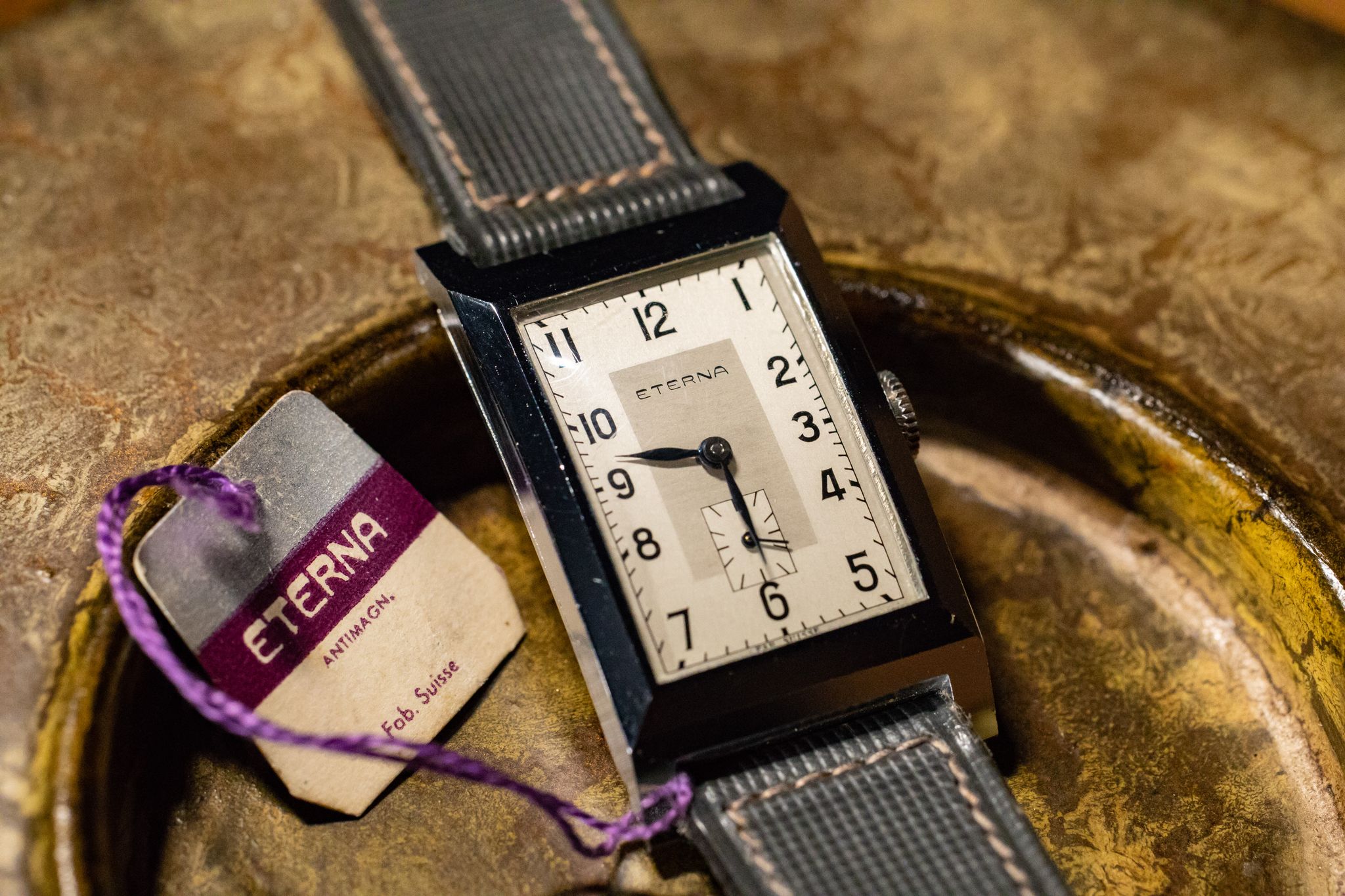 Eterna's tank watches from this era are characterized by their geometric and sleek design elements, capturing the essence of the prevailing aesthetic trends of the 1920s and 1930s. This NOS piece exemplifies those characteristics and represents a pristine, untouched example from that era.