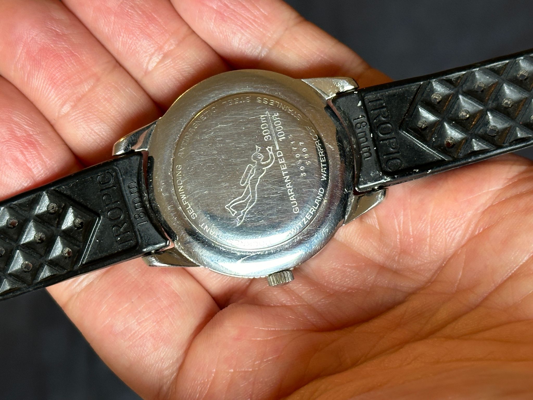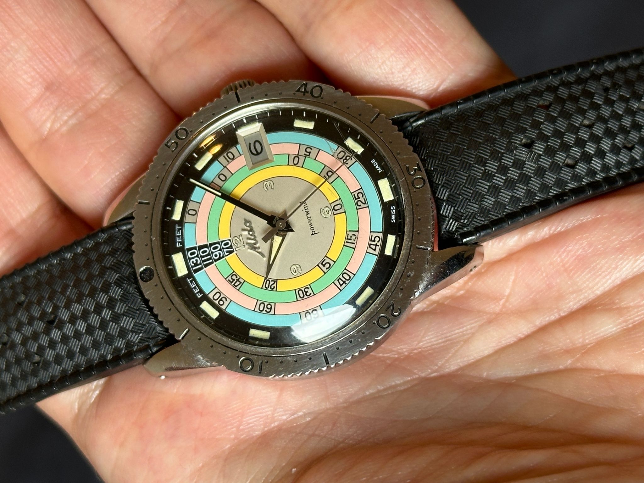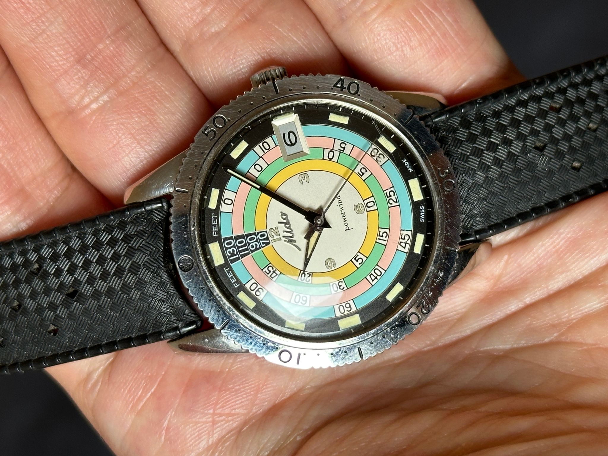 Absolutely stunning and impressive Mido PowerWind Ocean Star Diver, reference 5907. The best example I have ever seen. 100% correct with all engravings, including on the crystal. Original tropic strap and buckle.