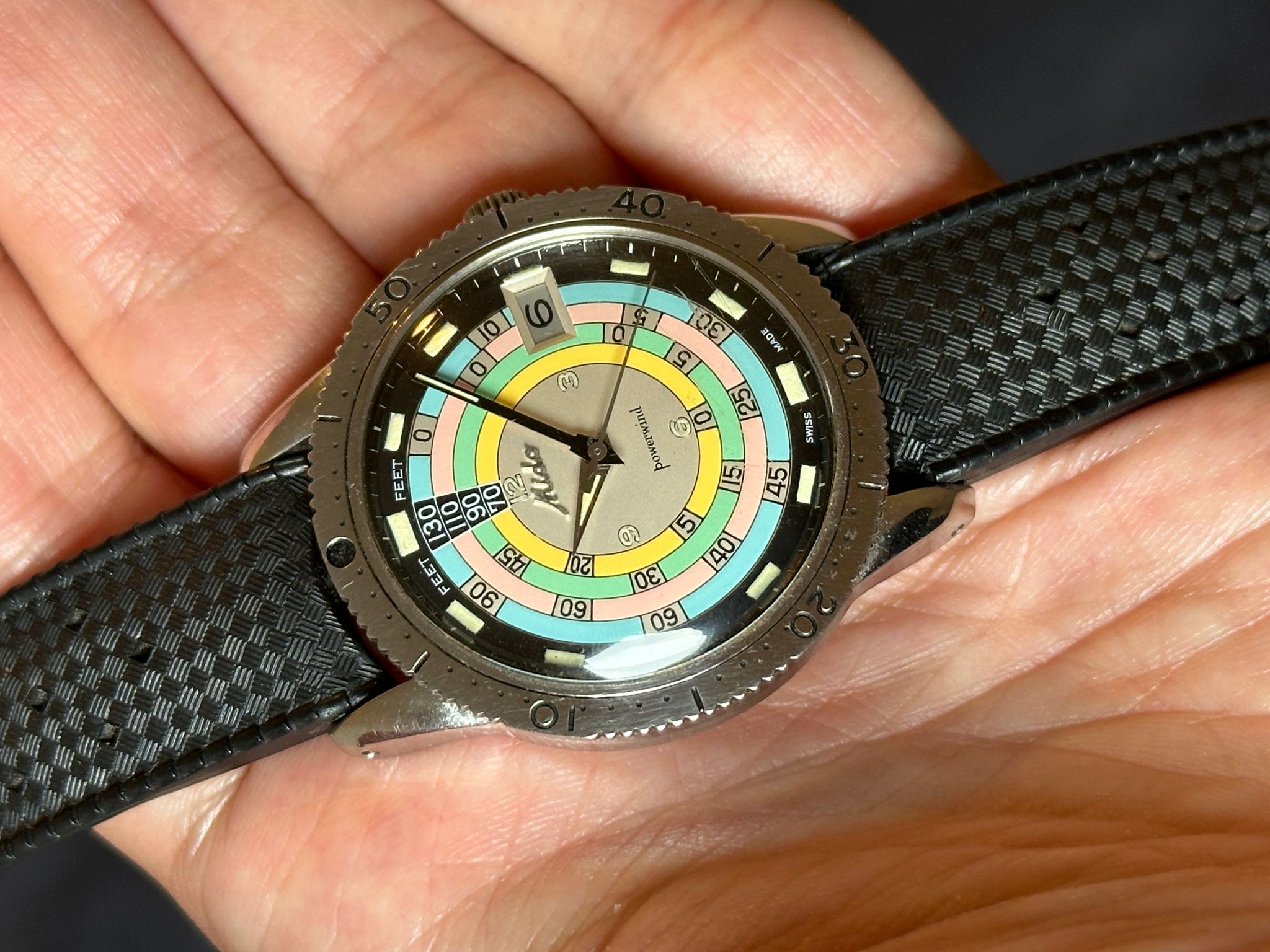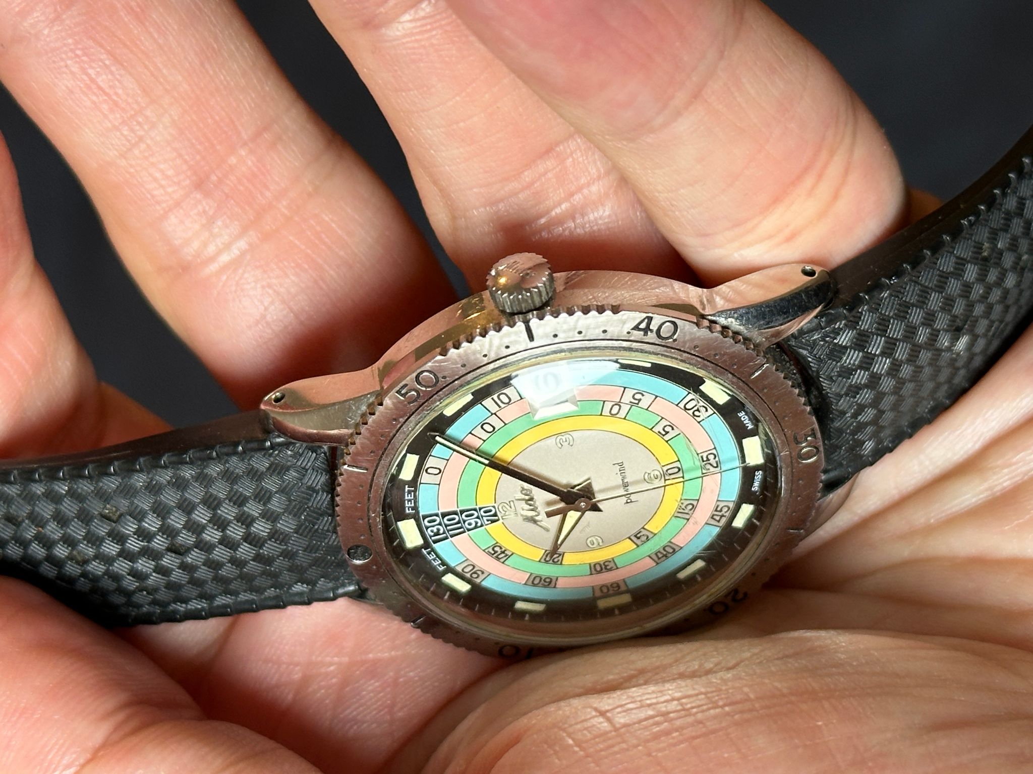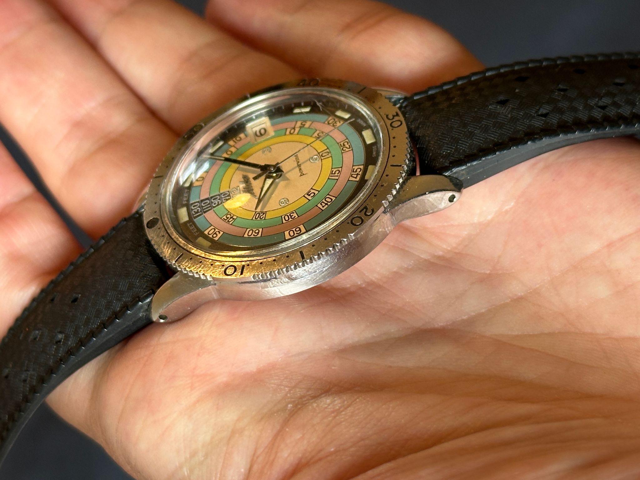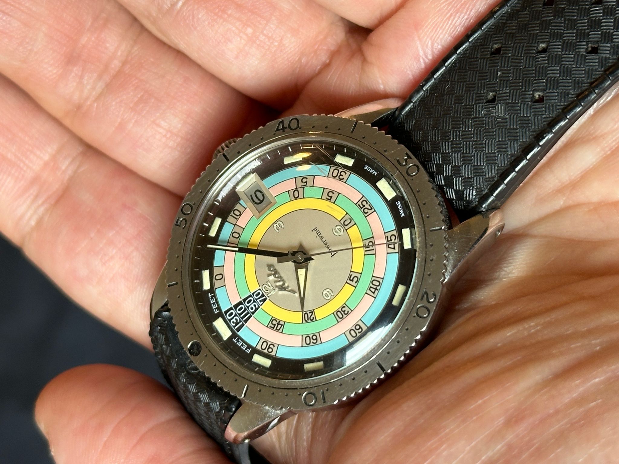 Absolutely stunning and impressive Mido PowerWind Ocean Star Diver, reference 5907. The best example I have ever seen. 100% correct with all engravings, including on the crystal. Original tropic strap and buckle.