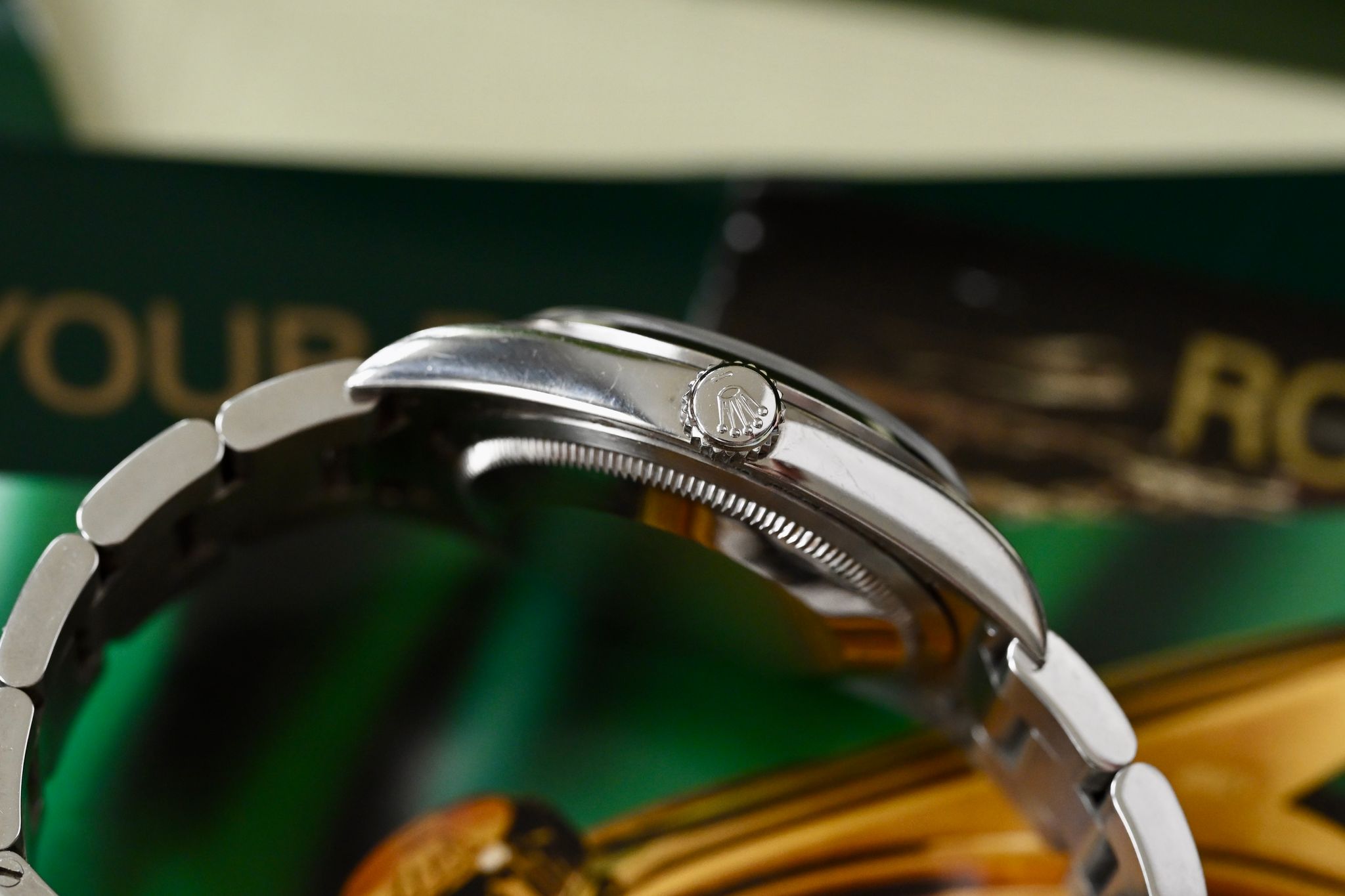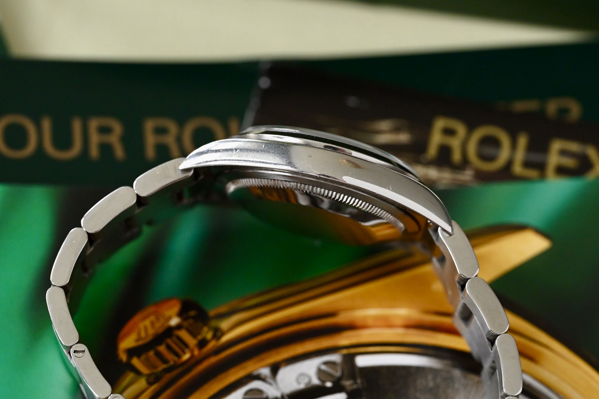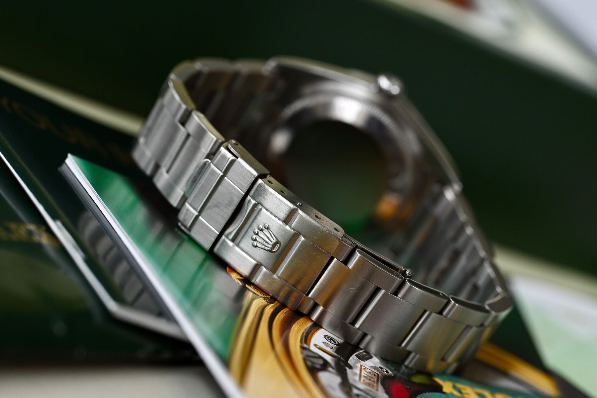 A classic Explorer ref. 114270 dating to 2005. This watch was meticulously cared for and remains in sharp unpolished condition with a true full set down to the original hangtags and receipt! This model wears incredibly well at 36mm with a robust no holes case and oyster bracelet with flip lock clasp. These are an excellent value, in fact this watch is being offered below original when adjusted for inflation!
