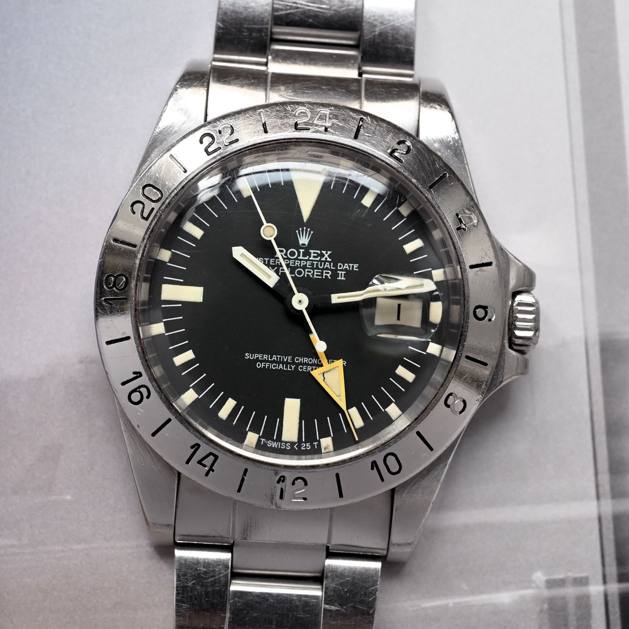 The Rolex Explorer reference 1655 was launched in 1971 and remained in production until 1985. It was the first Explorer II model, with an orange 24-hour hand.