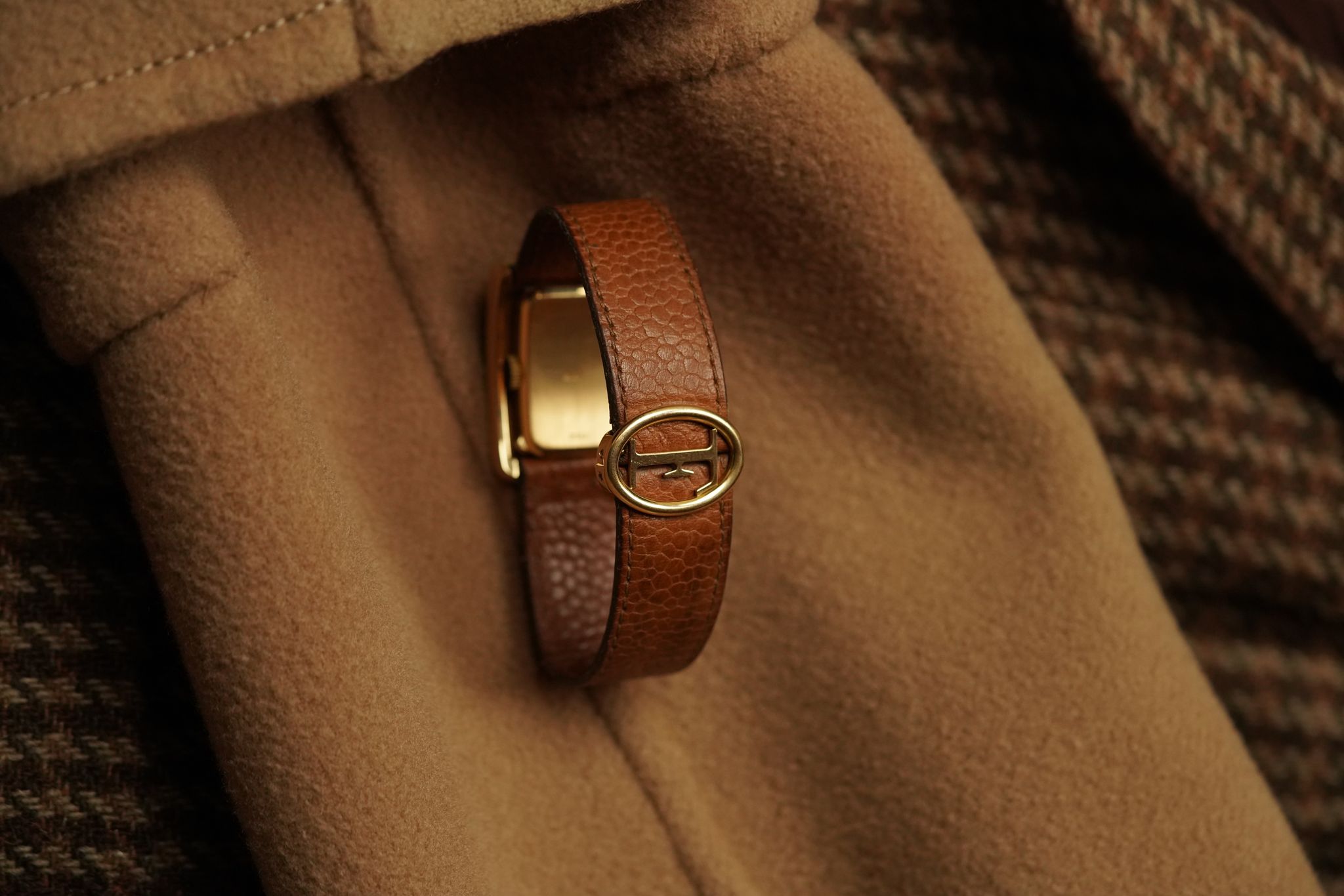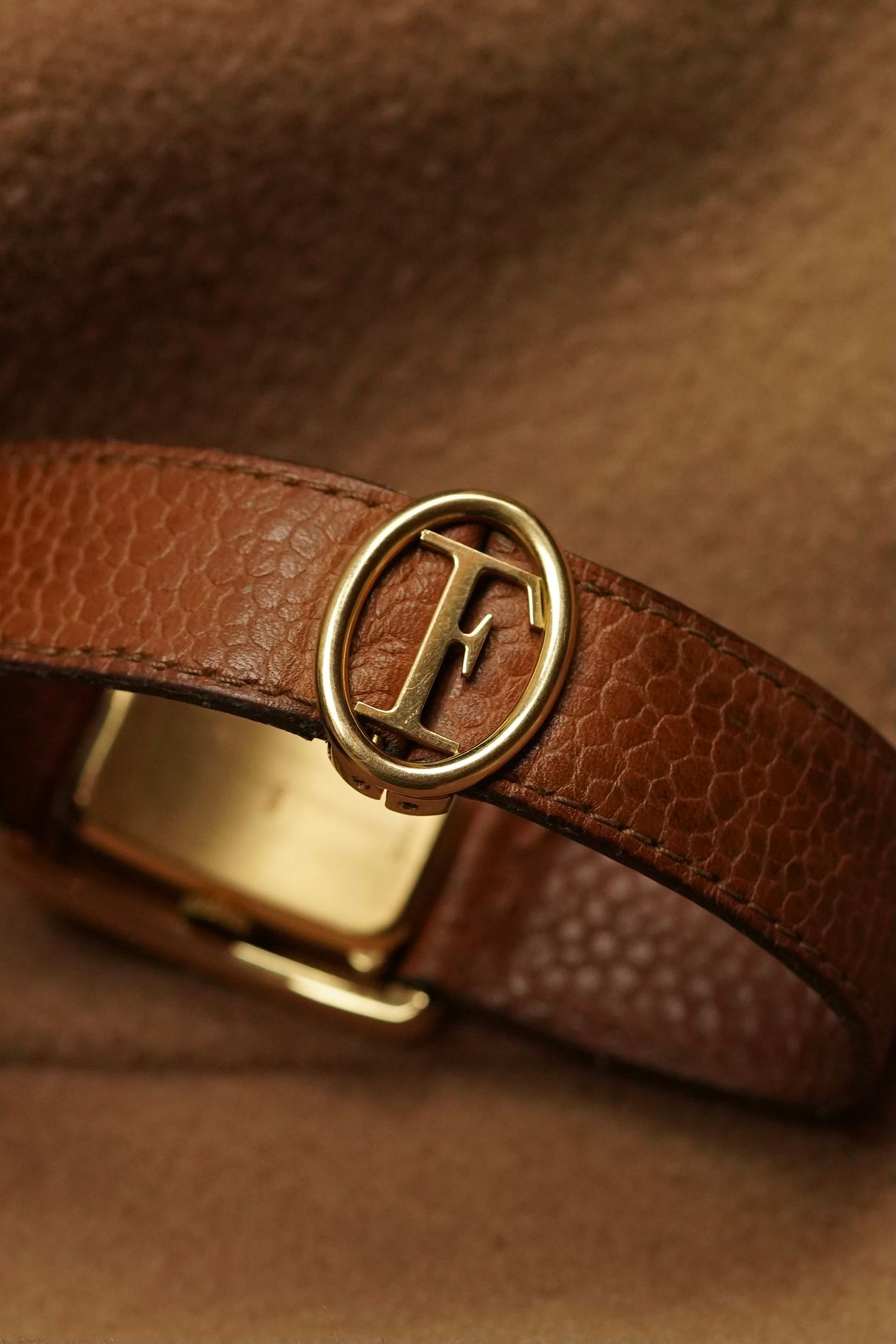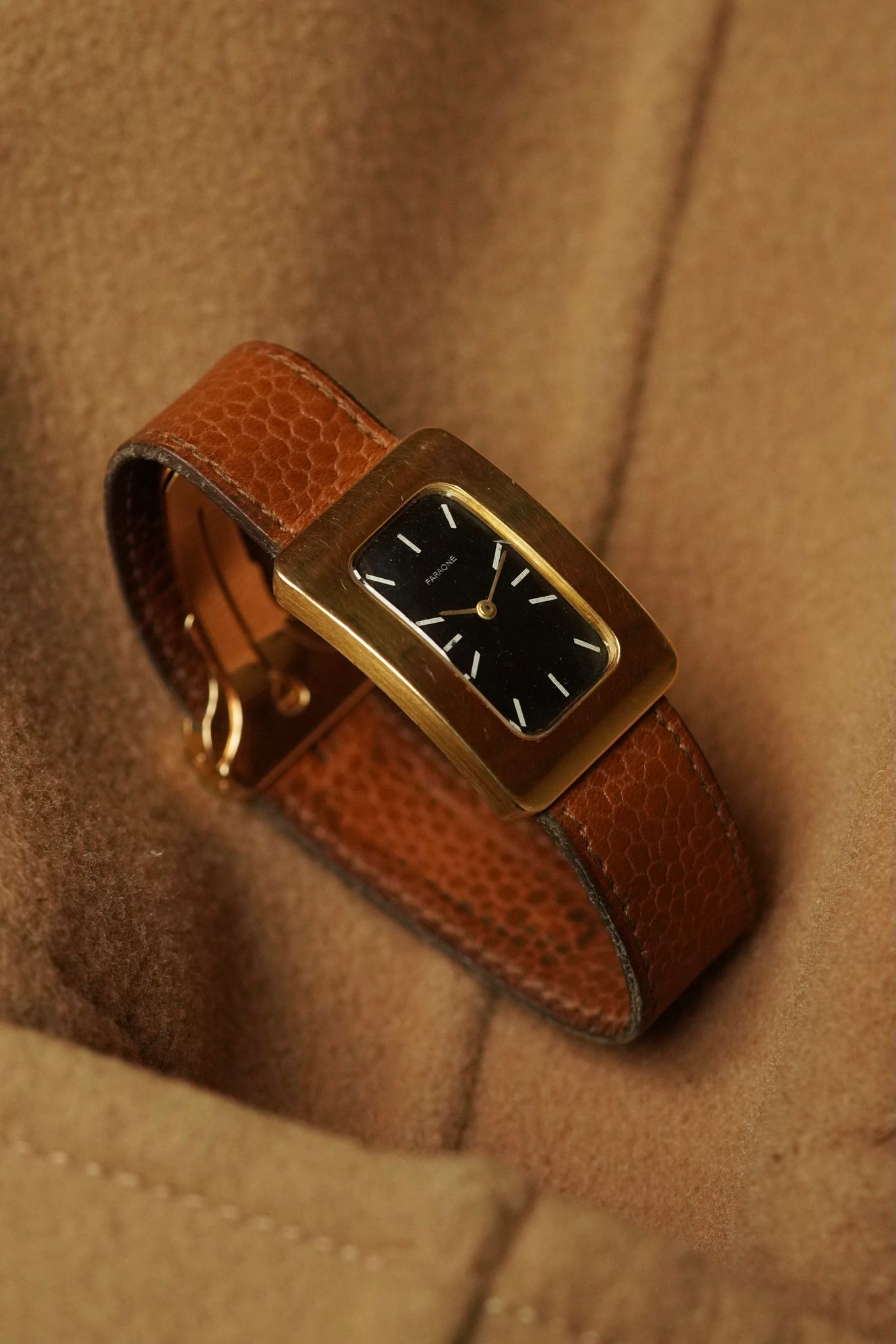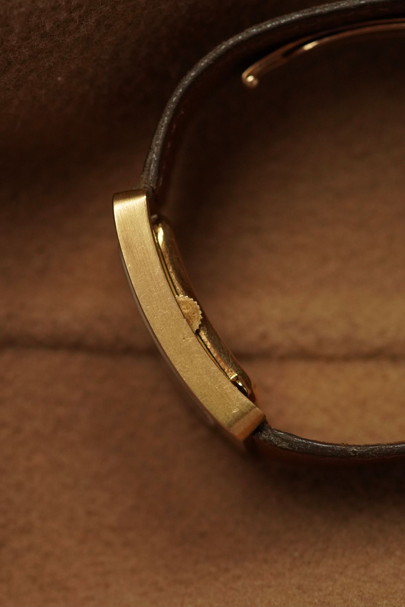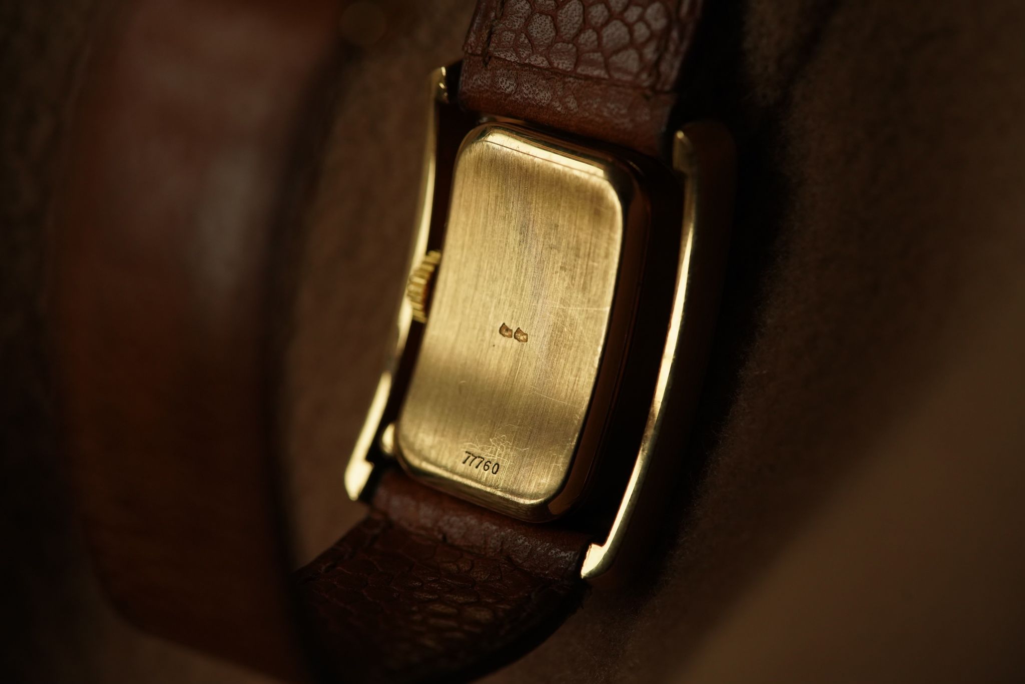 Faraone was a historical jewellery shop founded in Florence on the Ponte Vecchio that later expanded to Milan and sold some of the most exceptional pieces of jewellery ever crafted. In the 1980s they experimented with a small line of watches including this unseen before large (24x33mm) 18k yellow gold cintrèe style watch.