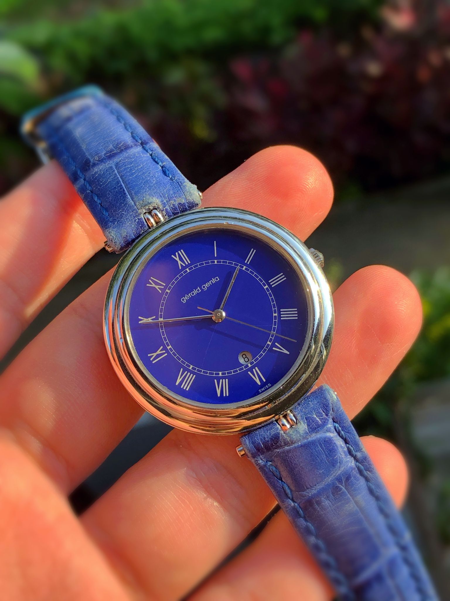 Offered here is a rare and special stainless-steel Gerald Genta G.3132.7 Ultra-Thin Automatic (Special Rare Blue Dial)