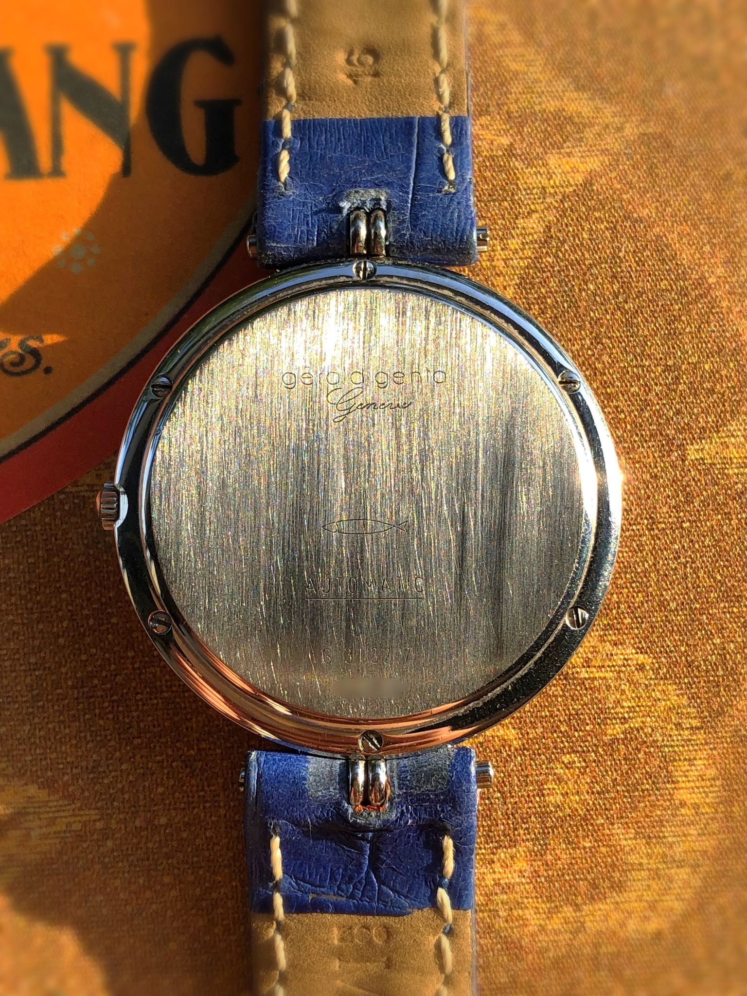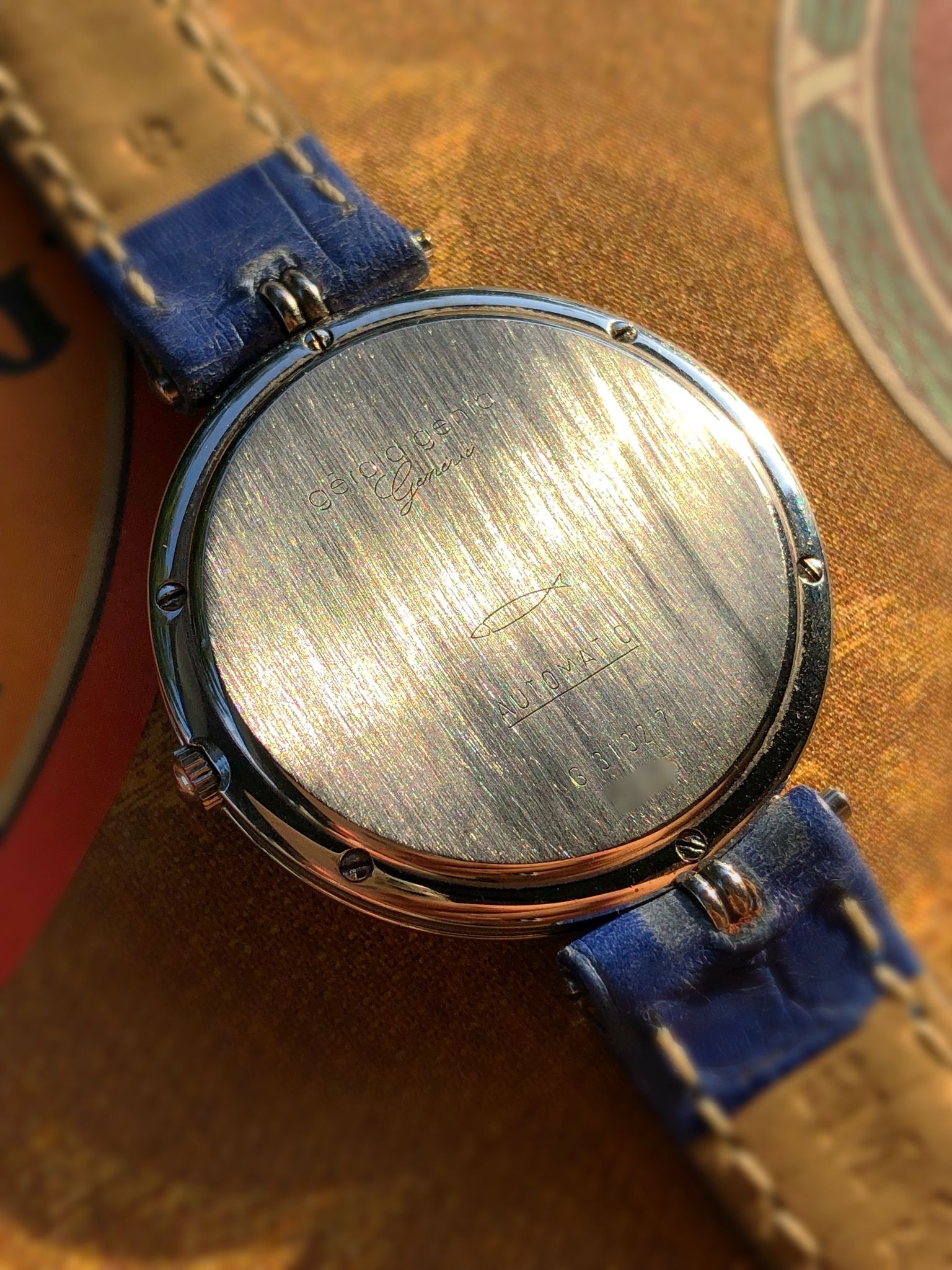 Behind the solid caseback reveals a Gerald Genta signed Frederic Piguet 9.51 automatic movement.