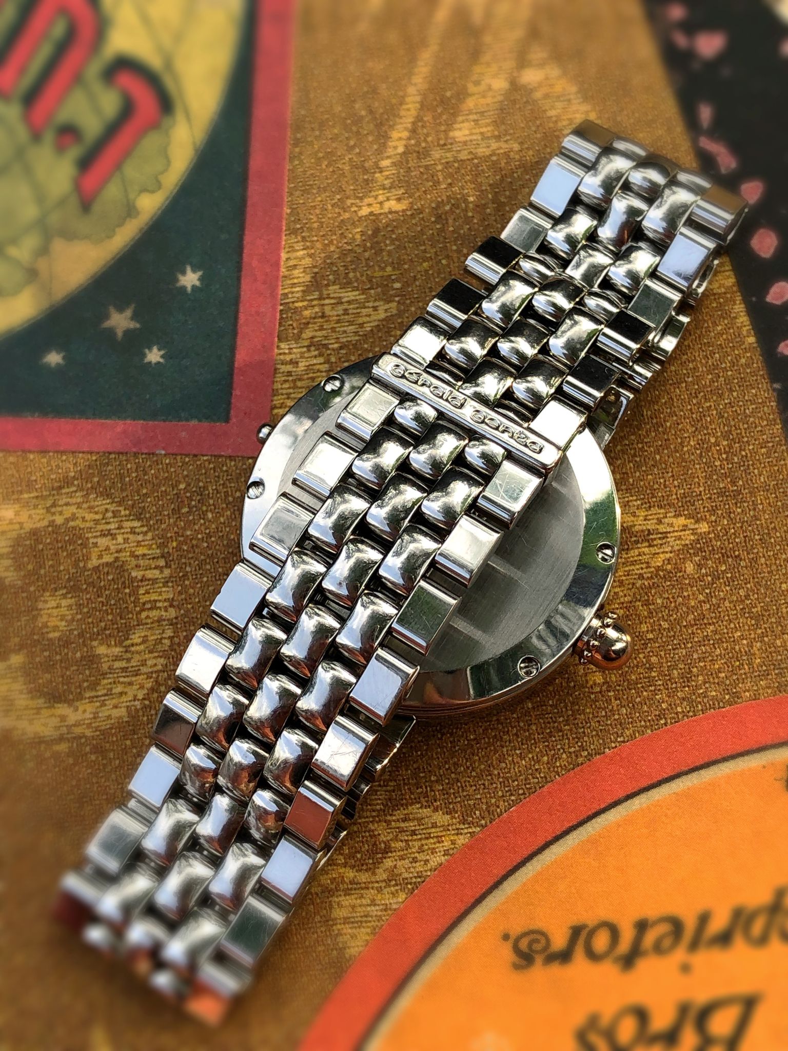 Though this Genta does not feature its iconic octagonal case design, the watch still retains Maestro Gerald Genta’s signature cues, such as the Genta winding crown, the unconventional lug design and of course the Genta integrated Bead-of-Rice Bracelet, with this example in stainless steel.