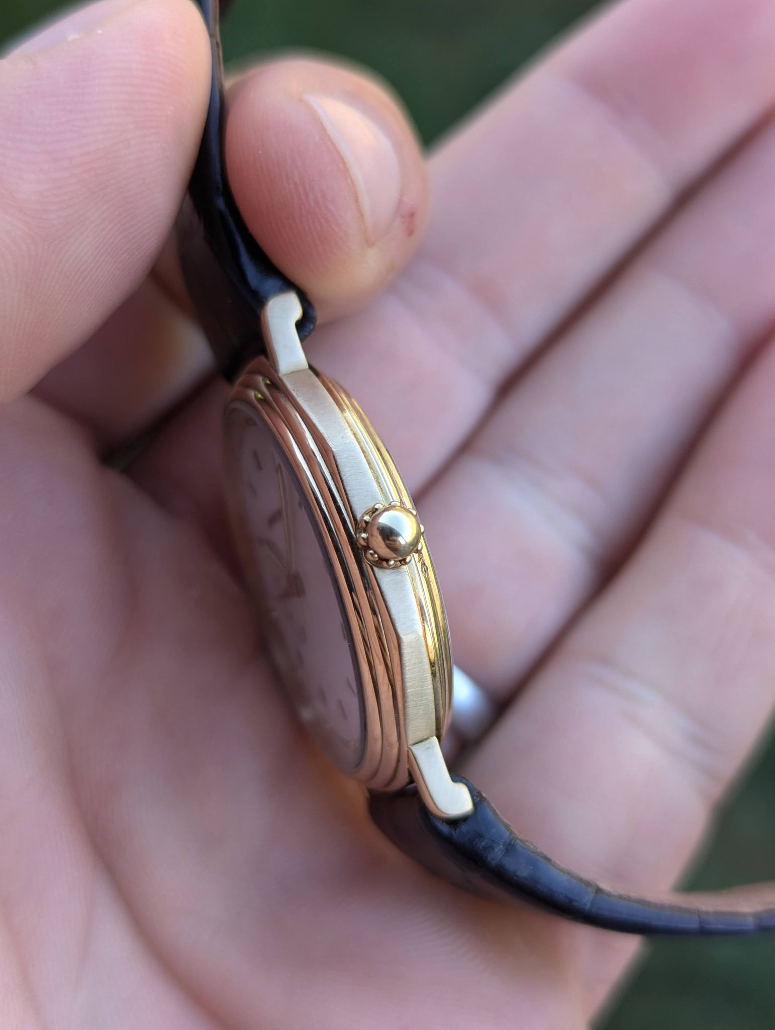 This model makes no exception. Produced in 1984 in 25 examples, to celebrate the 25th anniversary of the brand, it bears some of the most important design elements of Genta’s watches, still with its own stron personality.