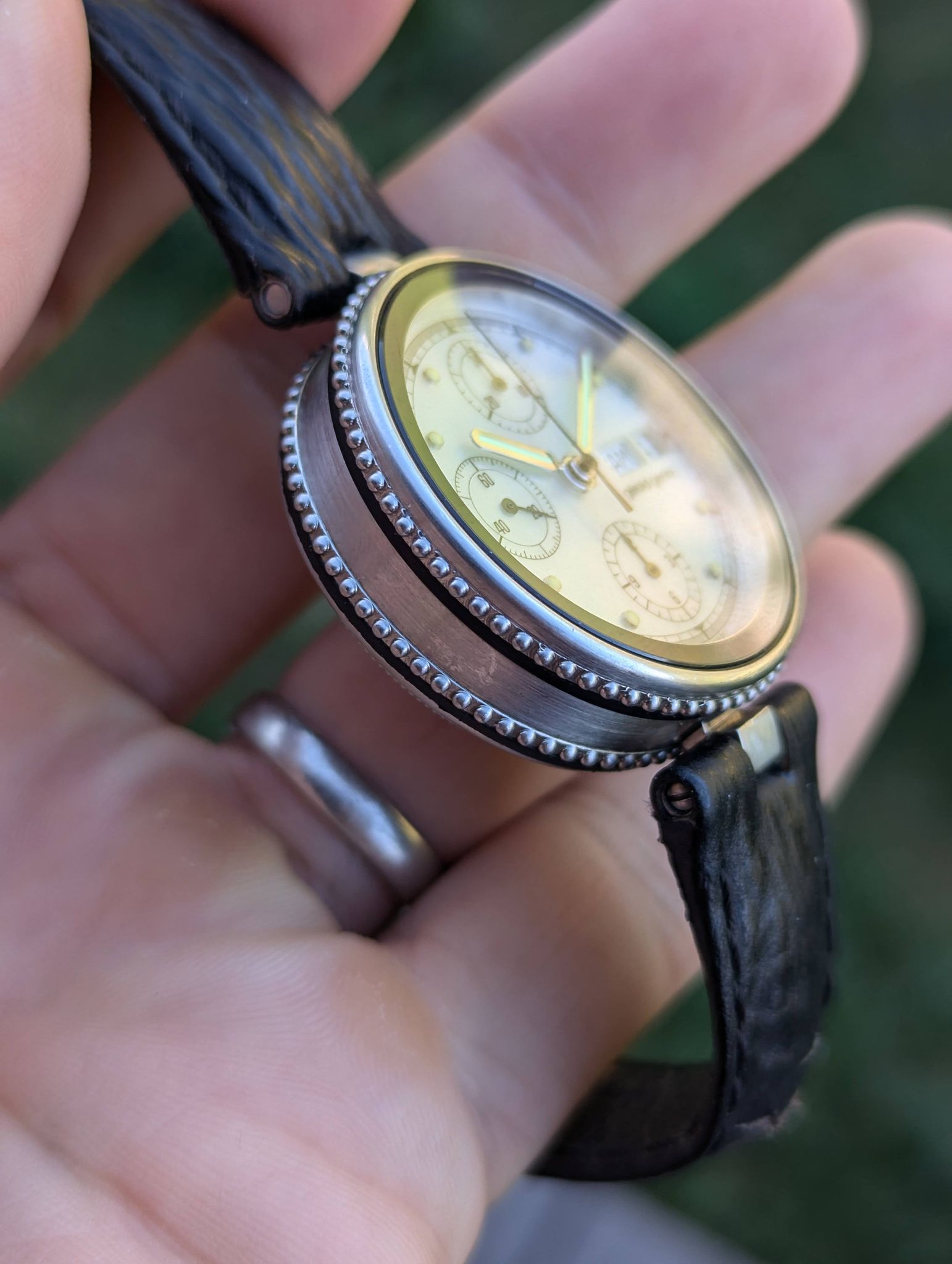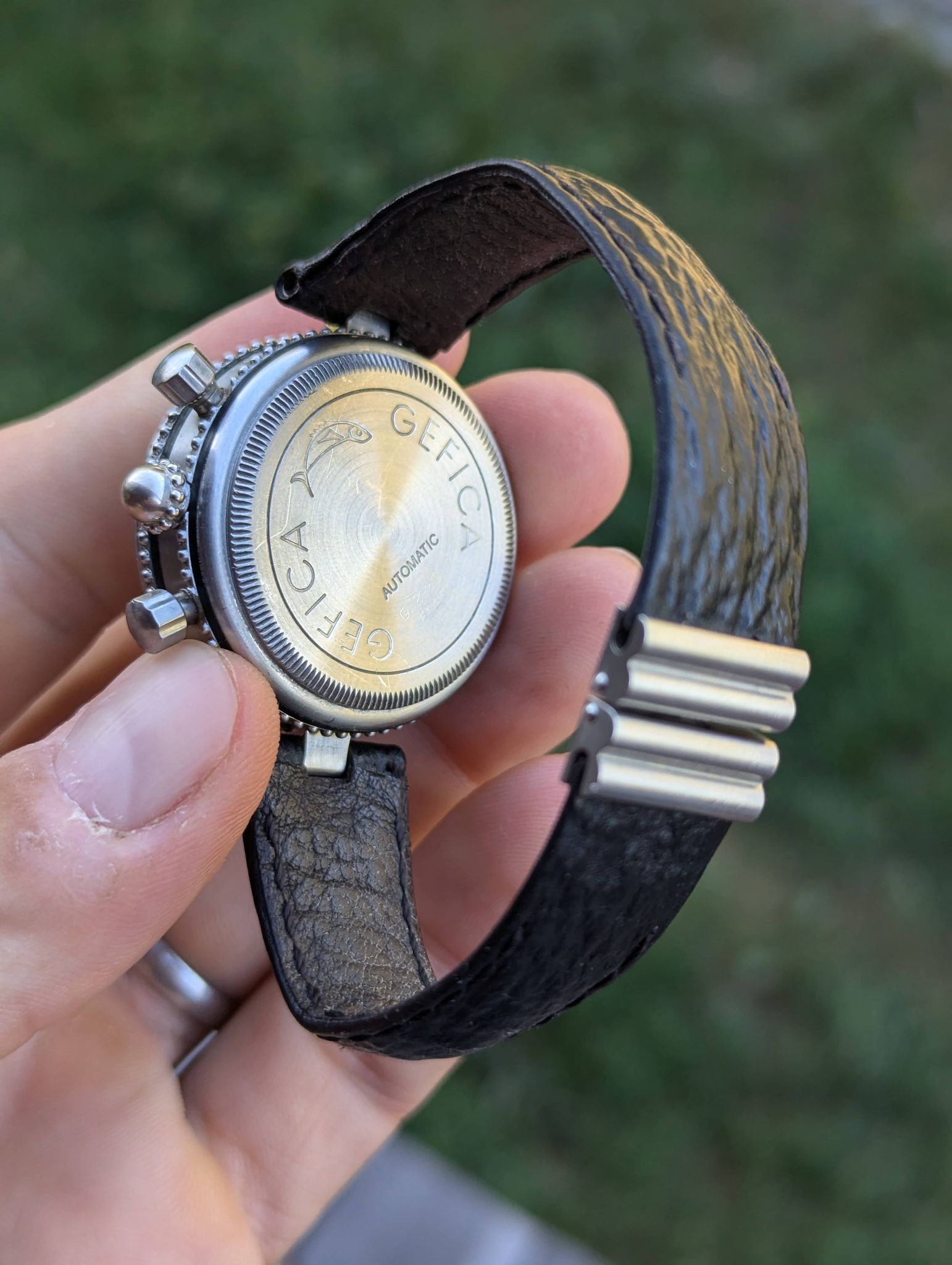 The Gefica was pioneering in its use of materials. It was one of the first watches to use bronze for the case, a material choice inspired by the need for durability and resistance to the elements.