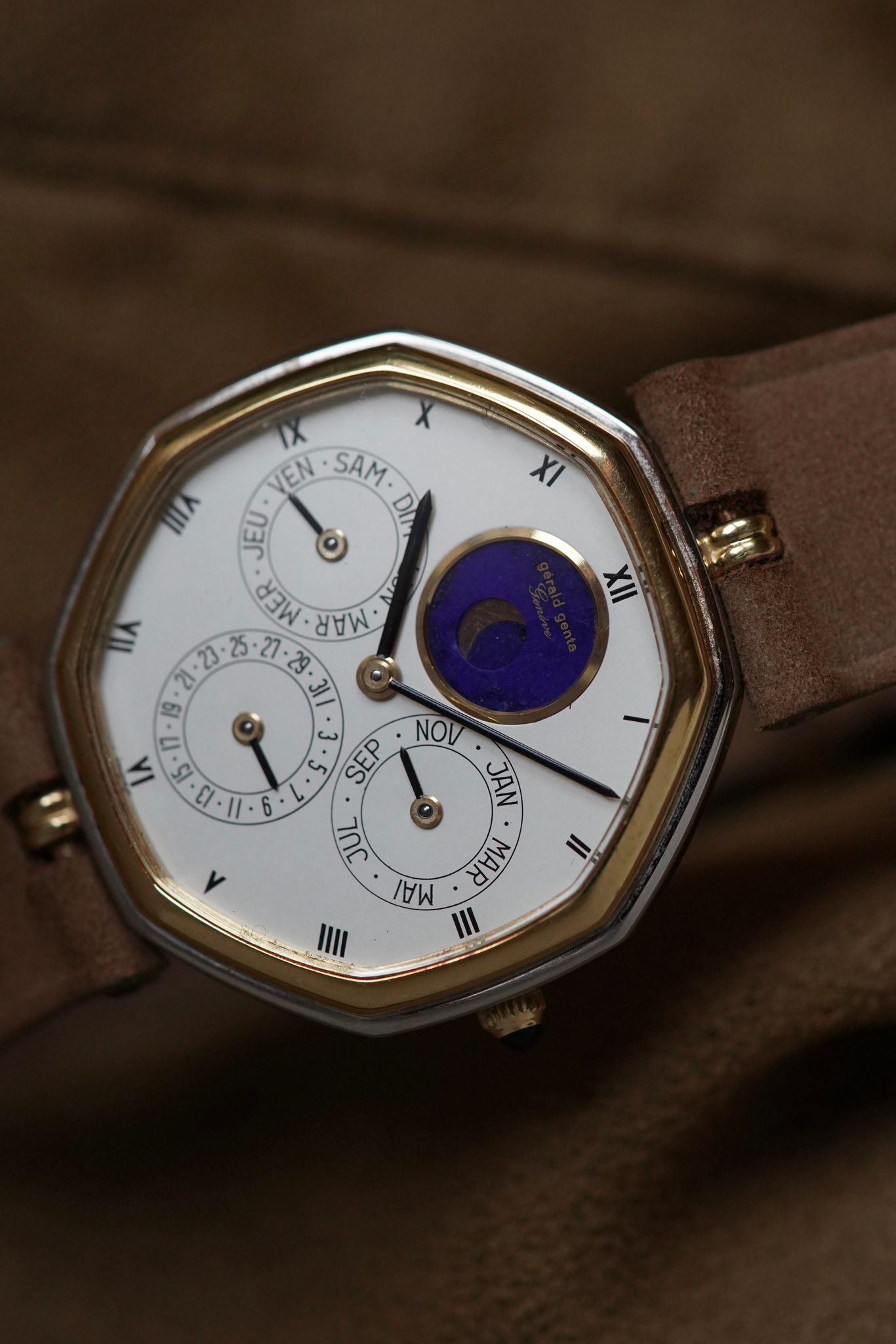 Gerald Genta at its finest - a rare, large automatic perpetaul calendar wristwatch in 18k yellow and white gold !