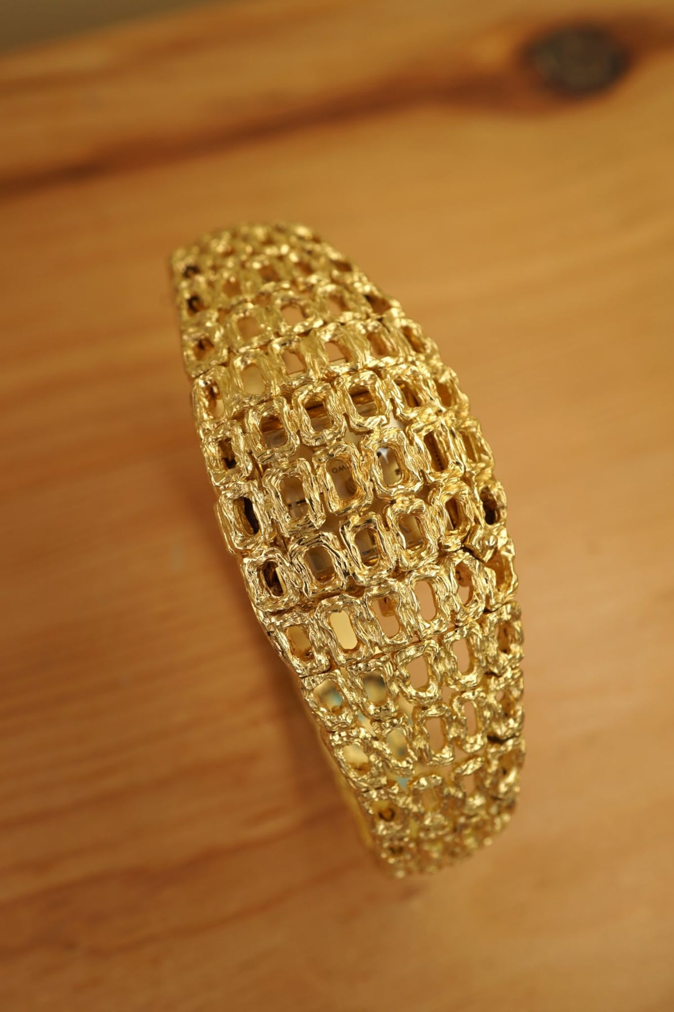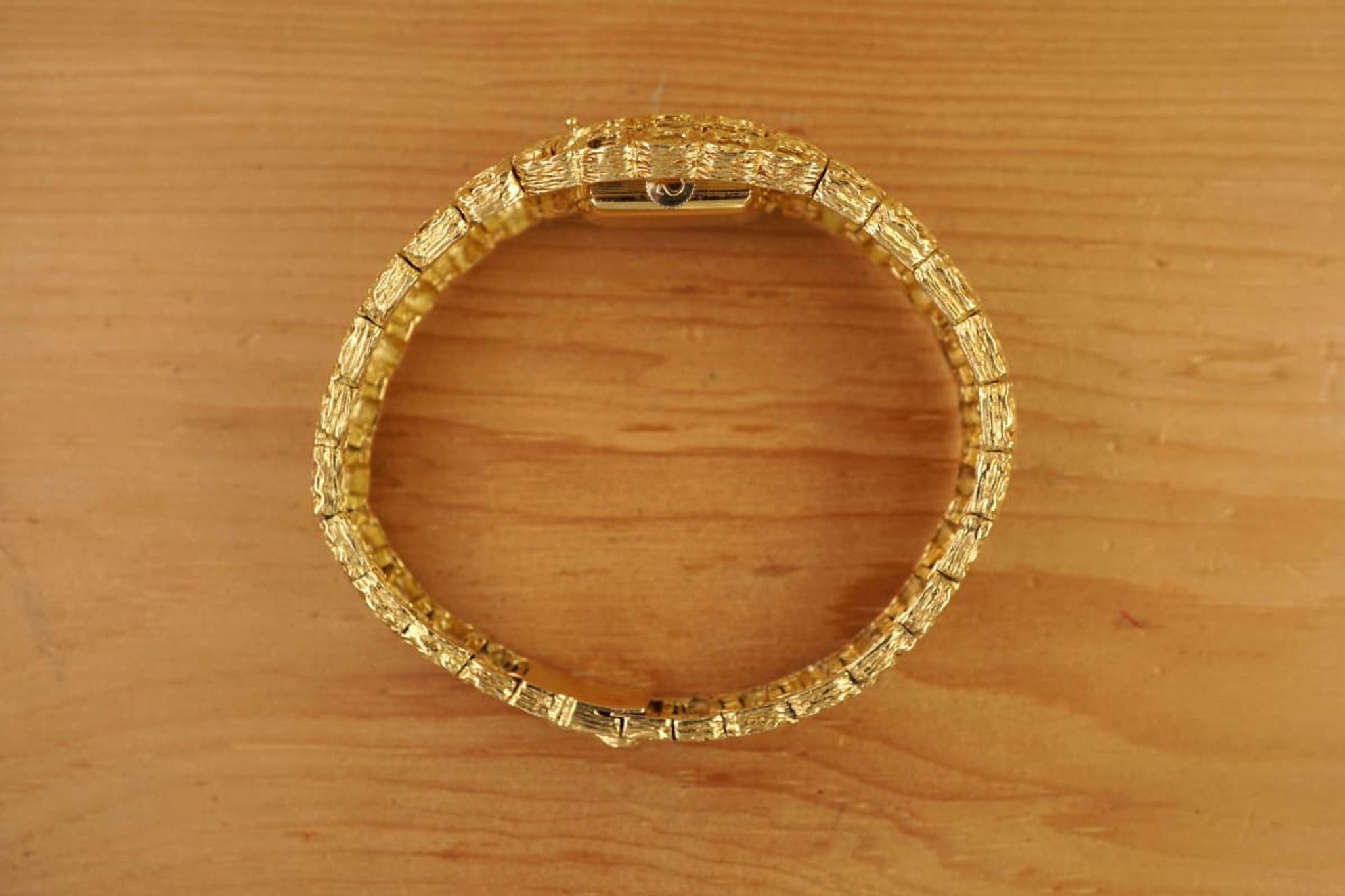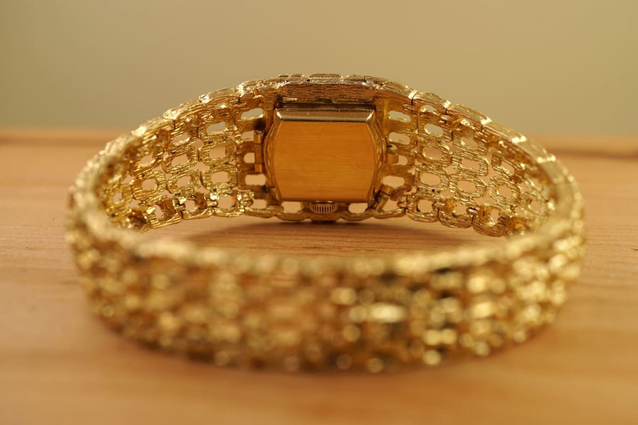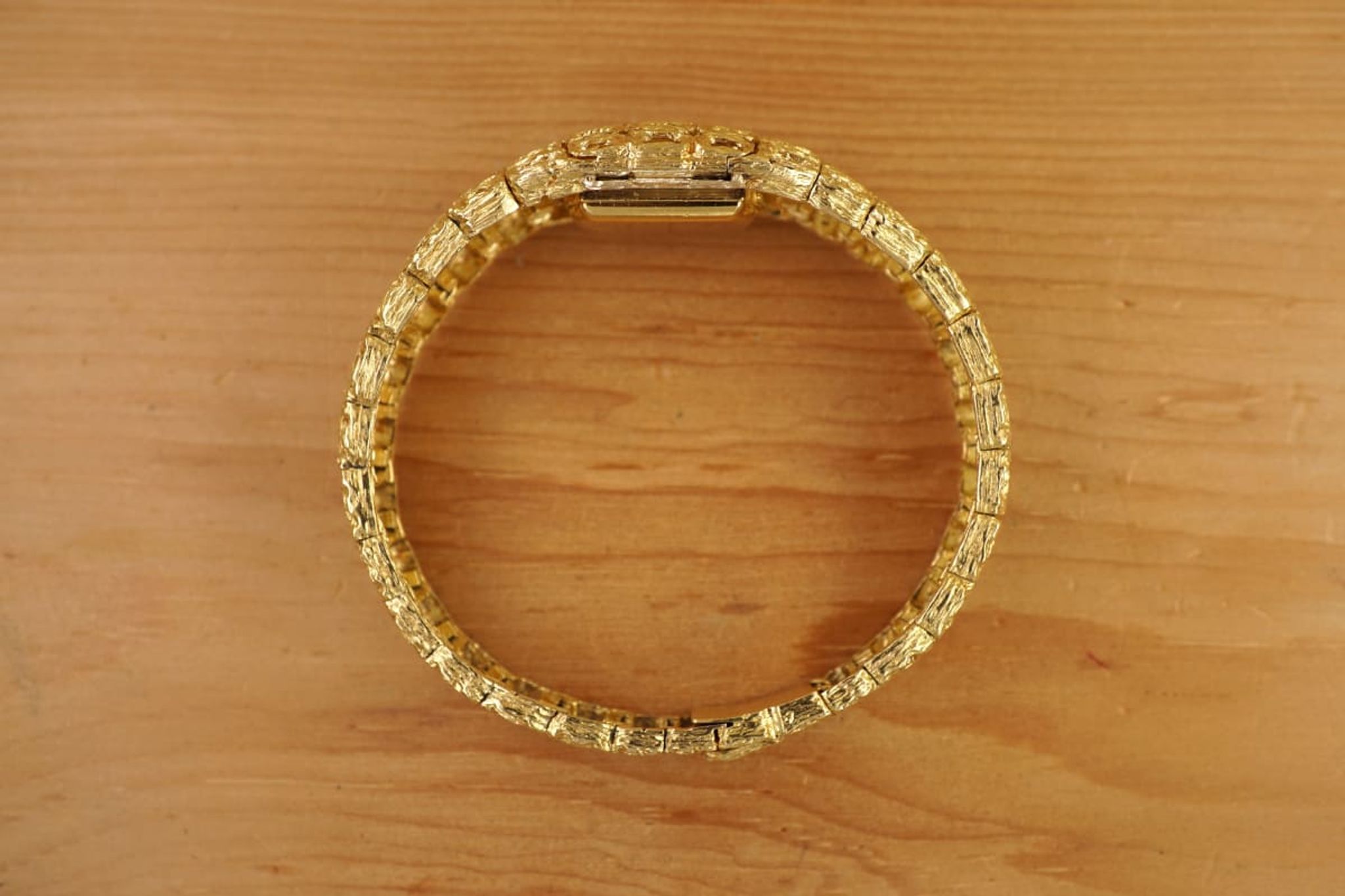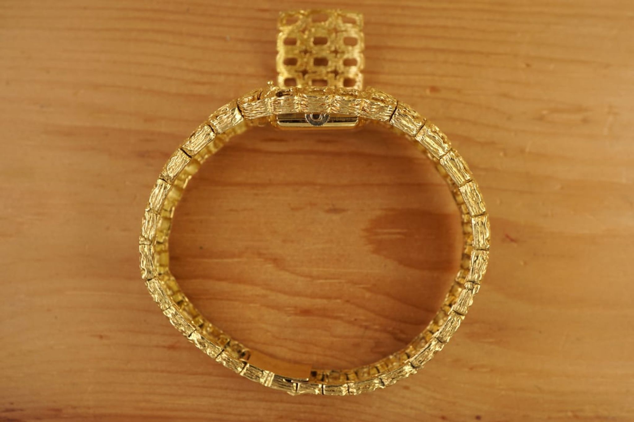 This design icon was made by Omega in all 18K-yellowgold in 1964 according to our books and research and the watch is still in excellent condition: movement serviced and running reliable and precise and the clasp and the lid closing both safely and strong. The current length of 16.5cm could be extended if necessary.
