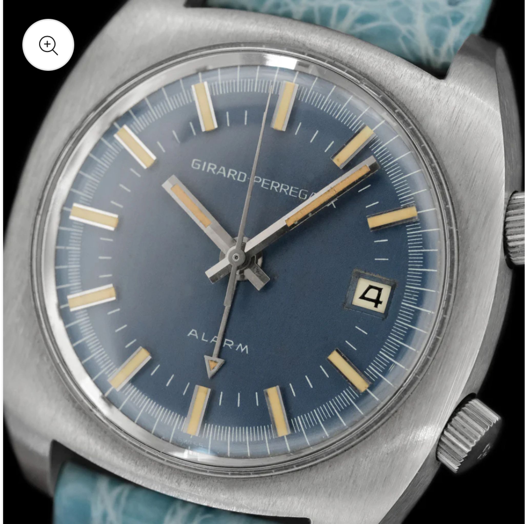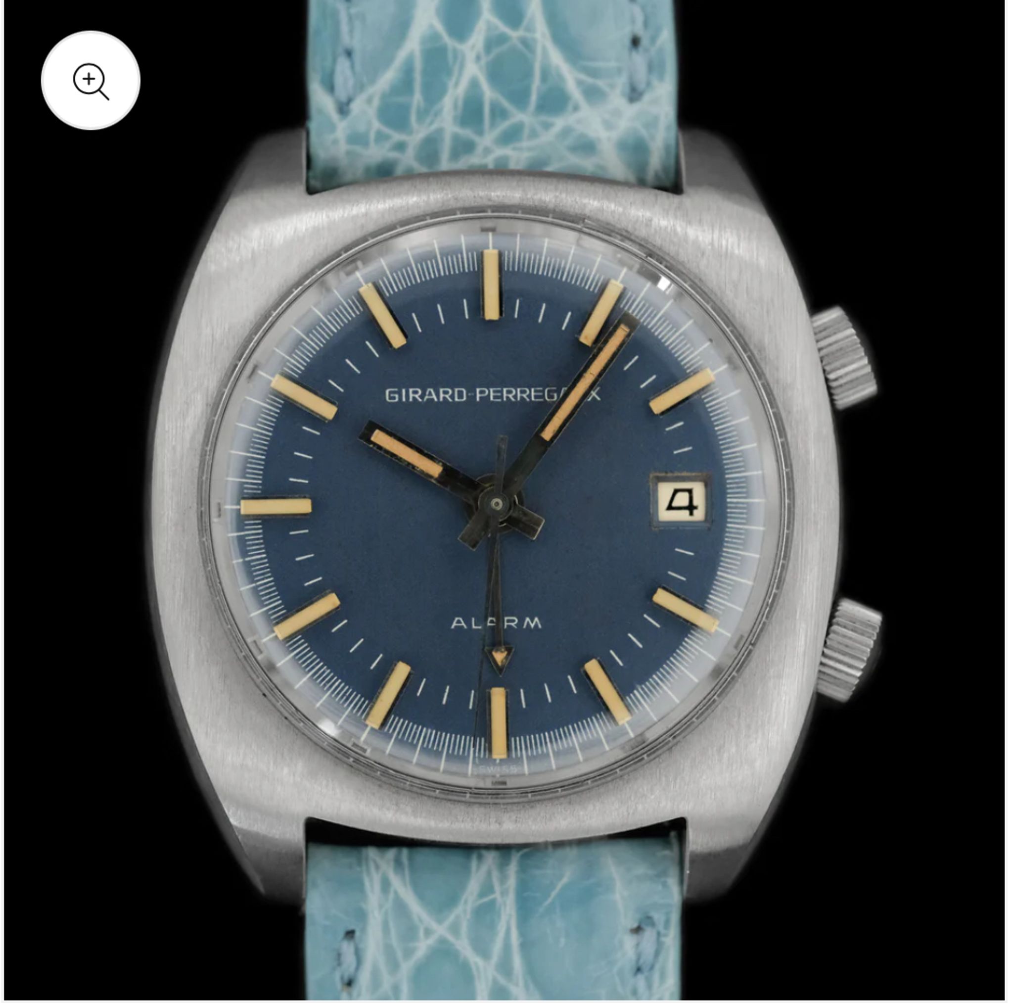 The Girard-Perregaux Alarm 9490 is a rare and distinctive vintage watch that reflects the bold spirit of 1970s design. Produced between 1972 and 1976 in just 350 units, it’s highly sought after by collectors. The cushion-shaped stainless steel case, a hallmark of the era, measures 35.5mm in diameter and 40mm lug-to-lug, with a thickness of about 13.5mm. Inside beats the manual-wind GP Caliber 112, based on the reliable A. Schild 1931. Its standout feature is the sharp “cricket” alarm, made possible by an inner case that enhances the hammer’s strike and ensures strong audibility.