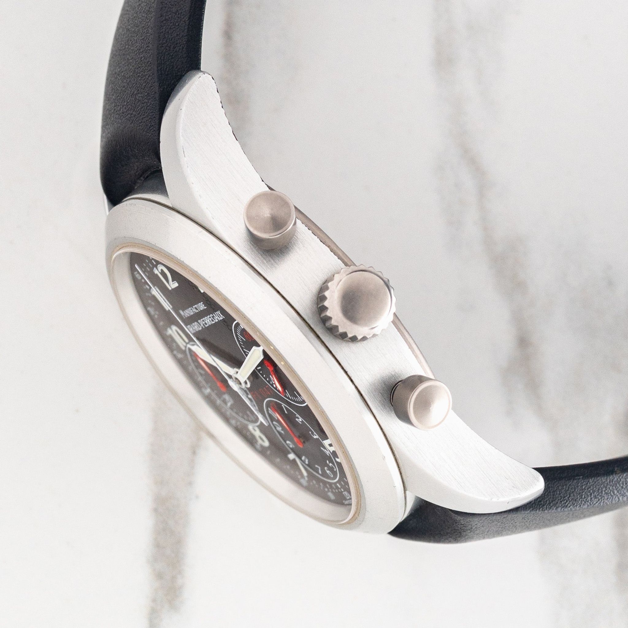 In the late '90s/early 2000s, Girard-Perregaux collaborated with Scuderia Ferrari to produce a refined line of co-branded watches. Unlike many modern Ferrari-themed timepieces, these models were understated—some didn’t even feature visible Ferrari logos. Among them were the GP F1-047 and F1-048, both referenced as 4955. Named after Ferrari F1 engine models, the F1-047 featured an aluminum case—rumored to be cast from a used Ferrari engine block—and was produced in limited numbers, estimated between 100 and 200 pieces. This version is believed to be a prototype for the subsequent series. The F1-048 which followed features a titanium case and a run of 1,000 numbered units. Both models belong to the third generation of “Pour Ferrari” watches and are powered by Girard-Perregaux’s GP 2280 movement.