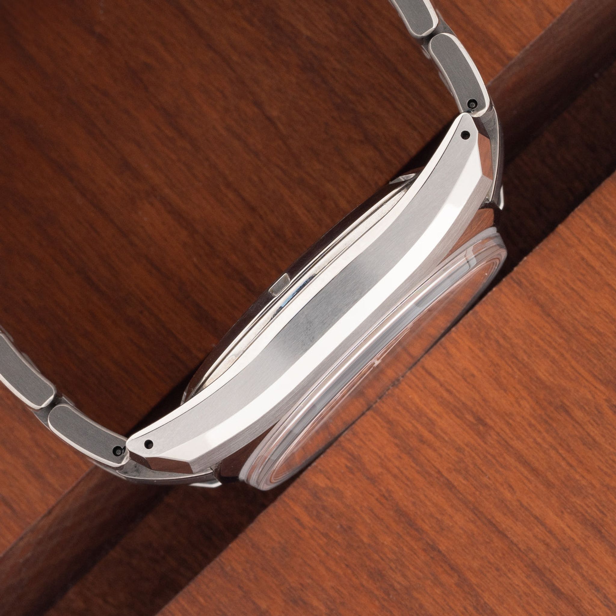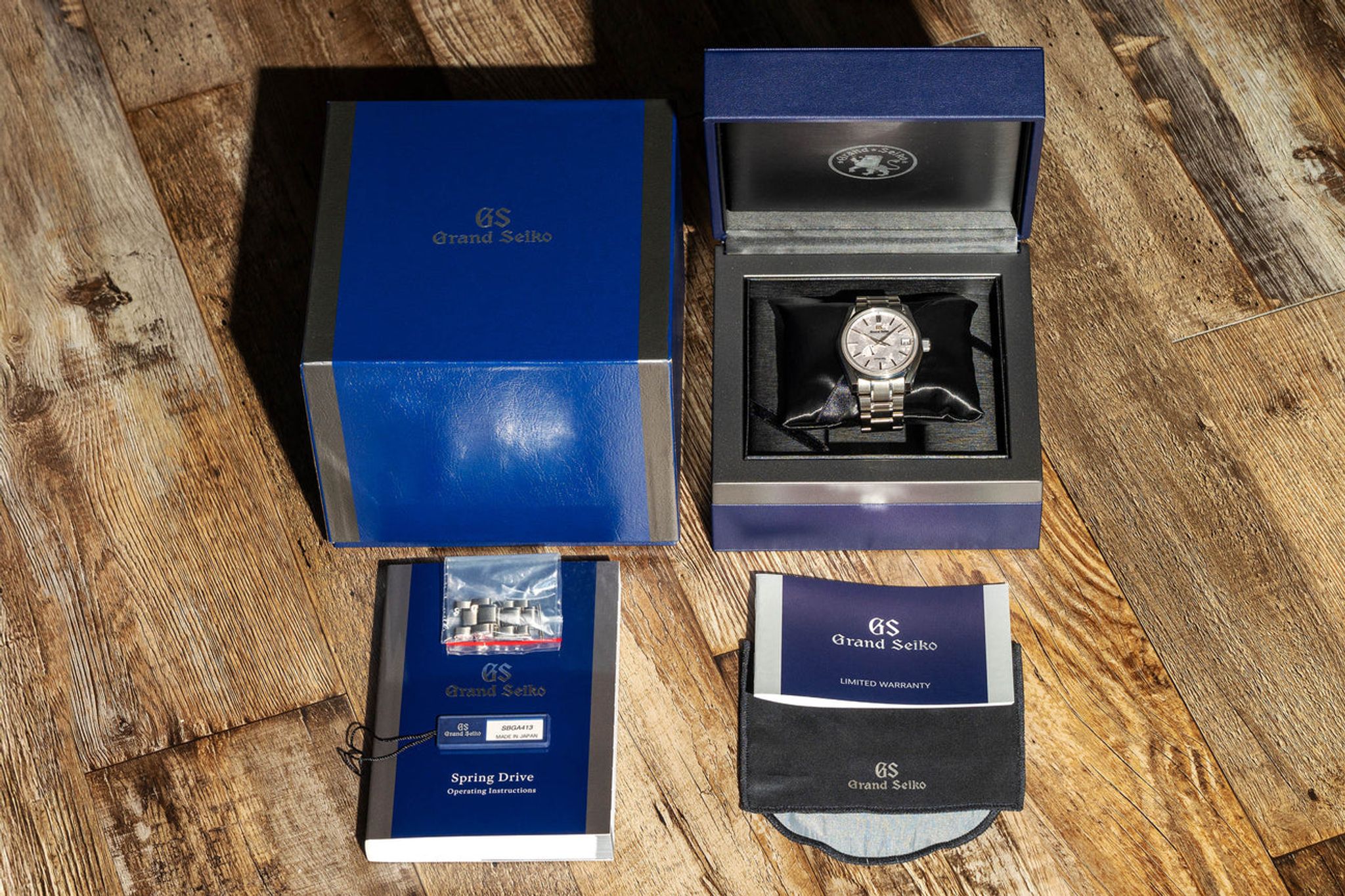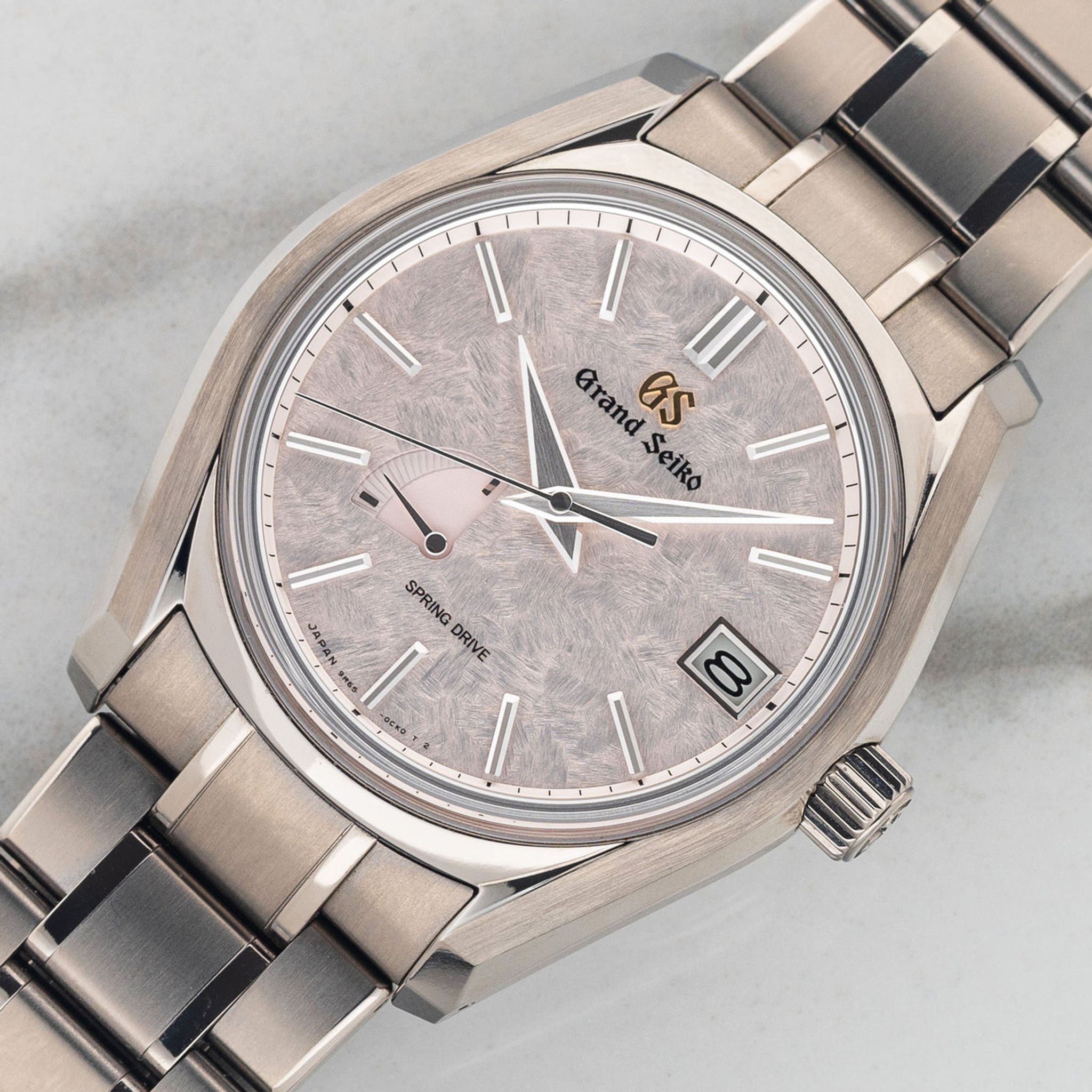 The ref. SBGA413 comes from their 2019 Heritage Collection release and is arguably the standout favorite of the four pieces that came out at that time. The textured dial is inspired by the pink cherry blossoms of spring in Japan and it is truly breathtaking not only to the naked eye but also under a loupe. The dial takes on different moods depending on light conditions and will appear more pink in the morning or at sunset, while more pearly white mid day. The bezel-less case design is also unique to GS having pulled inspiration from their vintage catalog with the 62GS. It is highly modern and in titanium helps the watch occupy the worlds of sport and dress a the same time. This example comes as a complete set and has light wear. For anyone looking for a high quality daily driver at a fair price, we can't think of any better value in today's market.
