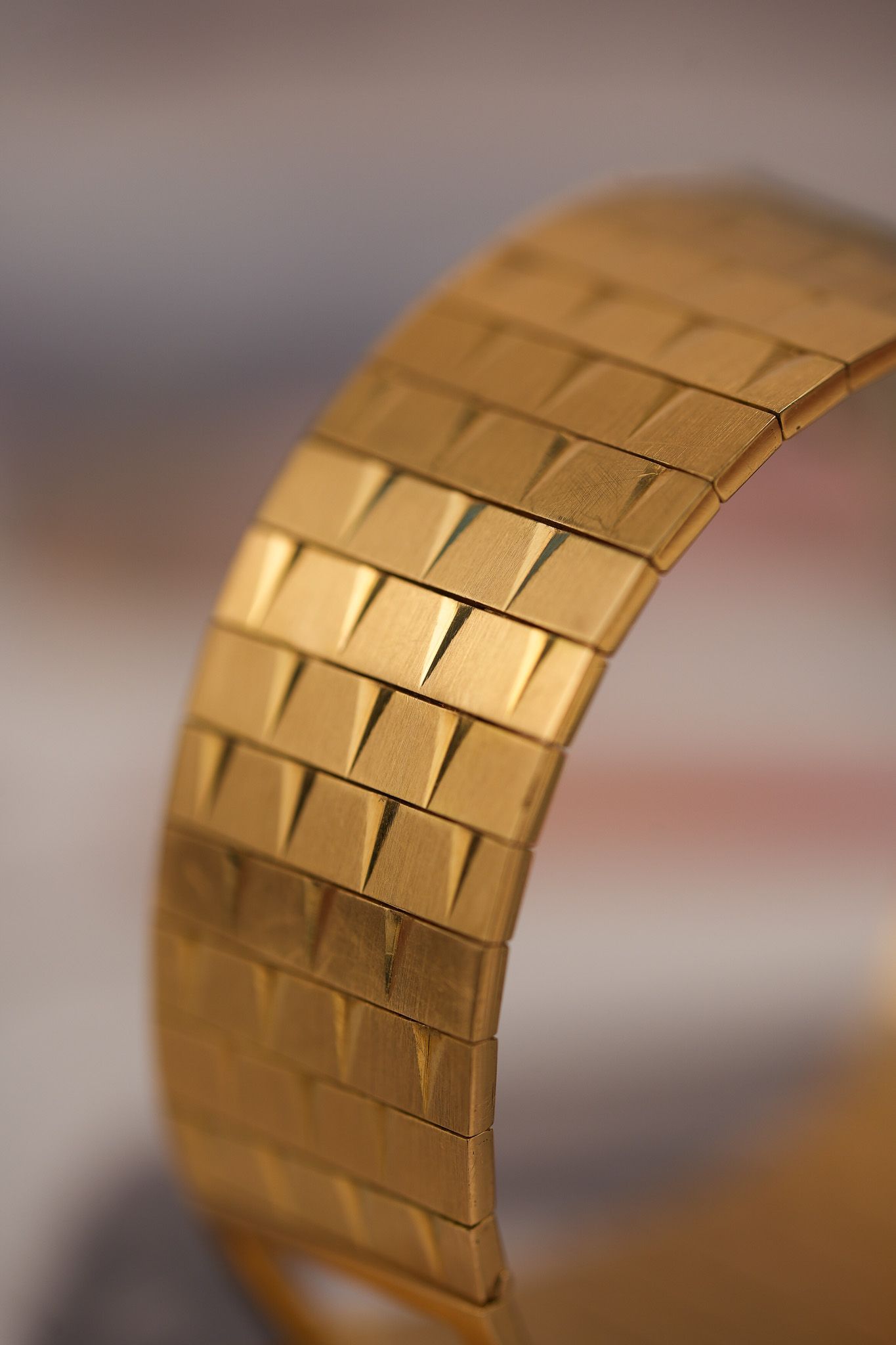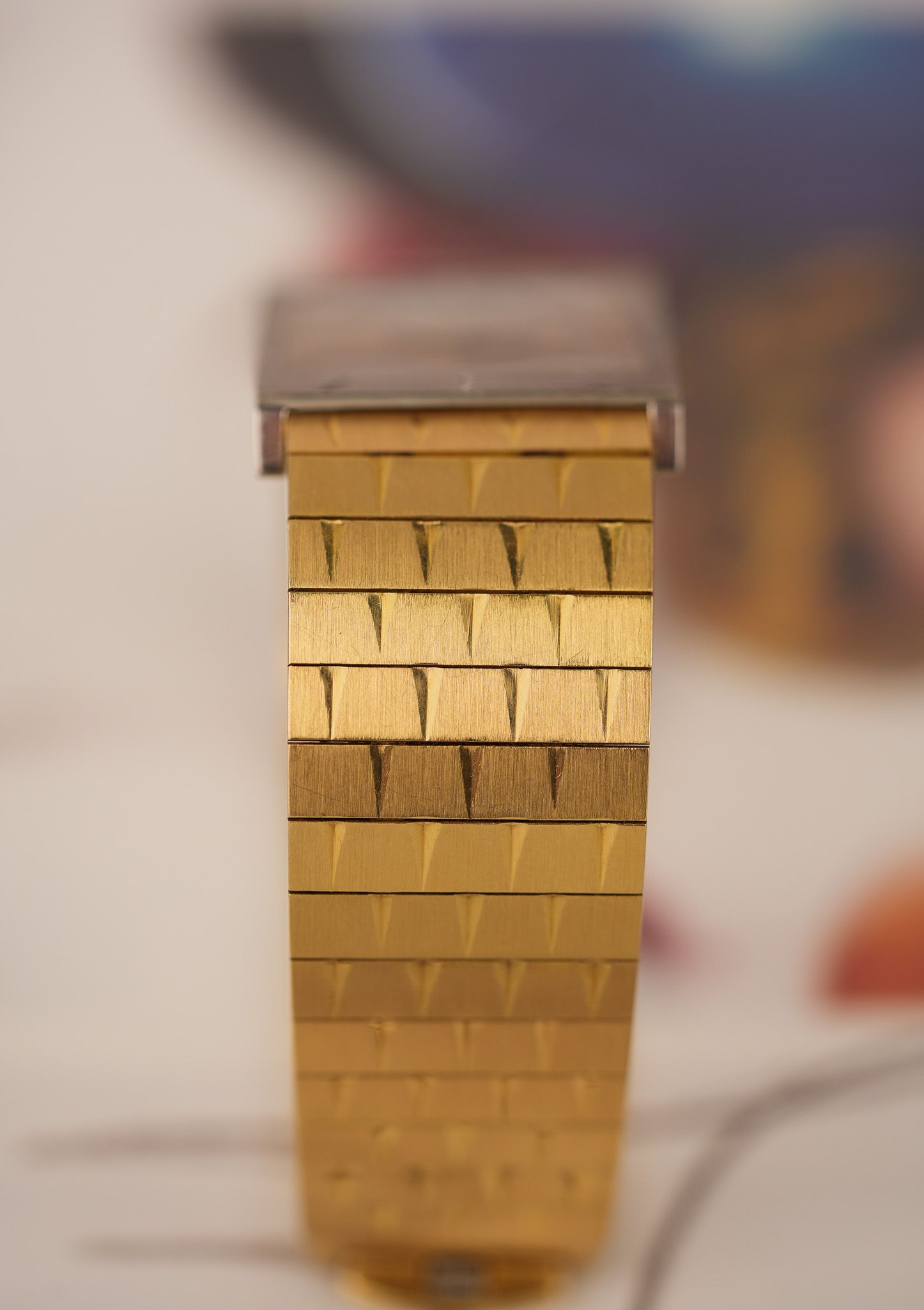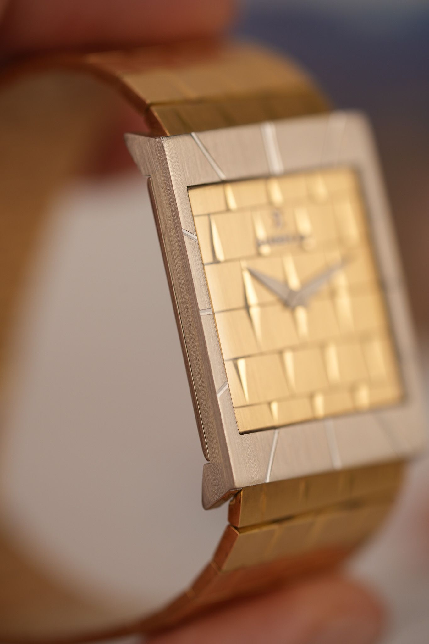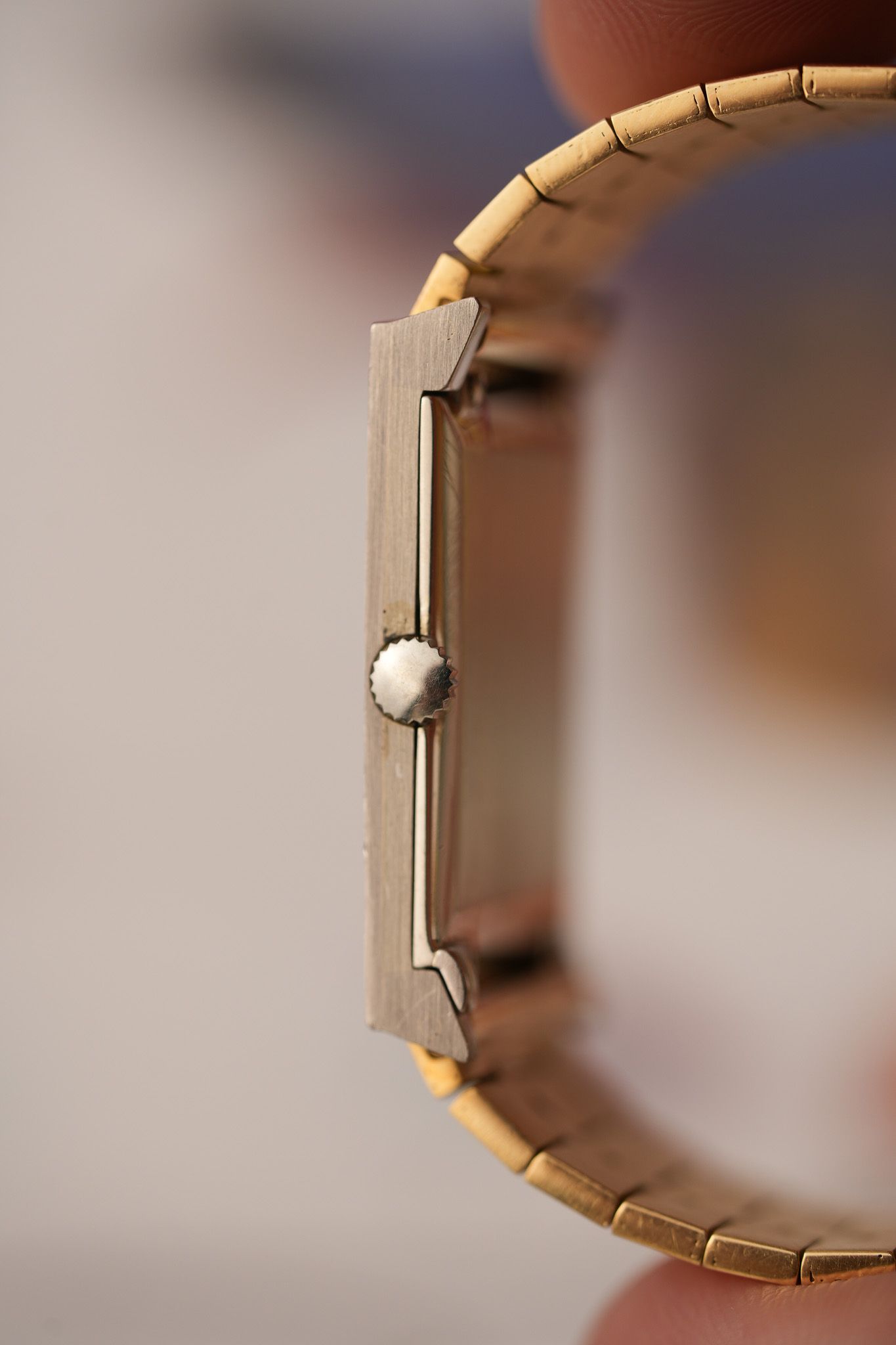 This angular 1960s Gubelin earned its nickname—The Brutalist—thanks to its unapologetically sharp geometry and cold-blooded precision. Crafted in 18k yellow gold with an 18k white gold bezel, it doesn’t just wear architecture—it is architecture. The entire design feels like it was pulled straight out of a modernist museum and shrunk to wrist-size.