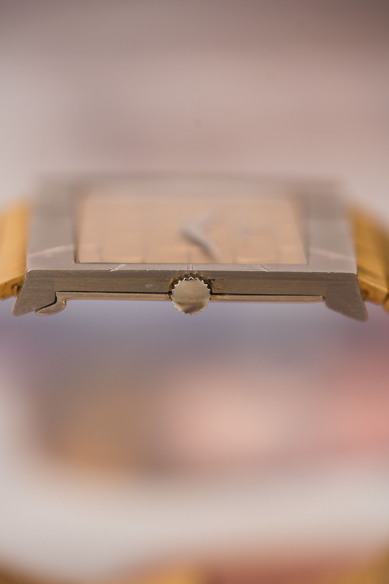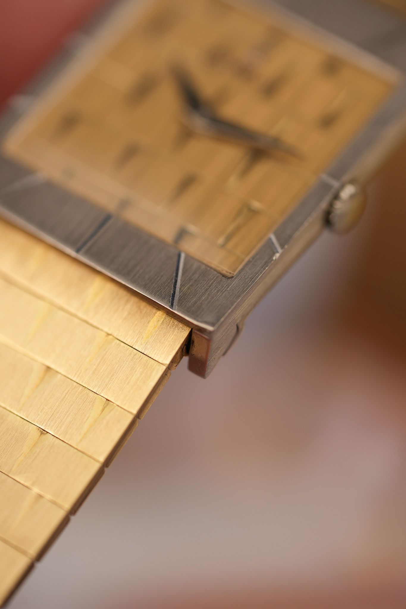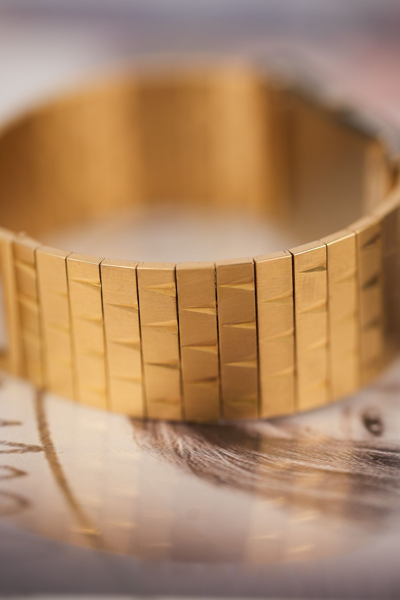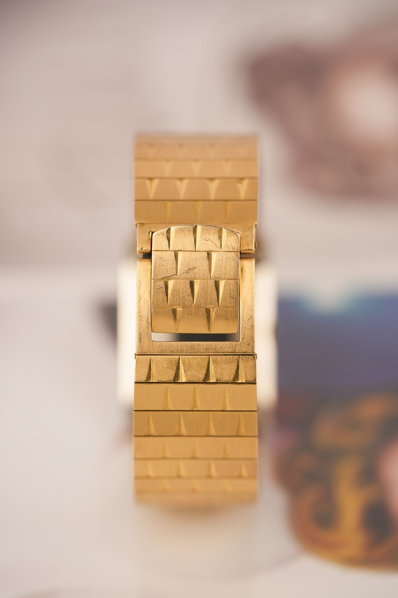 This angular 1960s Gubelin earned its nickname—The Brutalist—thanks to its unapologetically sharp geometry and cold-blooded precision. Crafted in 18k yellow gold with an 18k white gold bezel, it doesn’t just wear architecture—it is architecture. The entire design feels like it was pulled straight out of a modernist museum and shrunk to wrist-size.