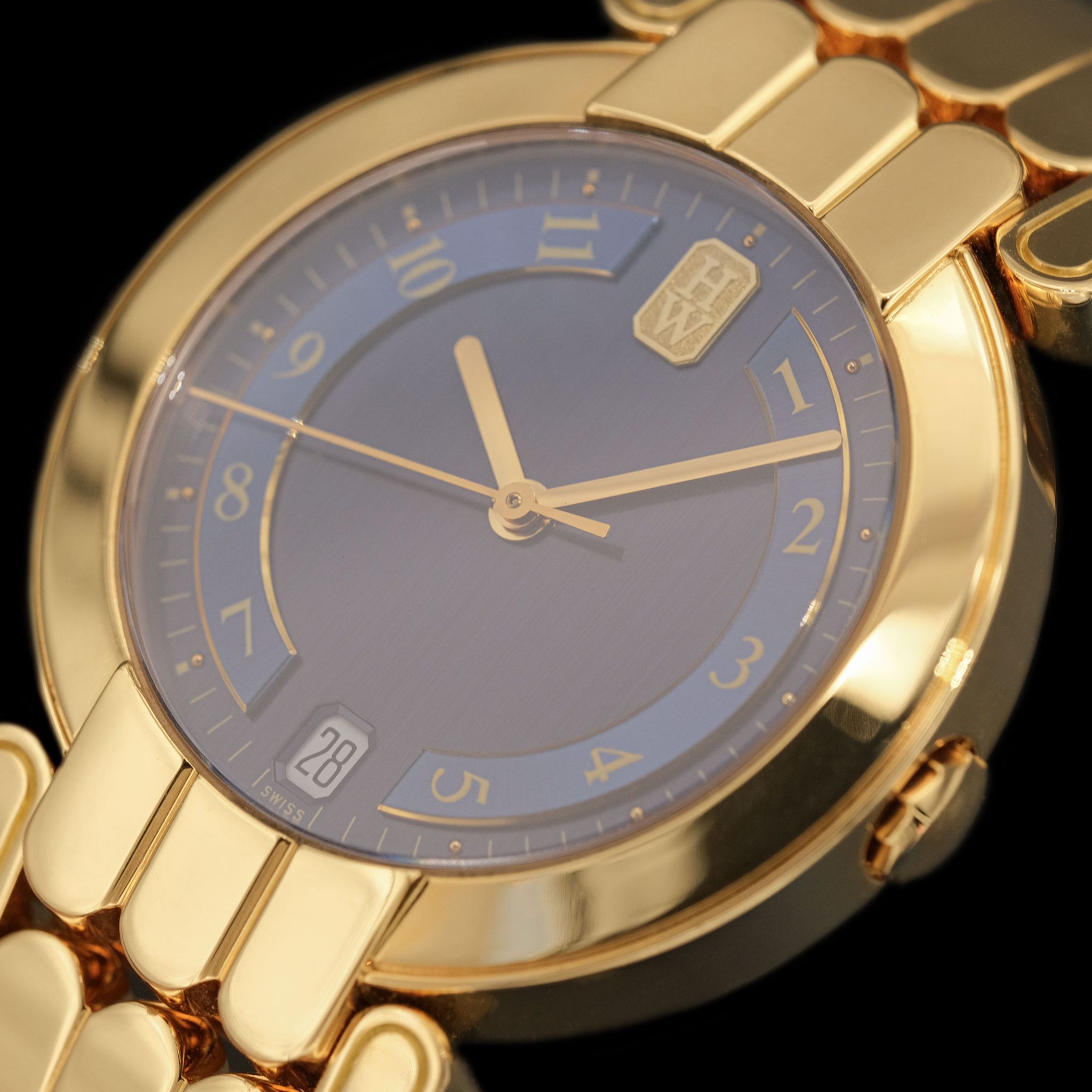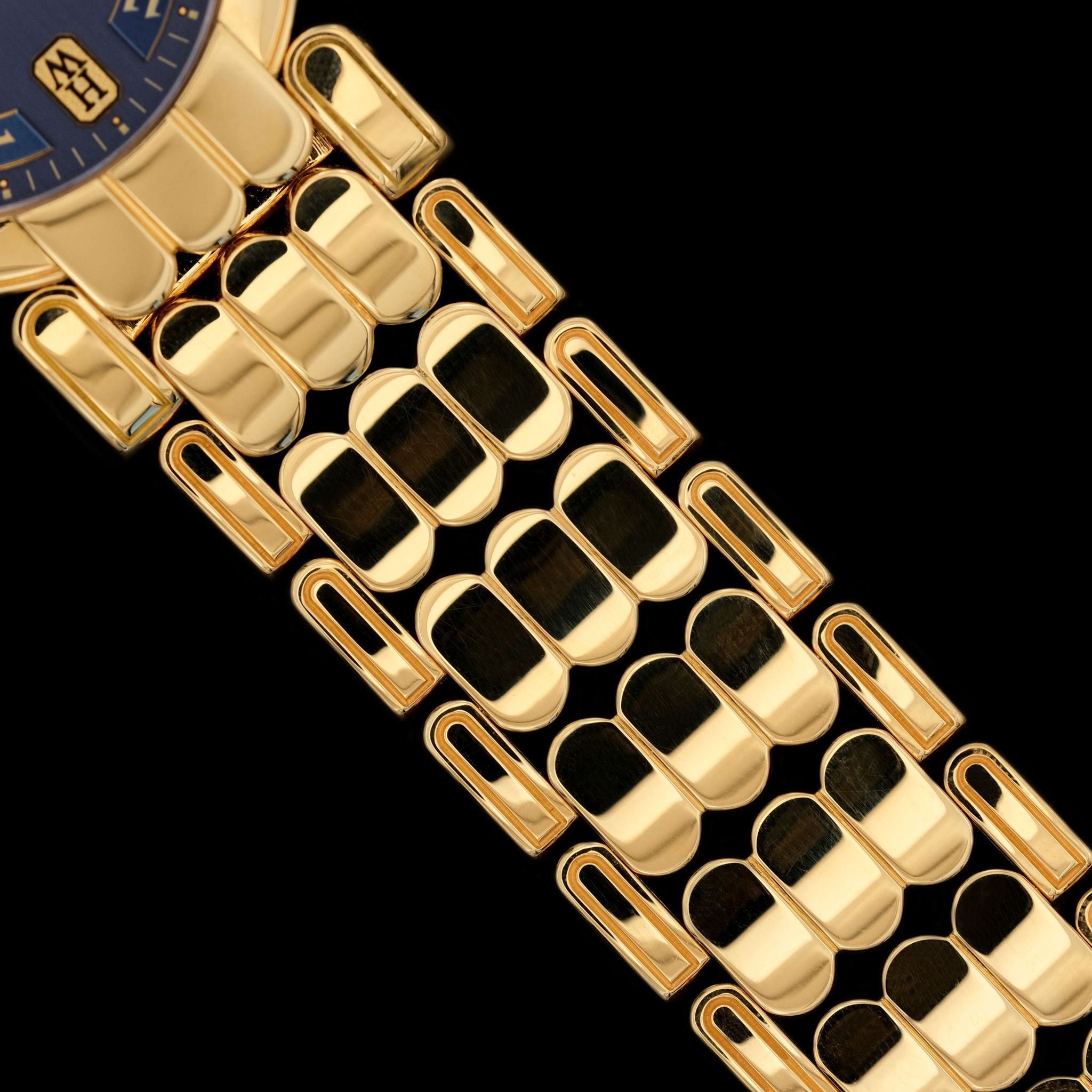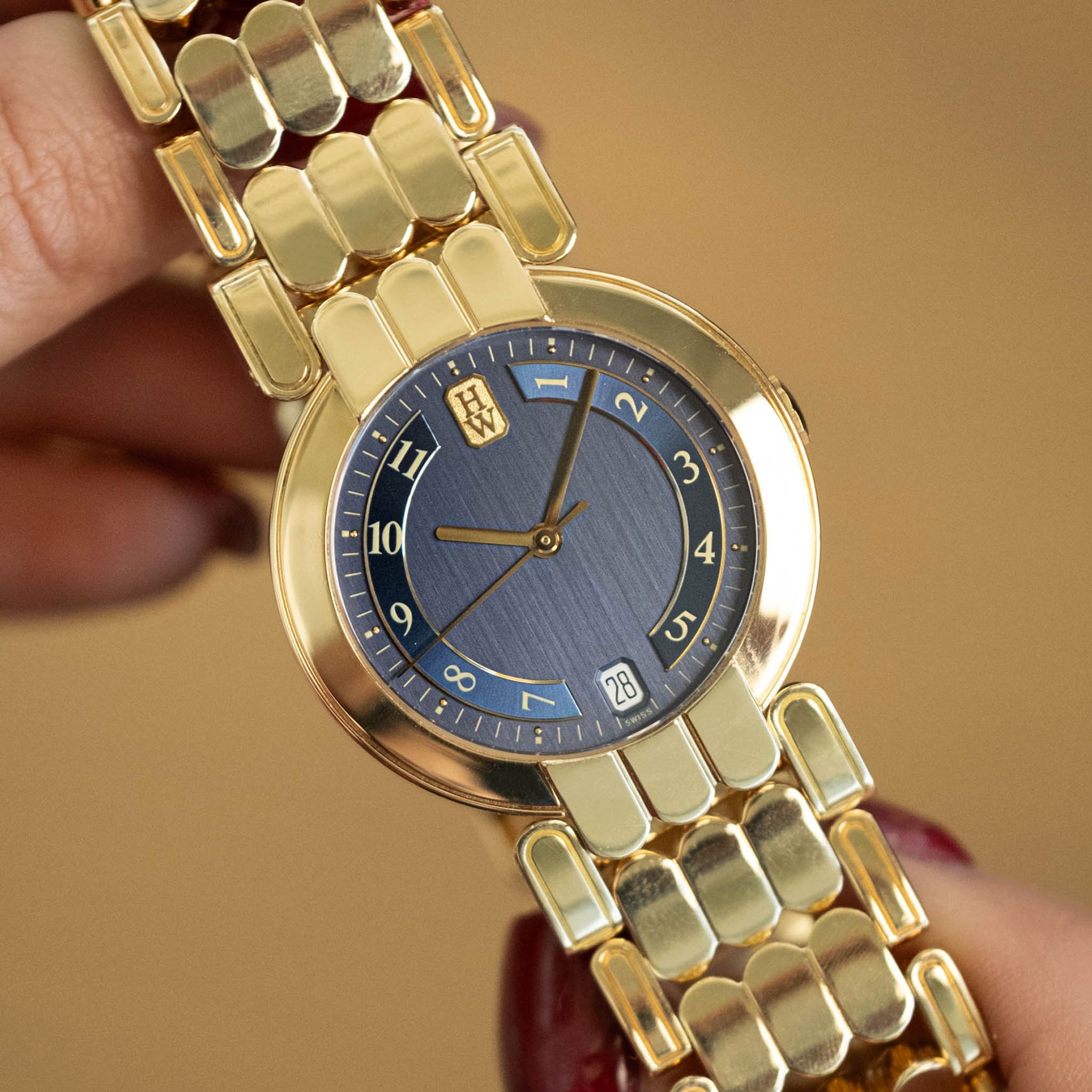 The Premier was the first watch collection introduced by Harry Winston in 1989 and is now an iconic signature of the House, this timepiece has a very particular heavy construction weighting 177 grams probably because of the beefy fish scale-like bracelet, it also has a nice two tone metallic blue dial.