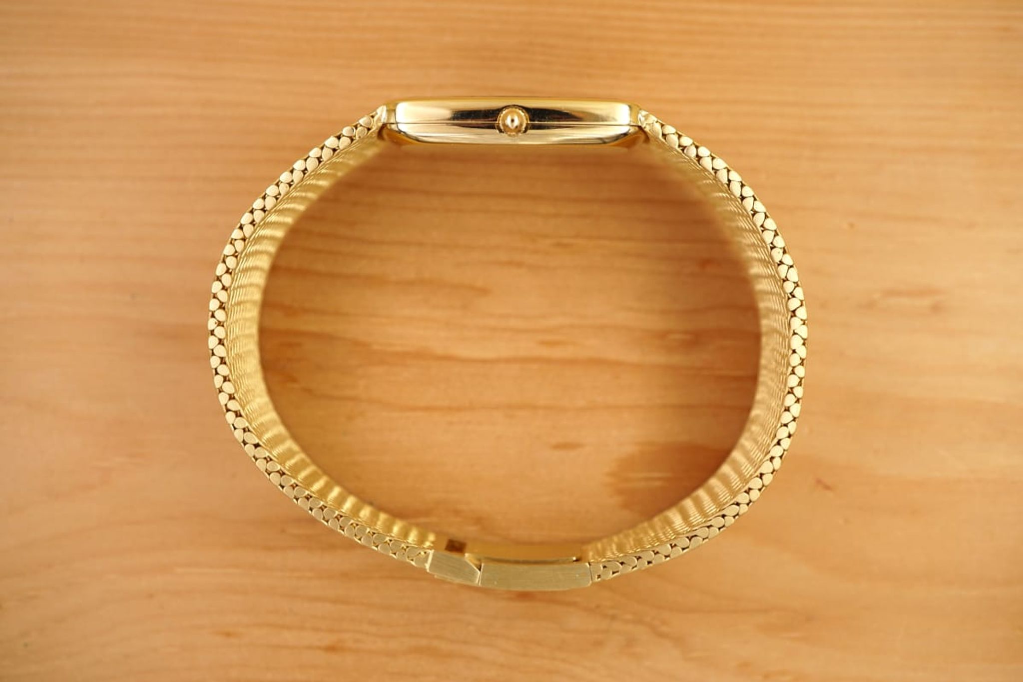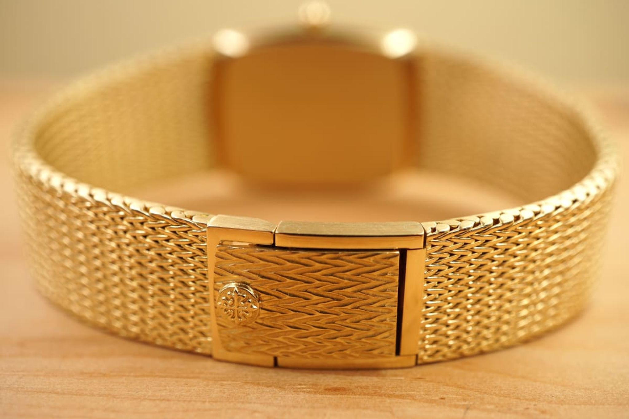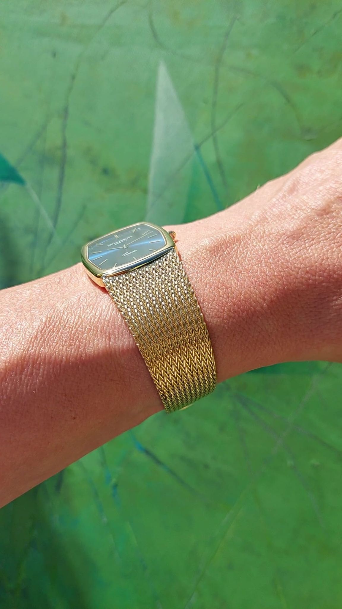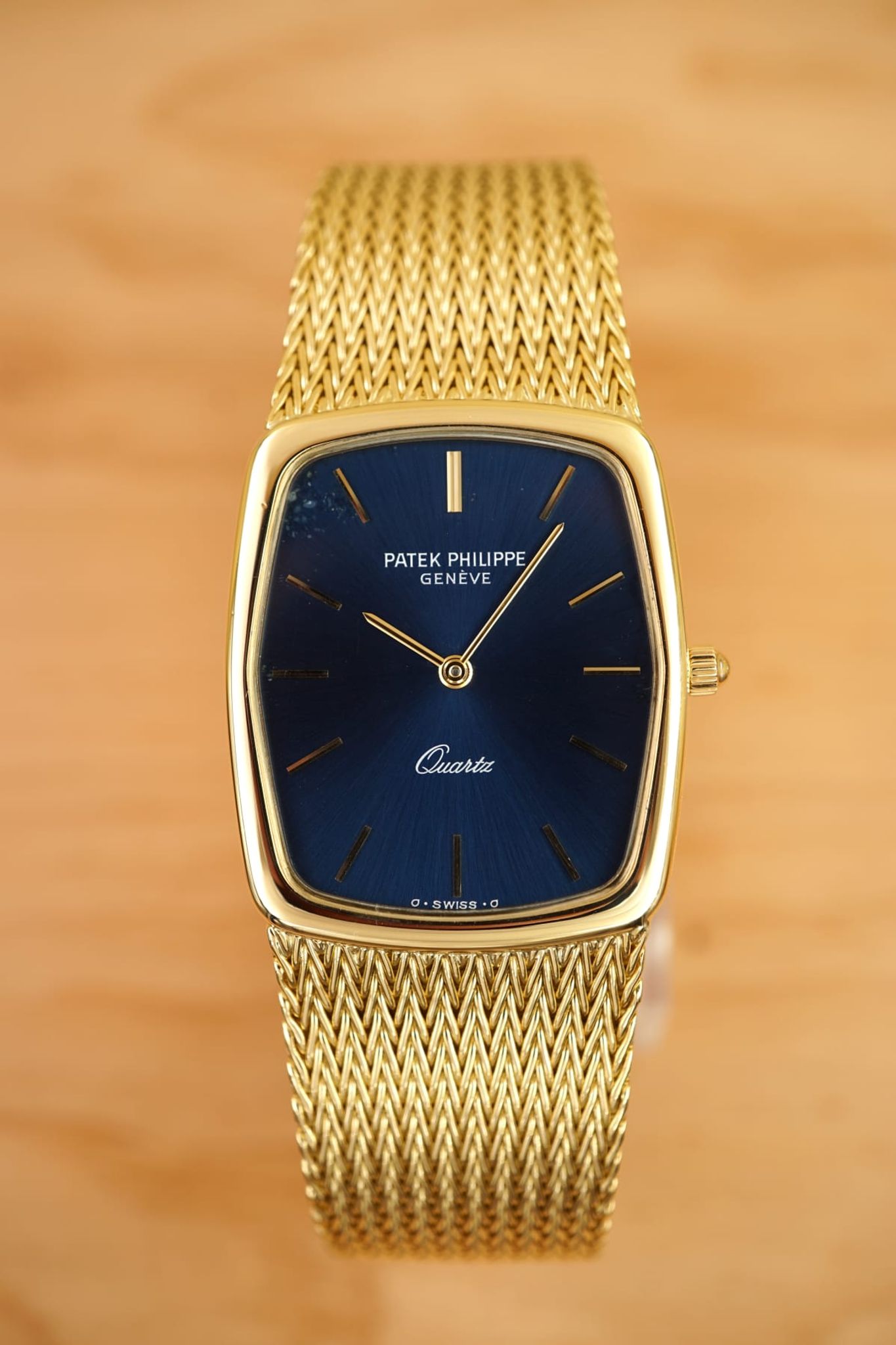 Elegant vintage '80s Patek Ellipse: hexagonal and with the finest integrated bracelet (fitting a >190mm-wrist). And it is QUARTZ, yes. And it says so boldly on the dial, yes. And why not? At the moment after Watches & Wonders 2024 there is simply nothing more avant-garde than Patek-Quartz: We were surprised to see the presentation of the new ref5269 this year coming with a quartz-movement -- but yes, it is a surprising but it is a correct and surprisingly good and brave move by the reference brand in horology: to offer a low-maintenance, hassle free, always running and always precise sporty daily wearer for the conservative mind that values punctuality on the spot.