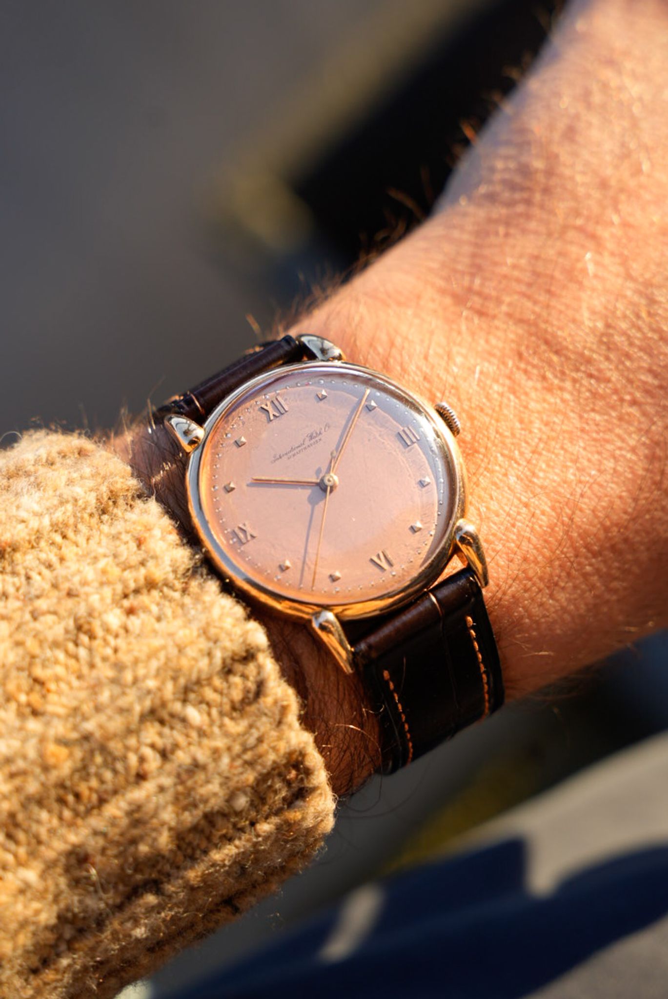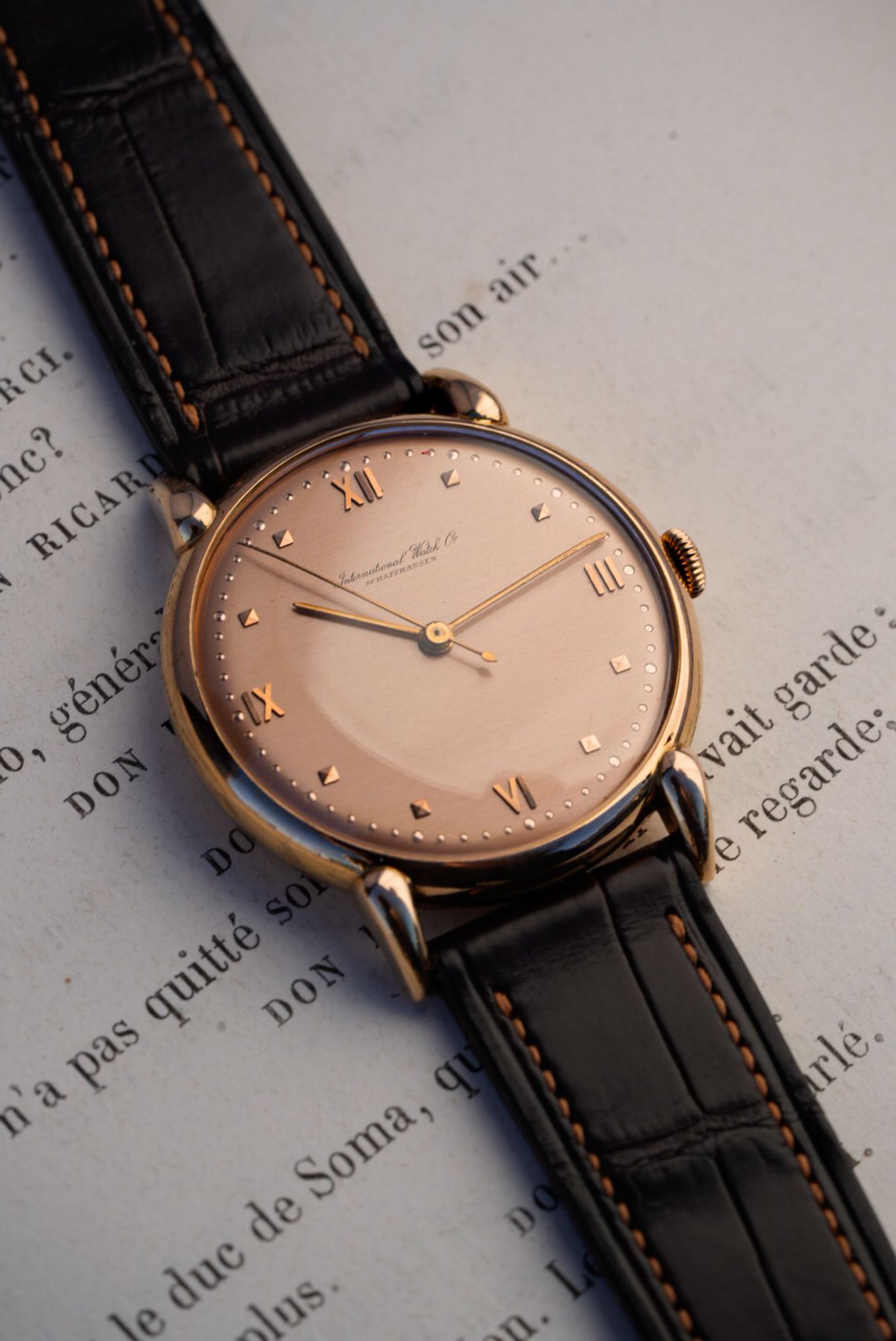 This IWC timepiece from the 1950s is a classic example of mid-century watchmaking, combining elegant design with high-quality craftsmanship.