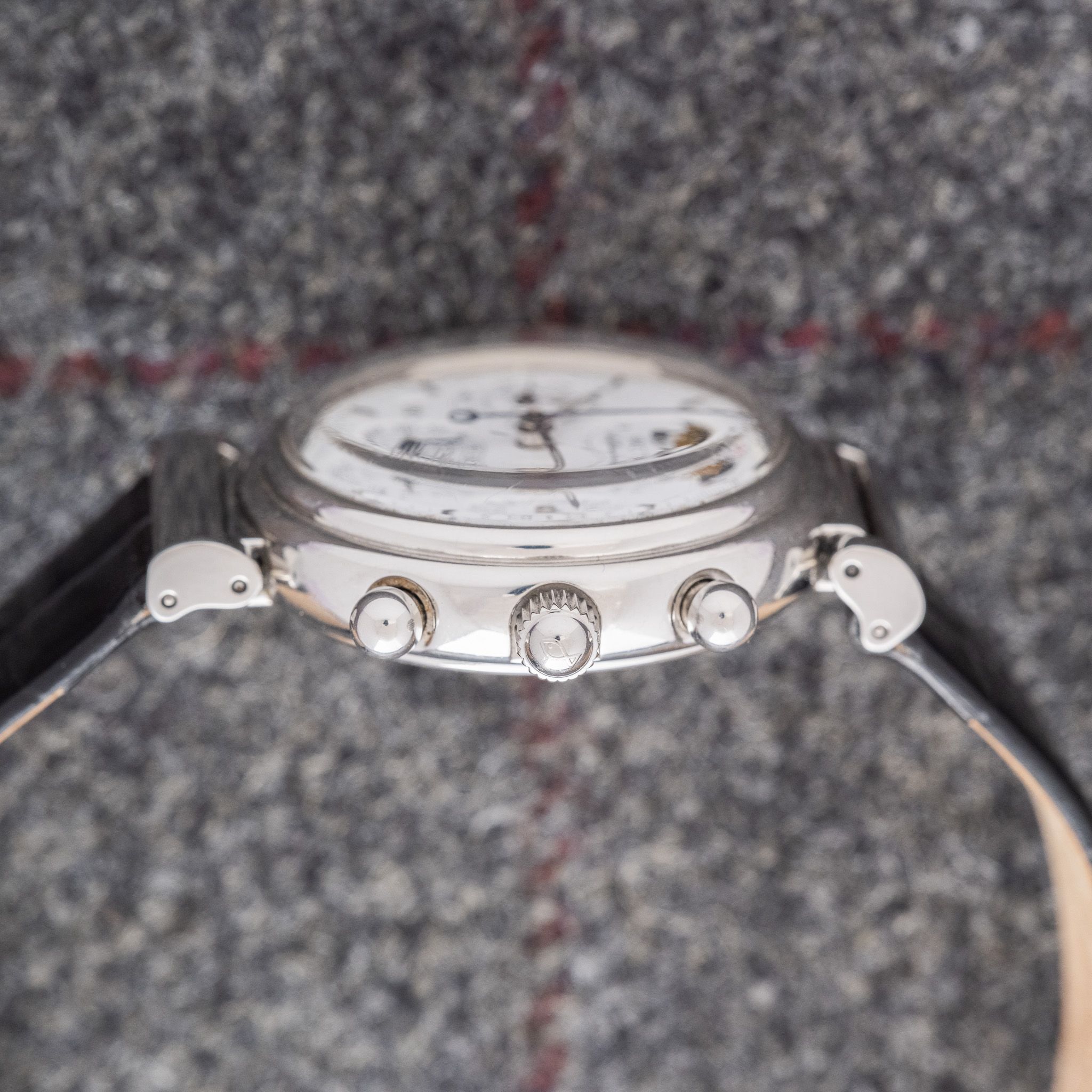 Dial: The dial is a very uncommon white example. White dials are mainly seen with precious metal perpetual calendars. The majority of steel examples are black dial examples. Only a handful ever hit the market with white dials.