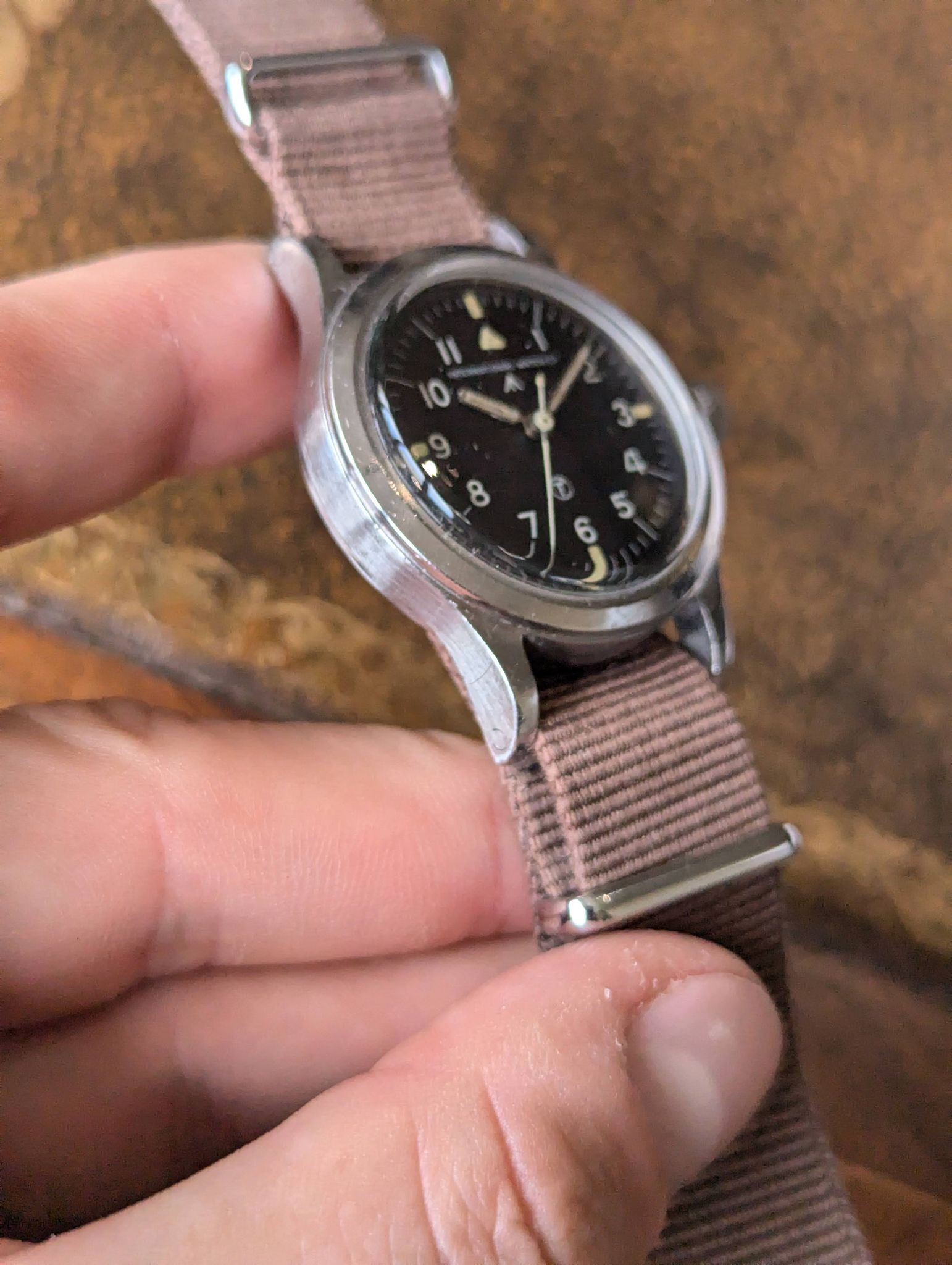 This model comes with a caseback probably replaced during a service in the RAF's workshops. Indeed it bears very rare markings normally used for camera watches. A cool piece, available at a friendly cost.