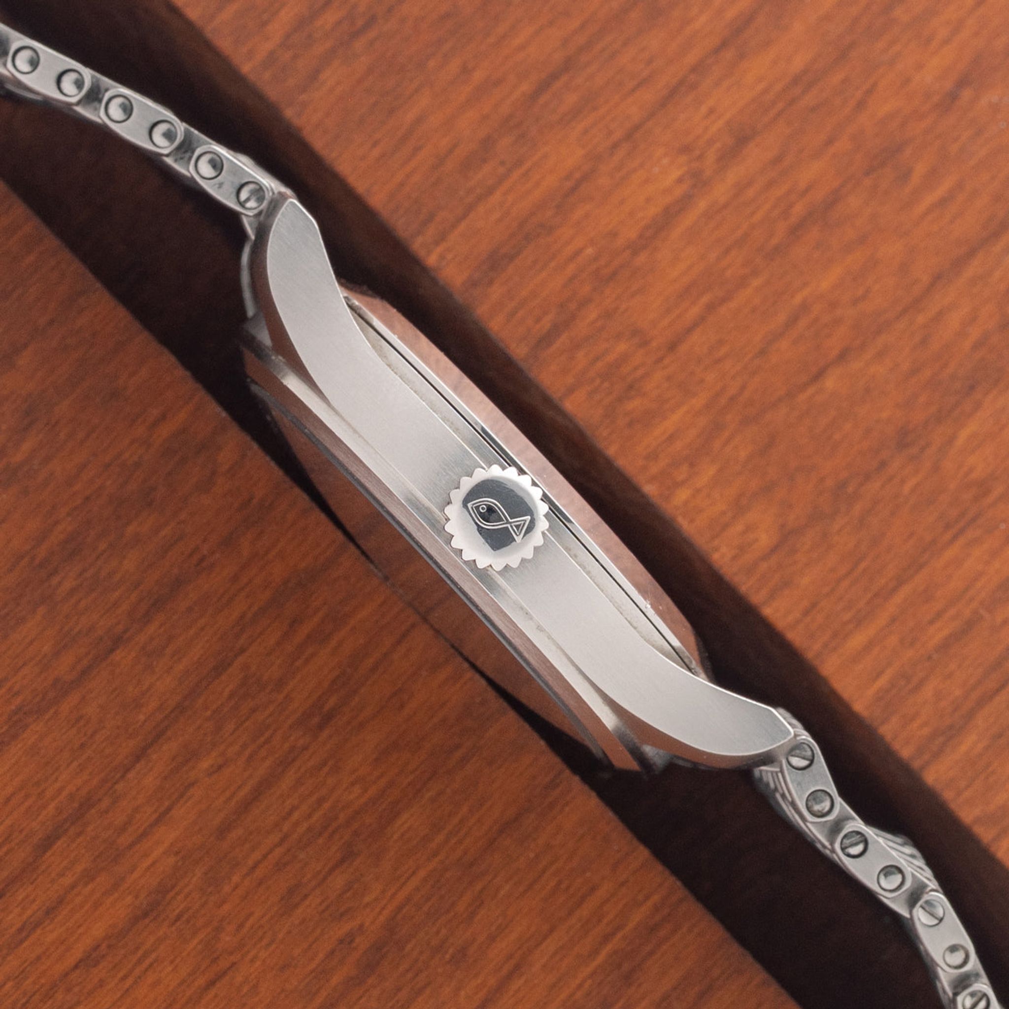 Case: Appears unpolished with sharp, thick and even lugs. Light signs of use overall. Correct signed "fish" crown.