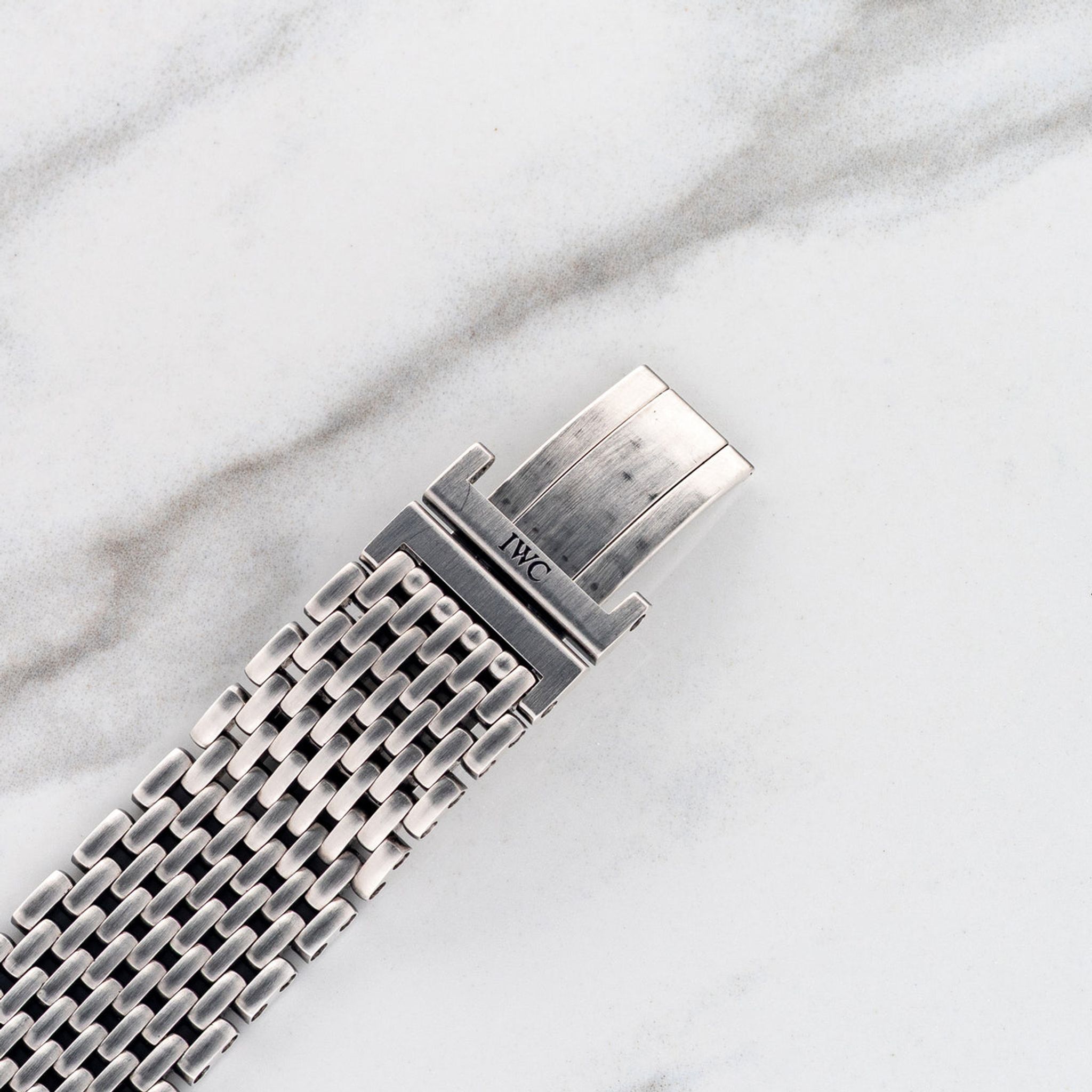 Accessories: Inner and outer boxes, warranty card, booklet and original strap with IWC signed pin buckle.